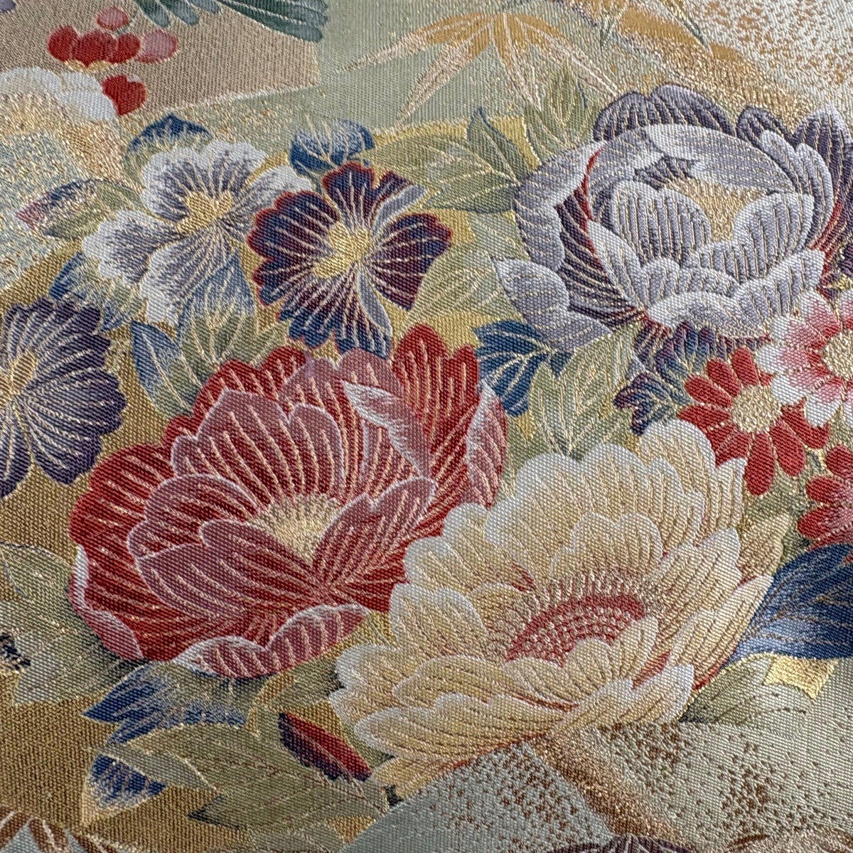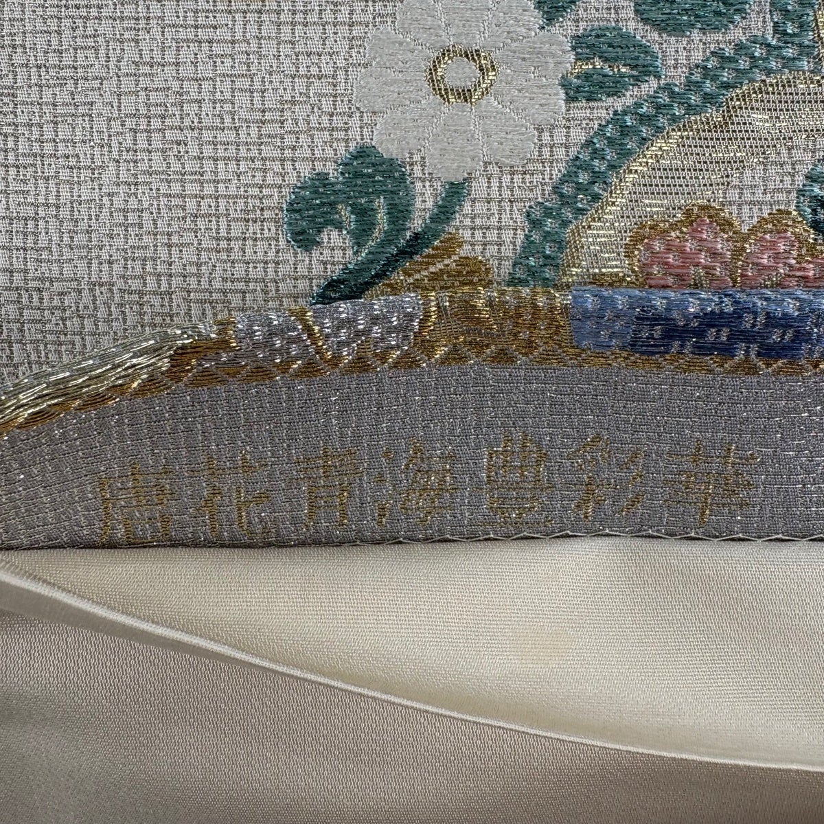 【美品】 袋帯 秀品 波花飛鳥文 箔 ベージュ 六通 正絹
