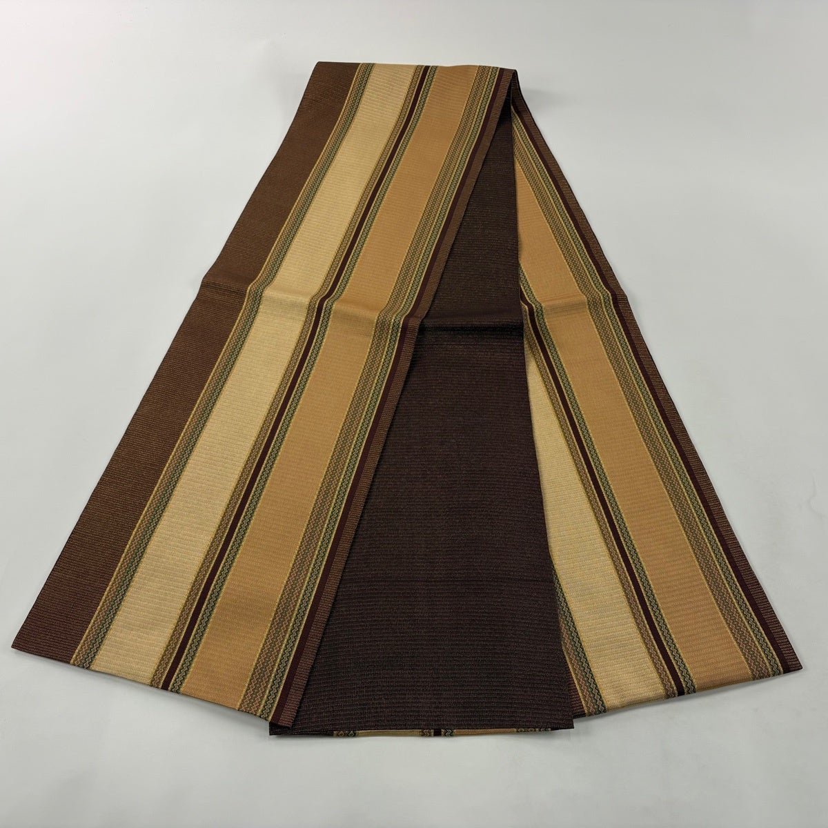 【美品】付け帯 秀品 作り帯 紬地 段縞 染め分け 茶色 正絹
