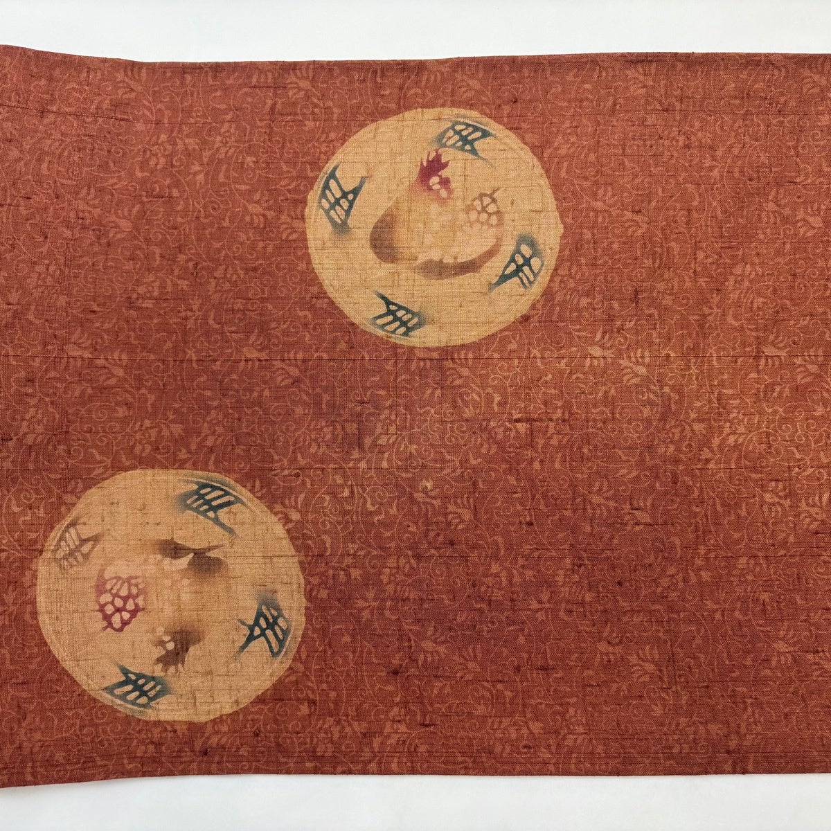 【美品】 袋帯 秀品 石摺唐糸 動物 草花 薄小豆 六通 正絹