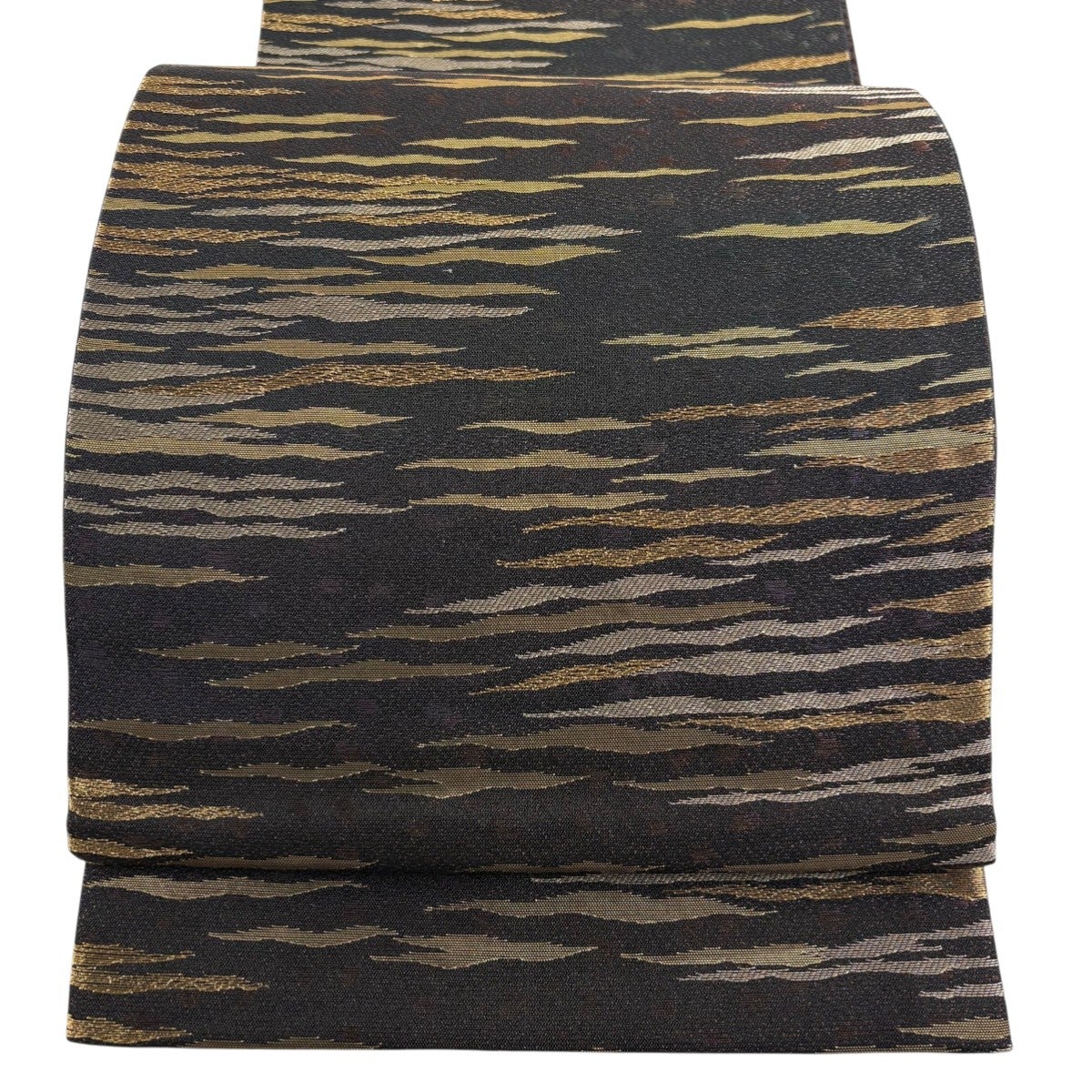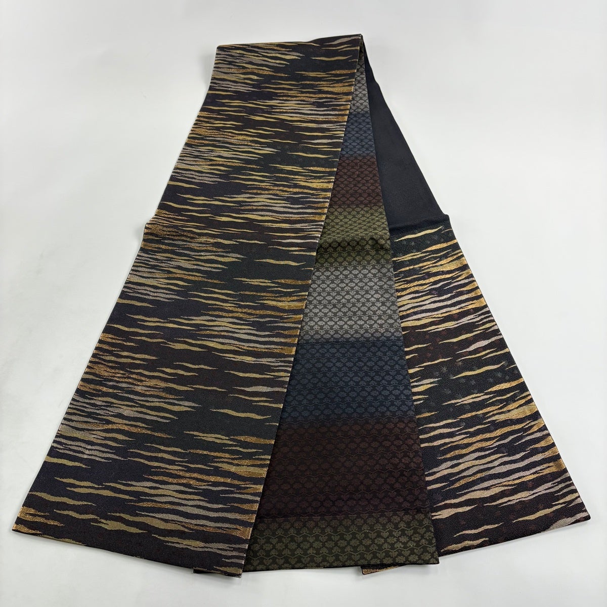 【美品】 袋帯 秀品 霞 幾何学模様 金彩 黒 お太鼓柄 正絹