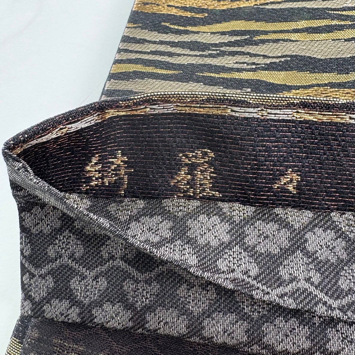 【美品】 袋帯 秀品 祥園 落款あり 流水 箔 黒 六通 正絹