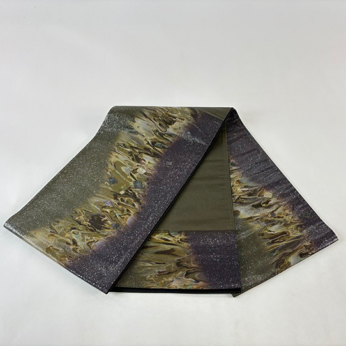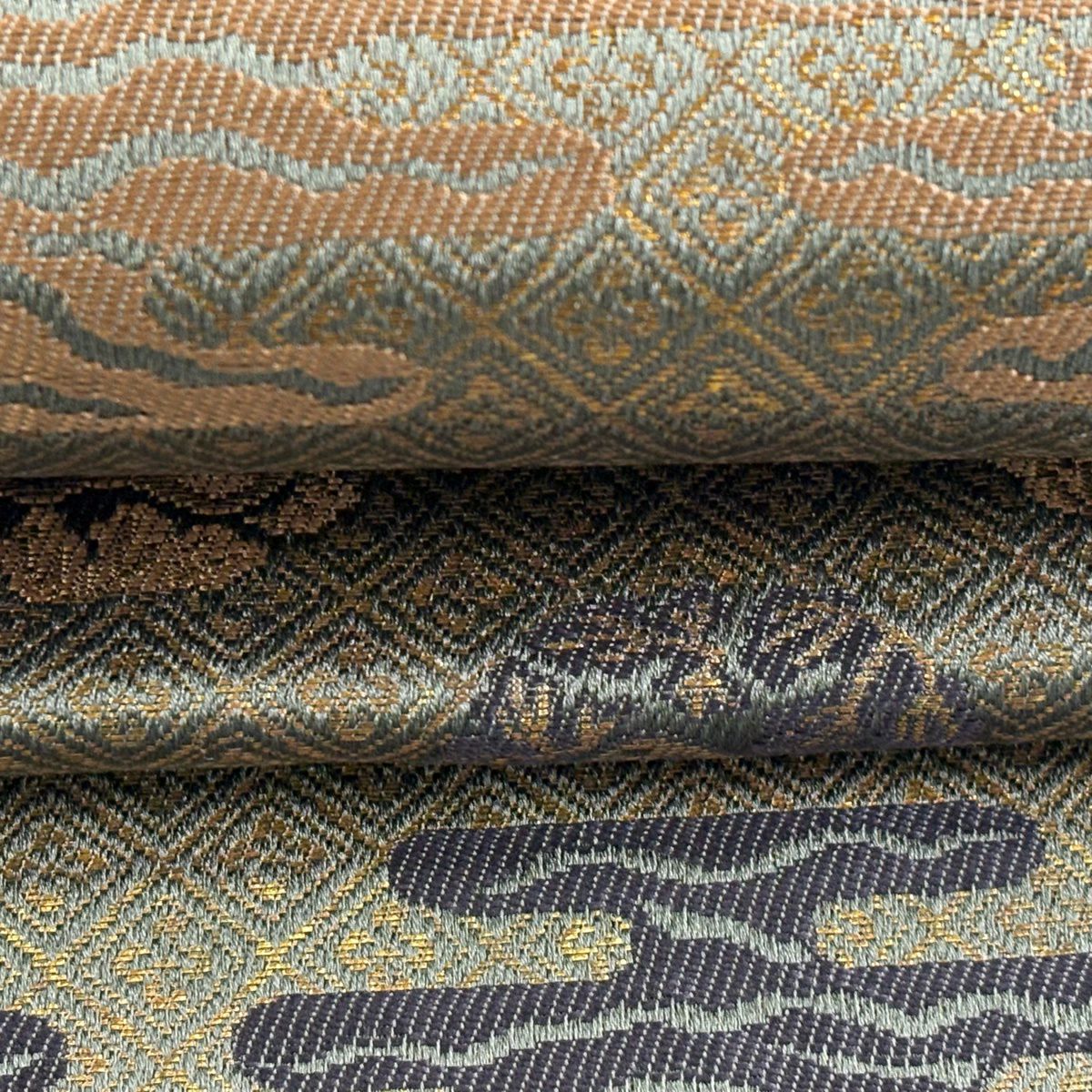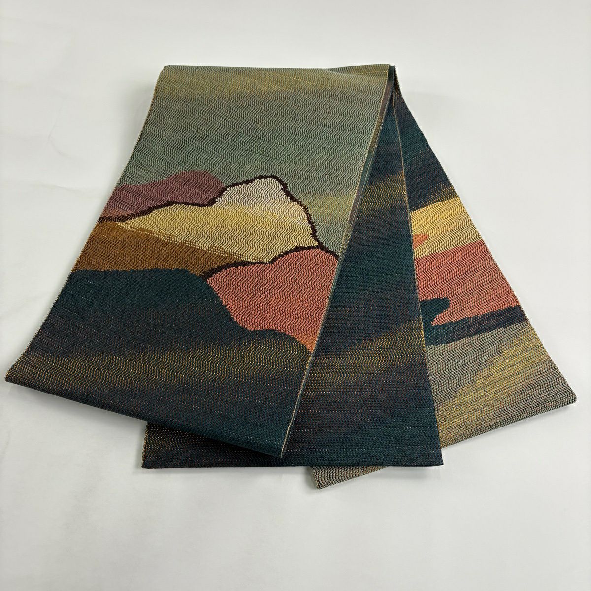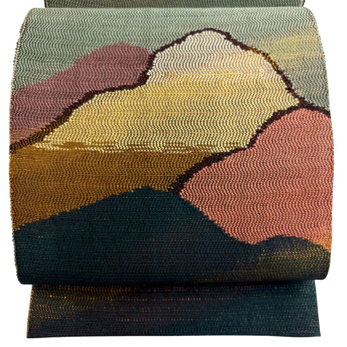 【美品】 袋帯 秀品 山並み 箔 青緑 正絹