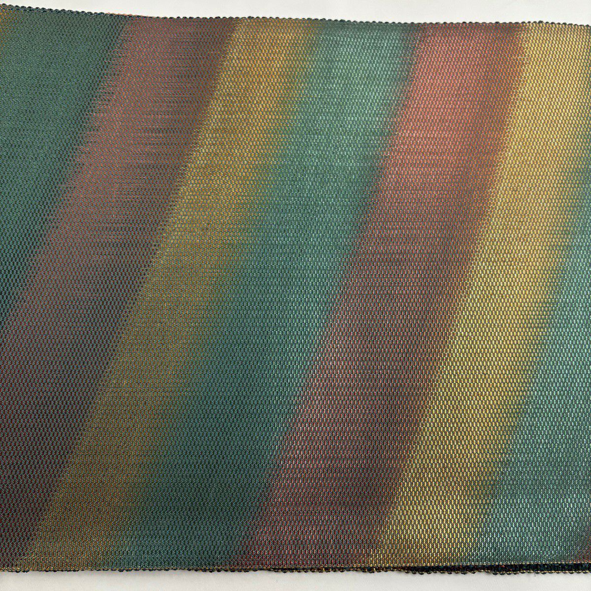 袋帯 秀品 霞 縞 金糸 小豆色 六通 正絹