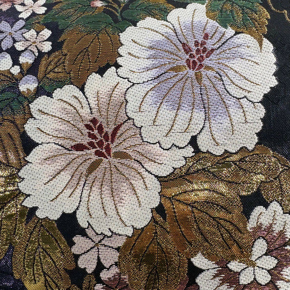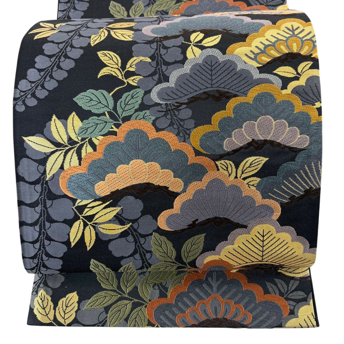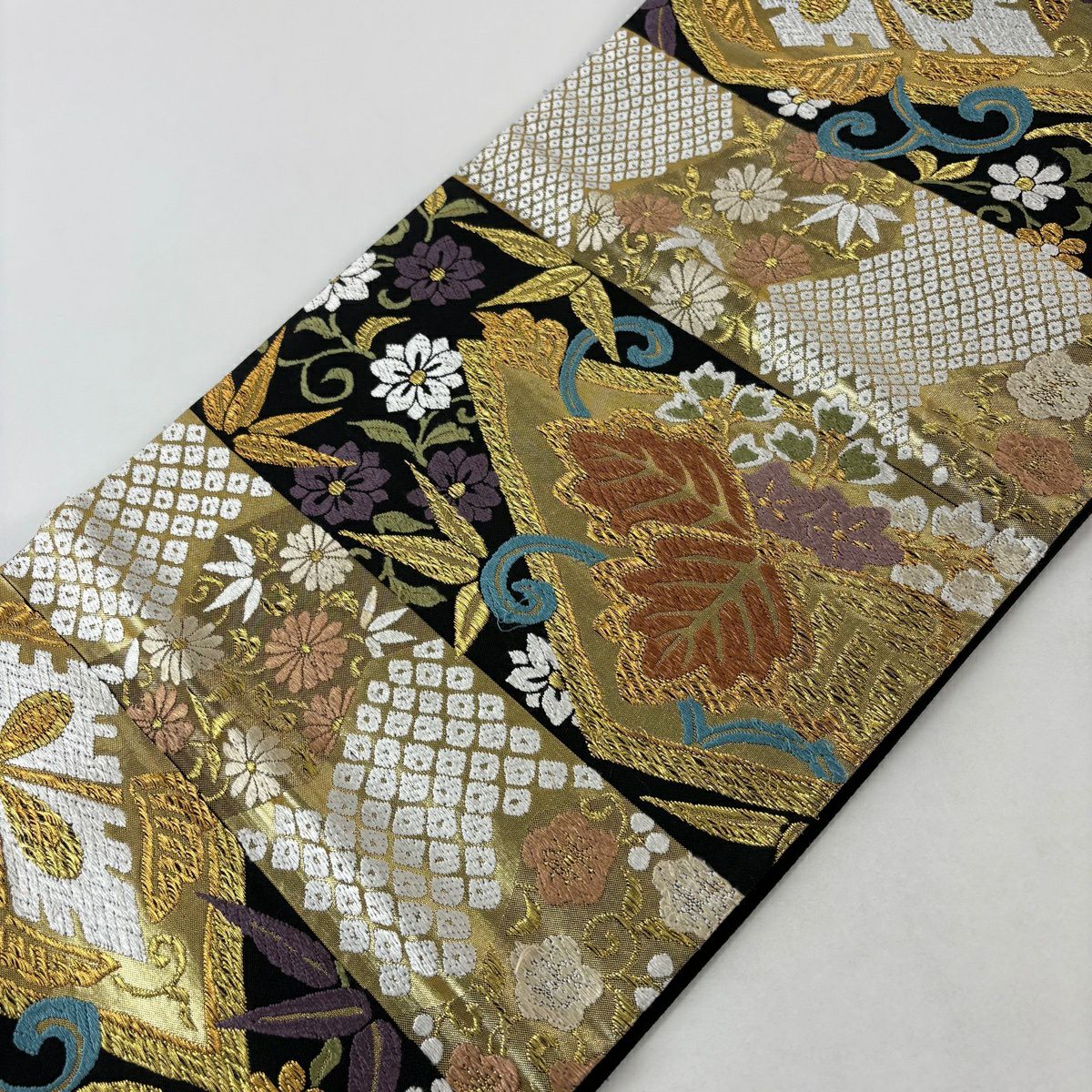 袋帯 秀品 笠松 箔 唐織 墨色 六通 正絹