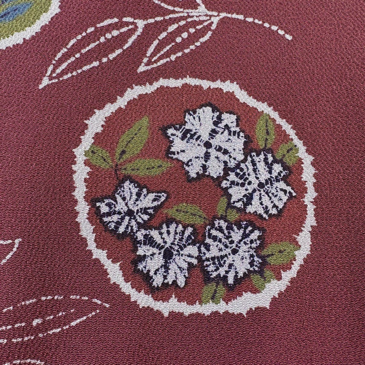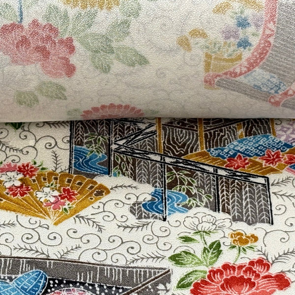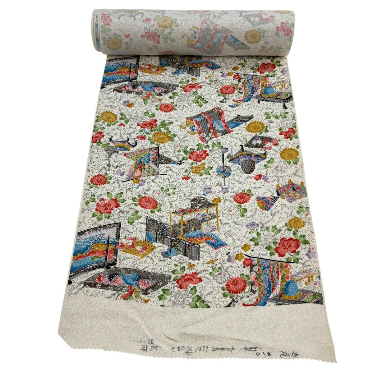 反物 秀品 小紋 草花 几帳 クリーム 正絹