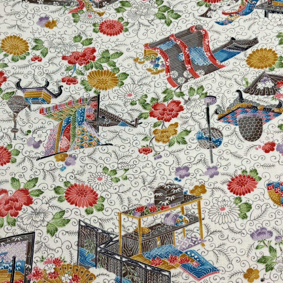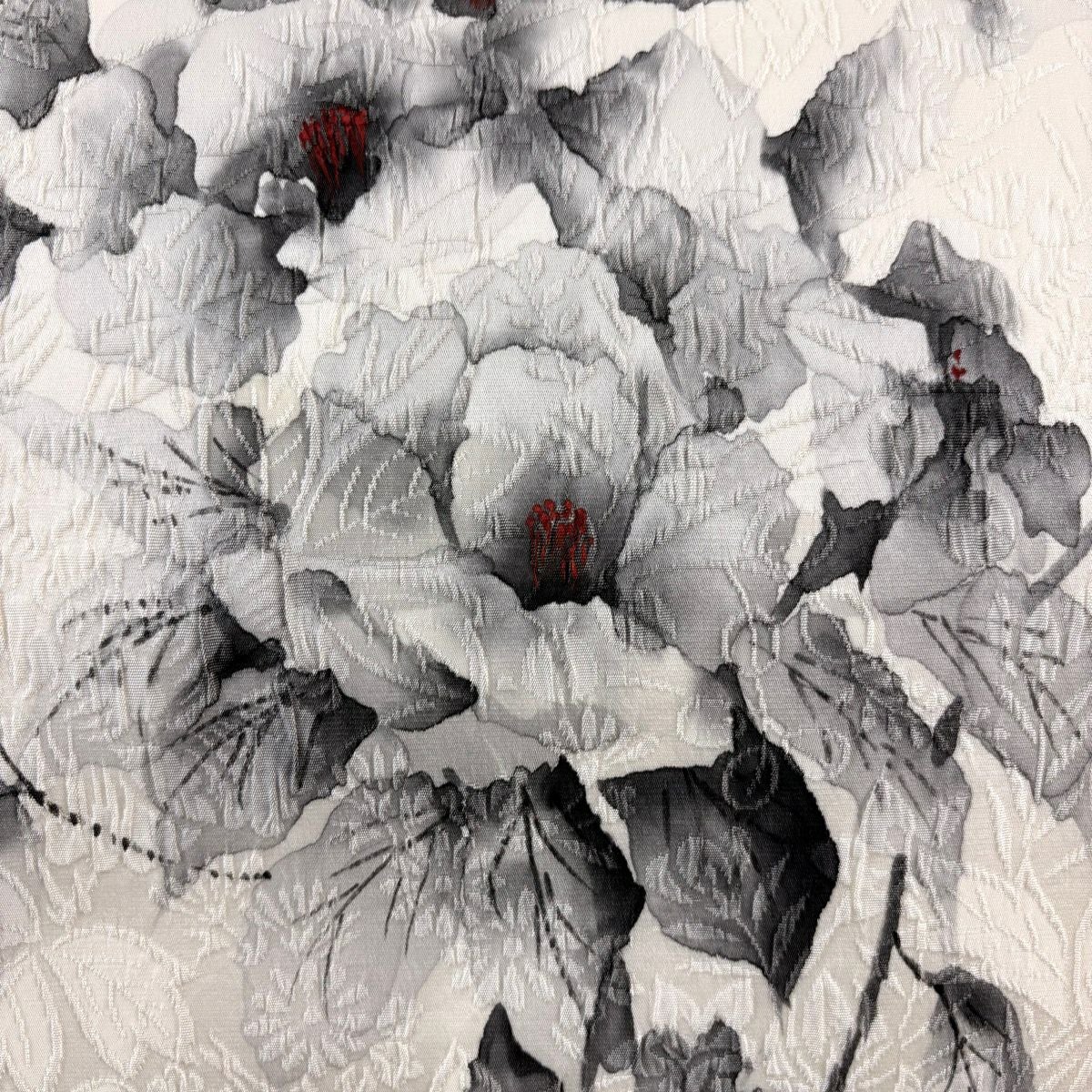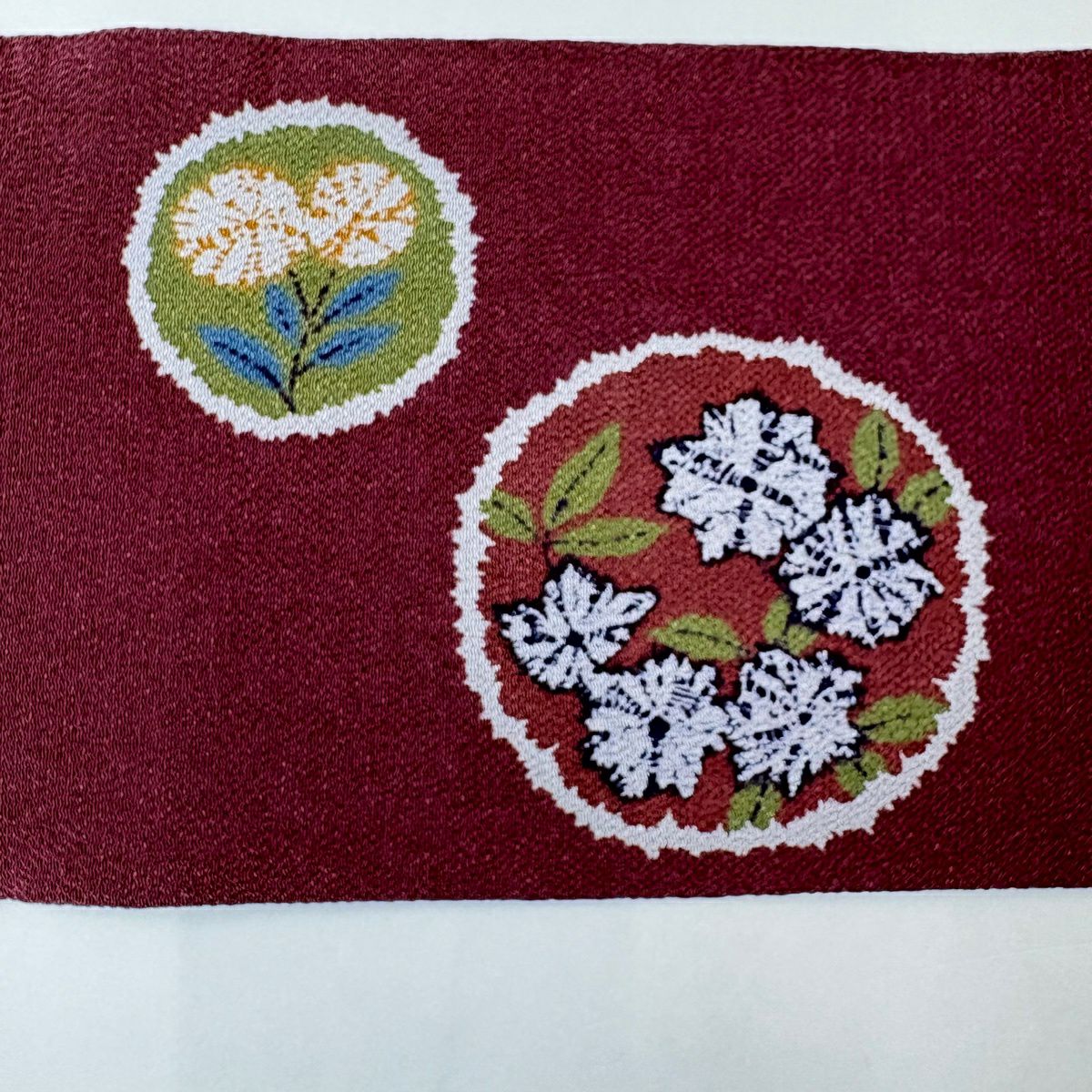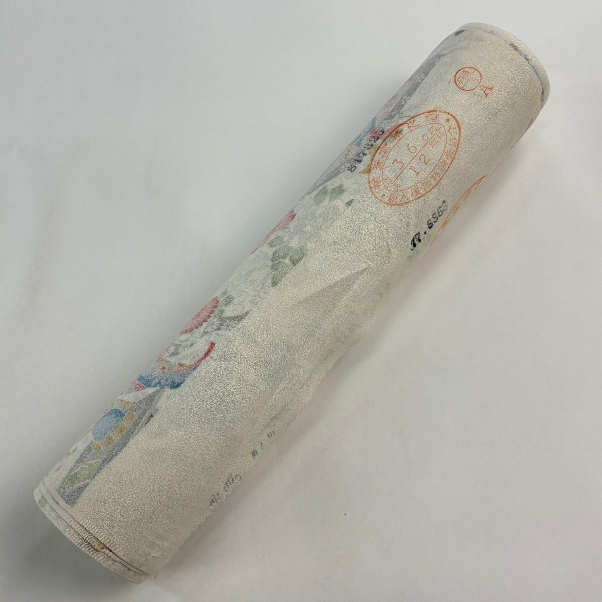反物 秀品 小紋 草花 几帳 クリーム 正絹
