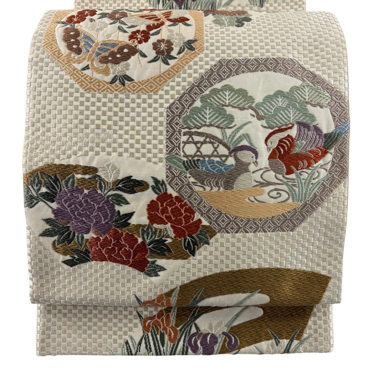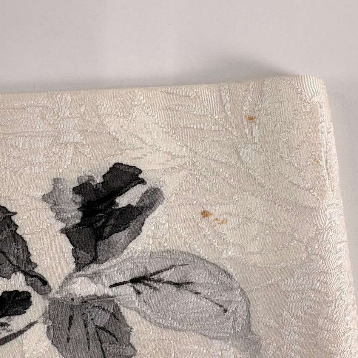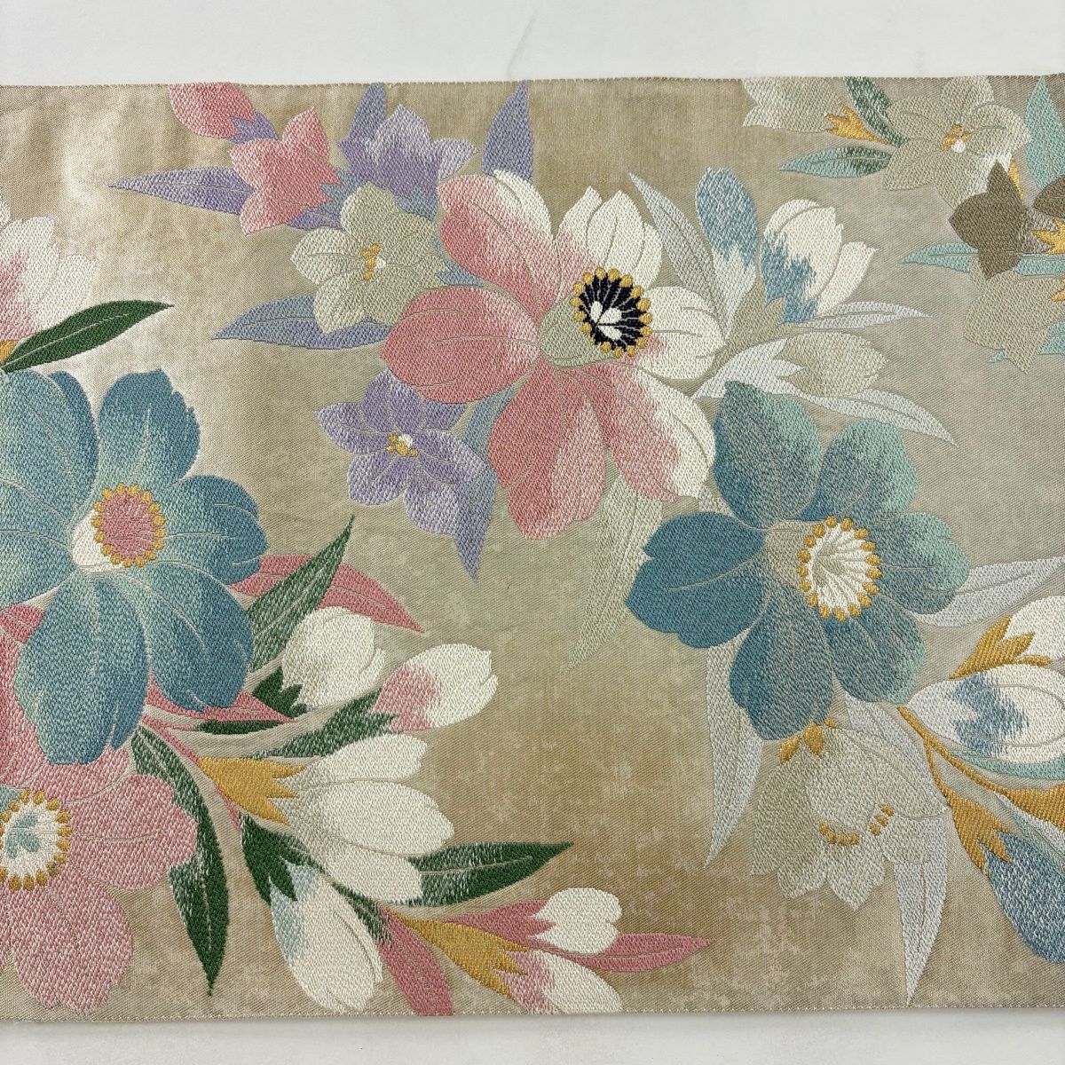 袋帯 秀品 草花 地紋 クリーム 六通 正絹