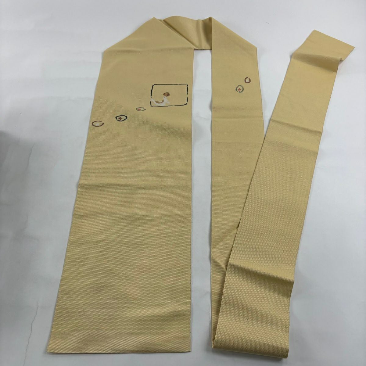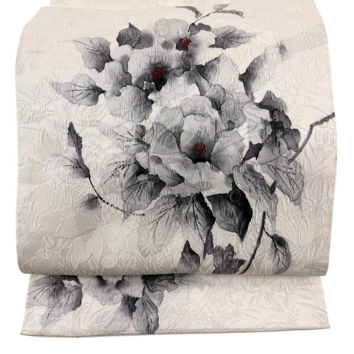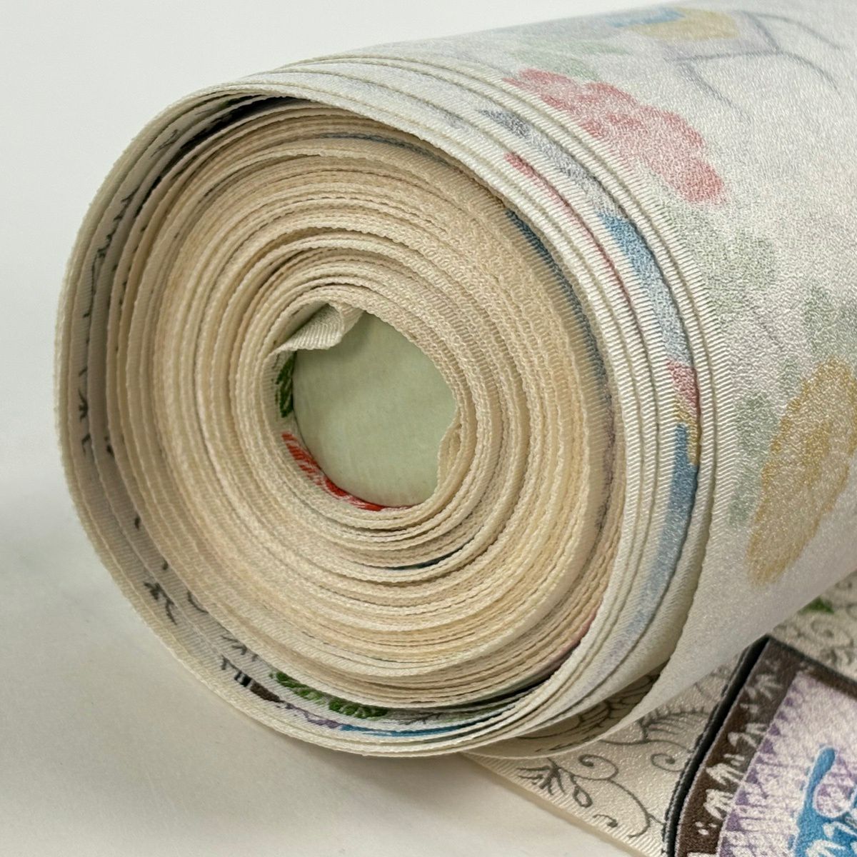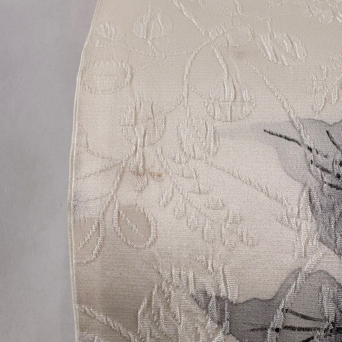 袋帯 秀品 草花 地紋 クリーム 六通 正絹
