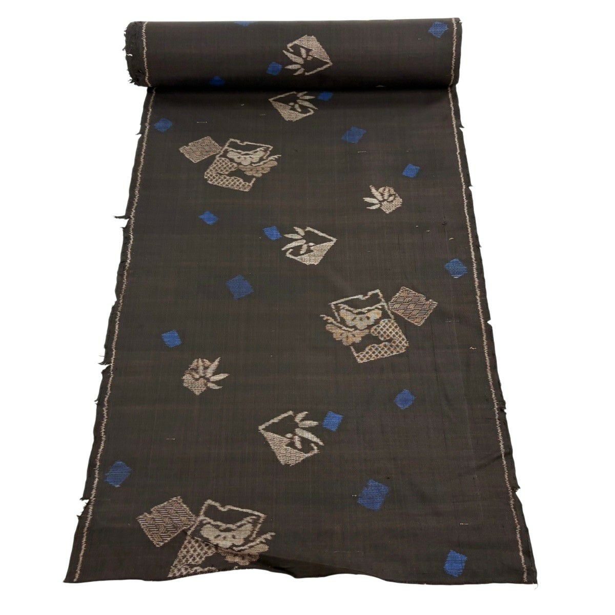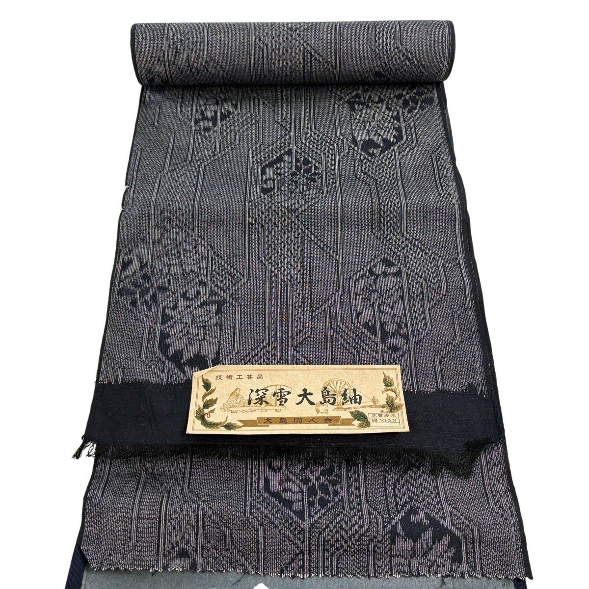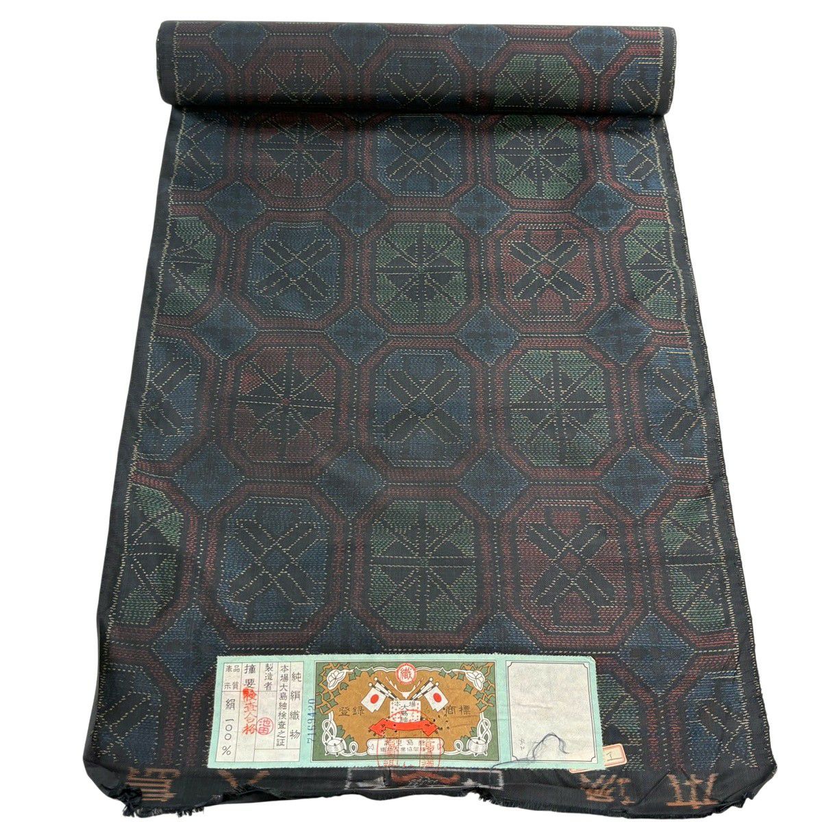 反物 秀品 大島紬 証紙 幾何学 紺色 正絹