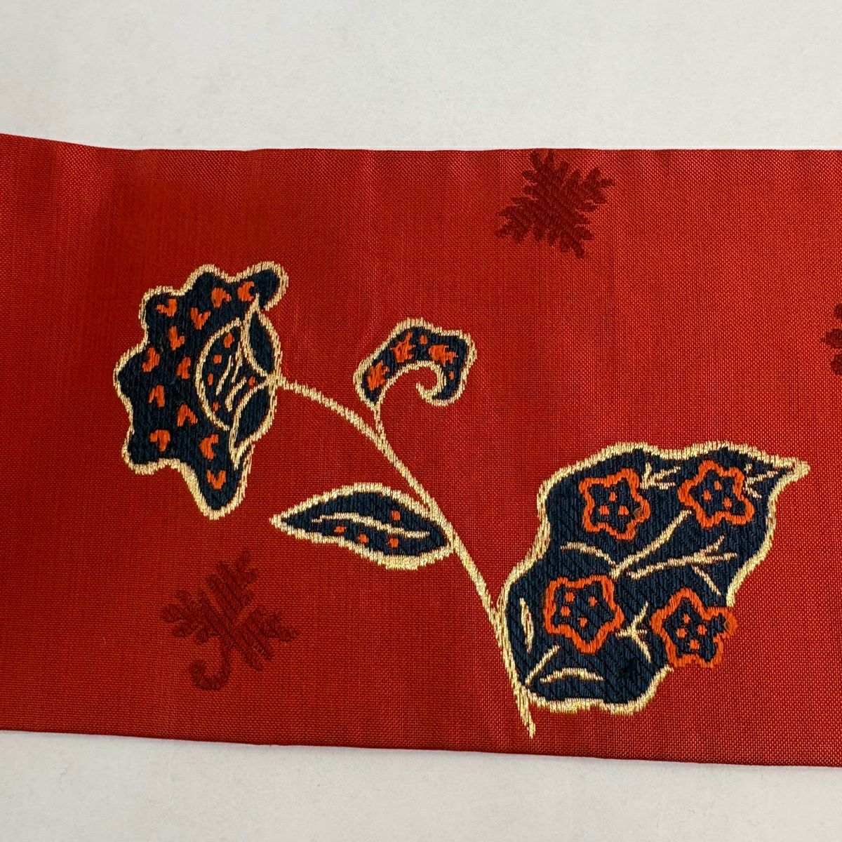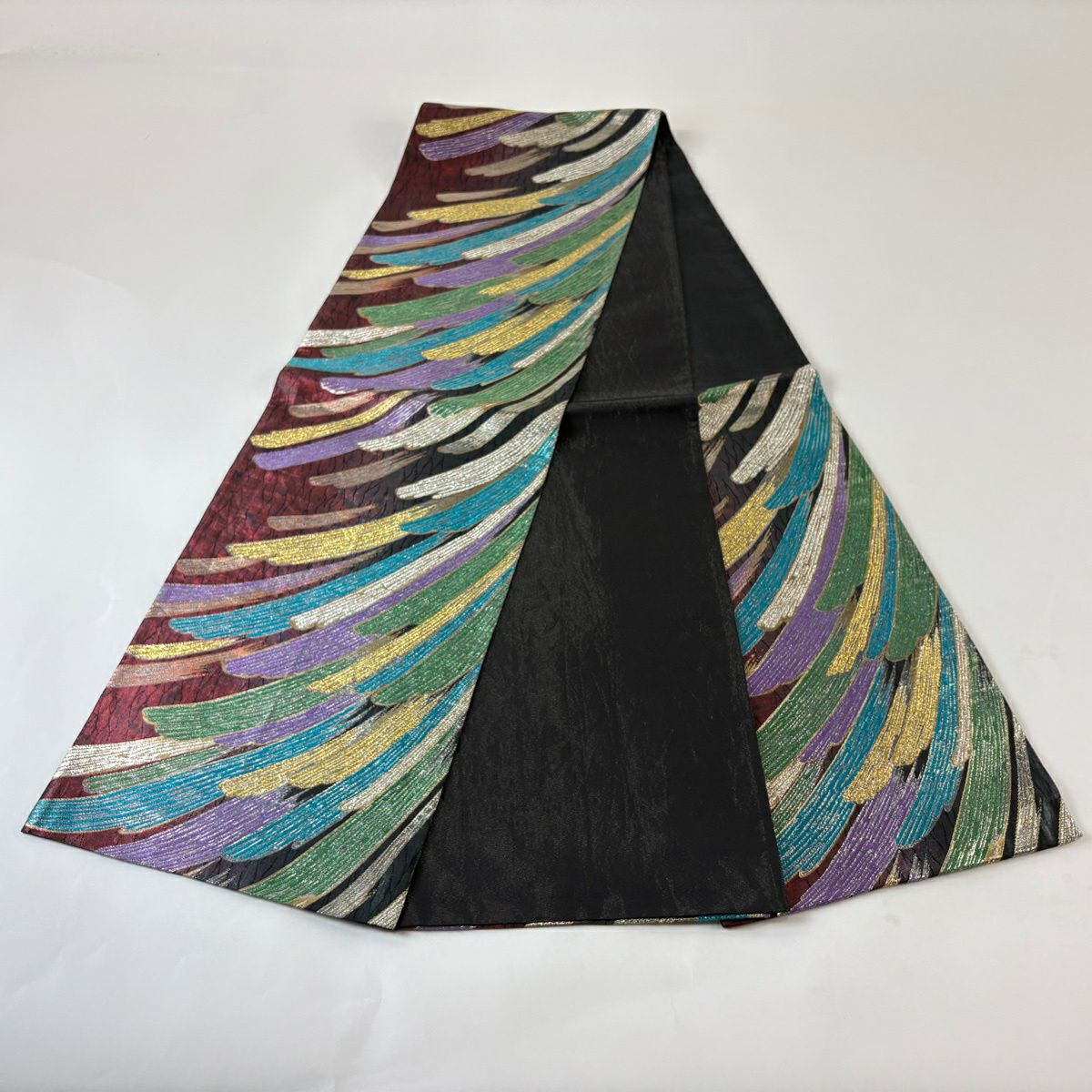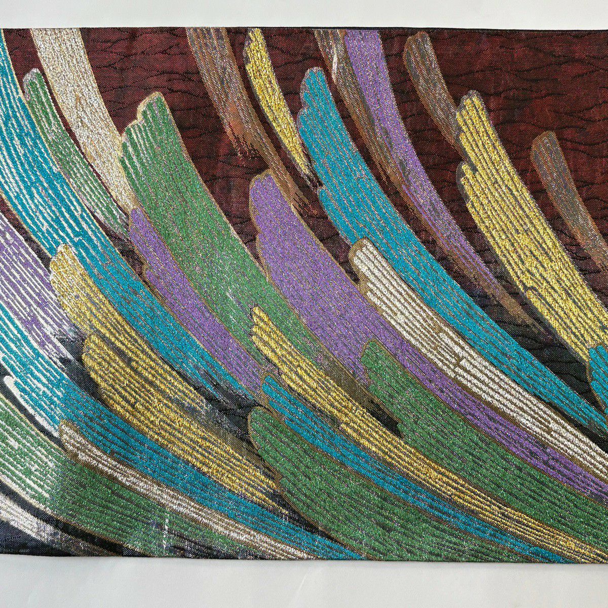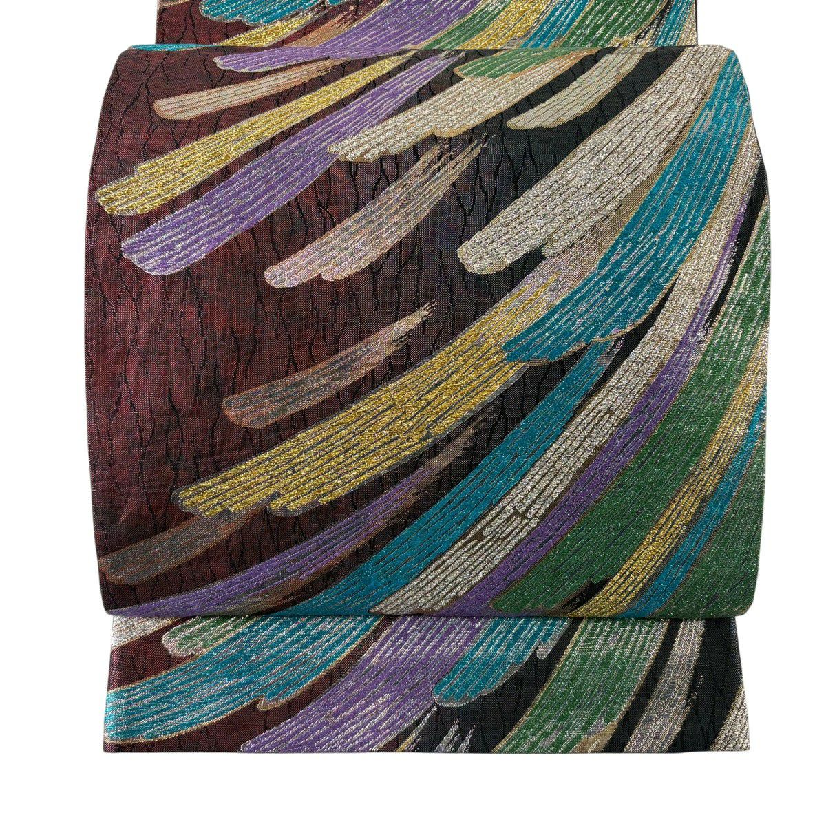 袋帯 秀品 幾何学模様 箔 赤黒 六通 正絹
