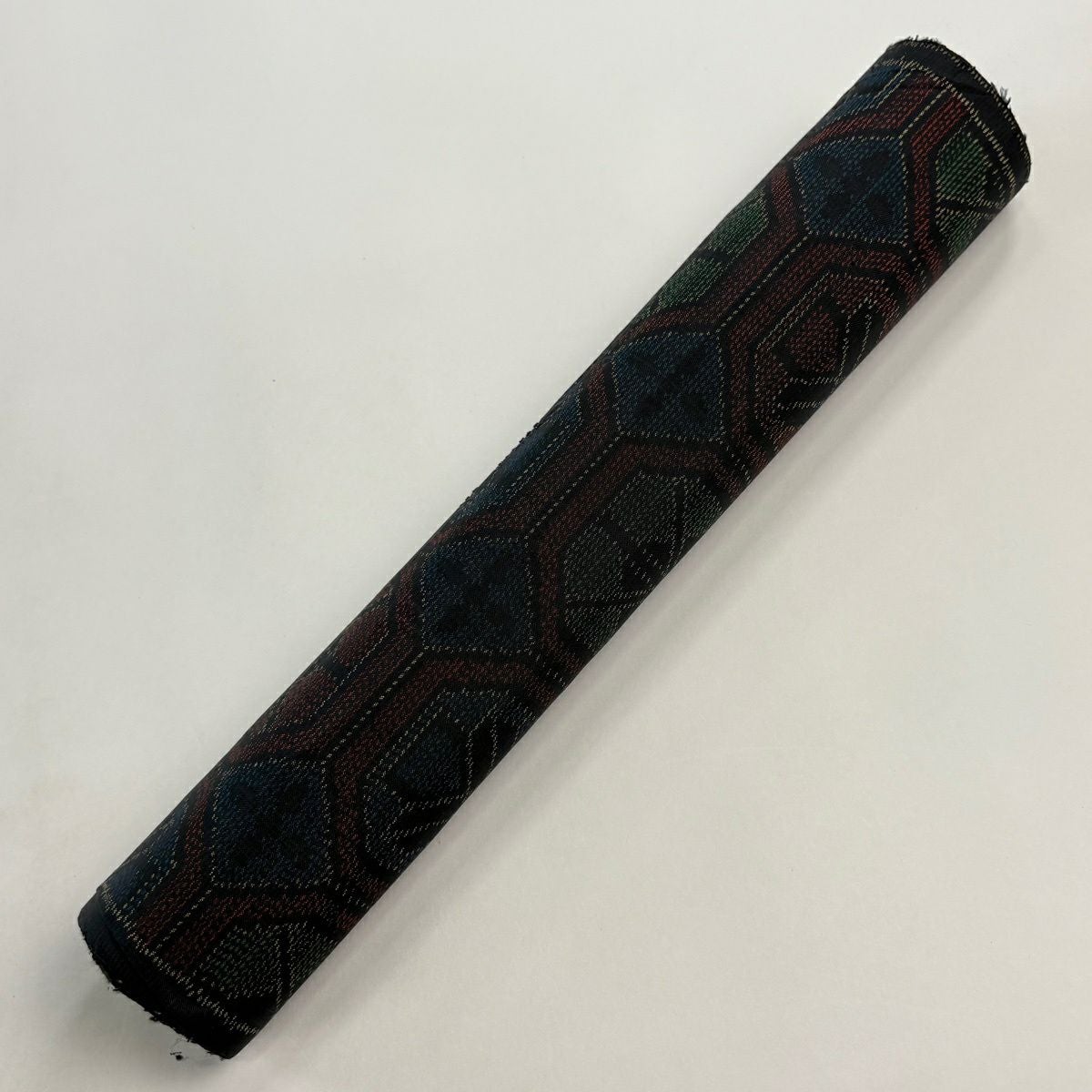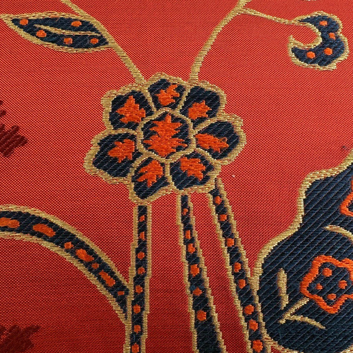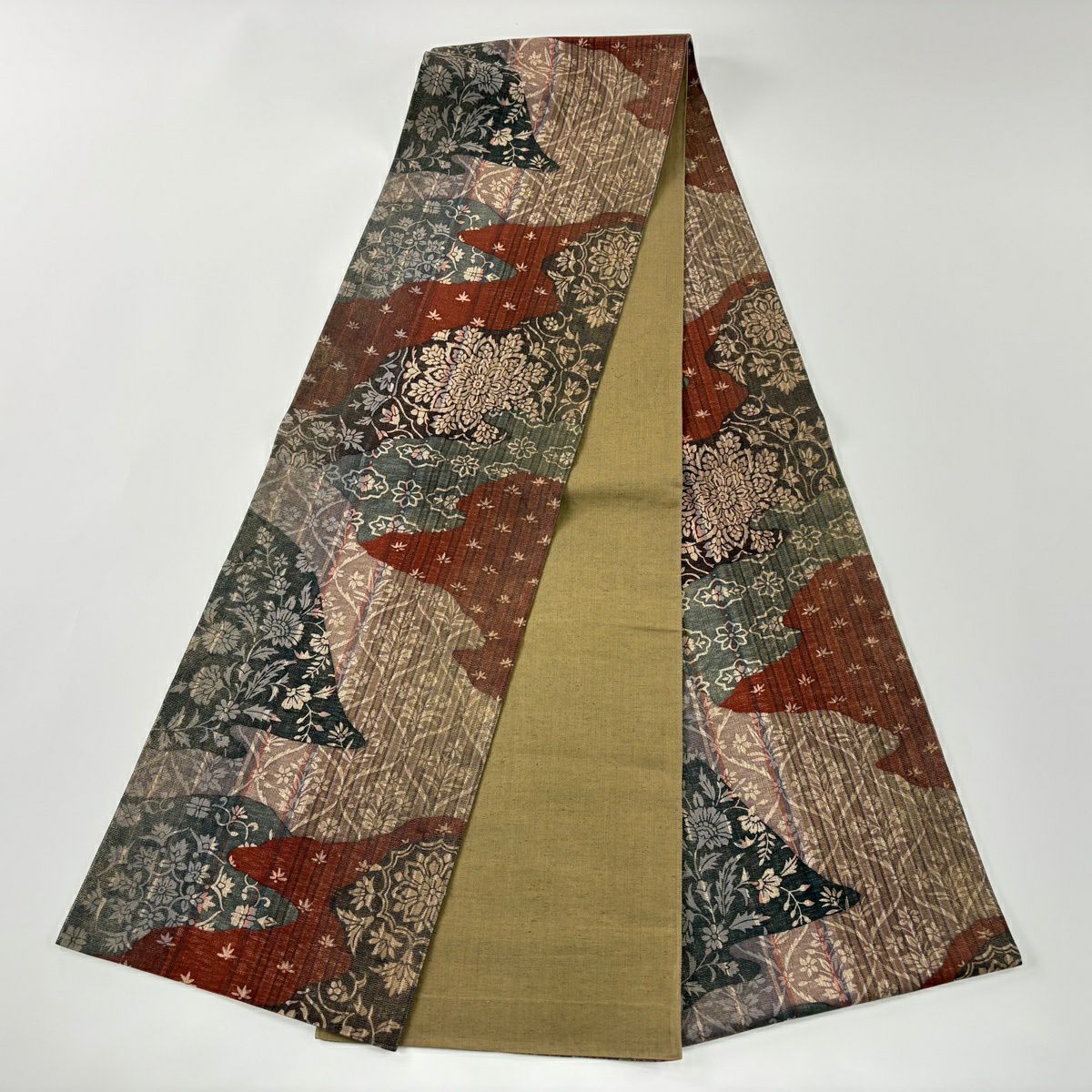 袋帯 秀品 幾何学模様 箔 赤黒 六通 正絹