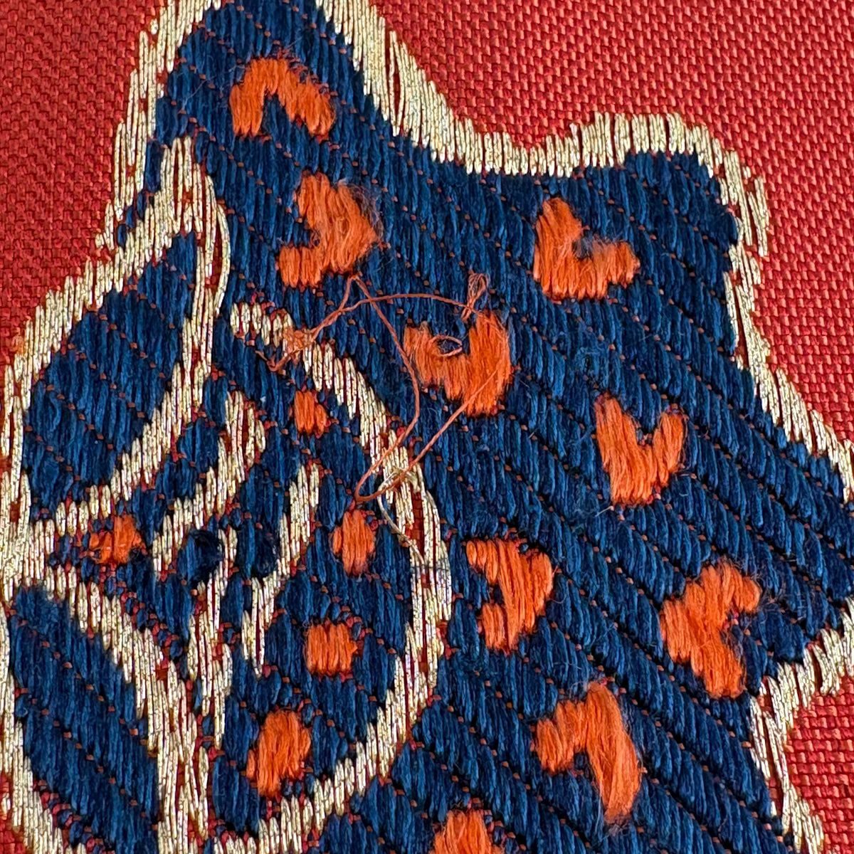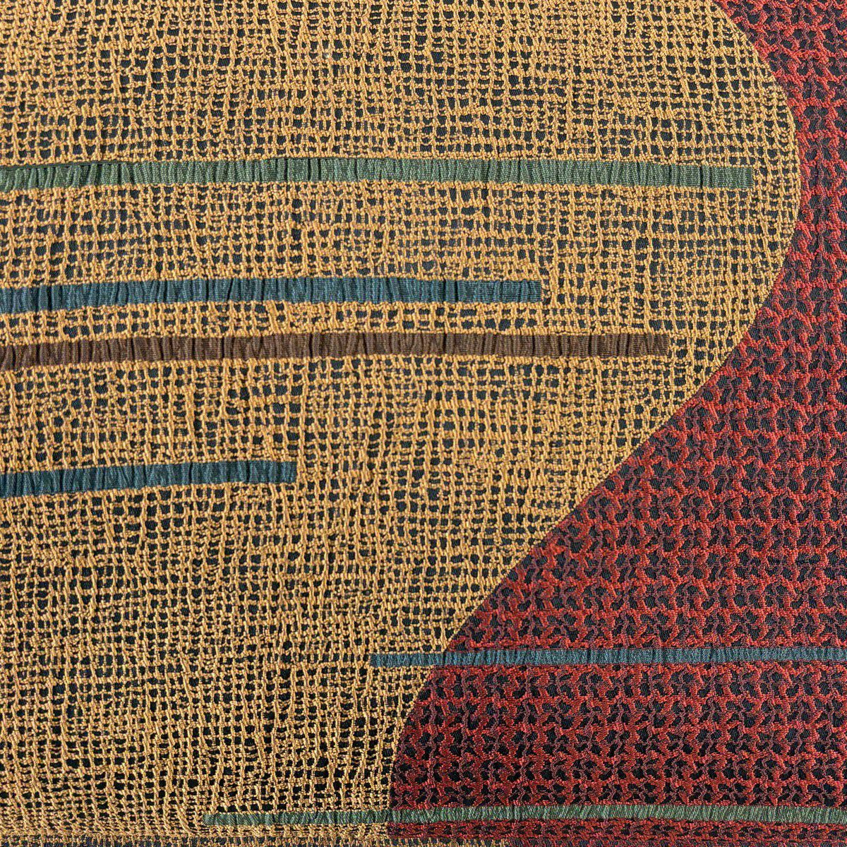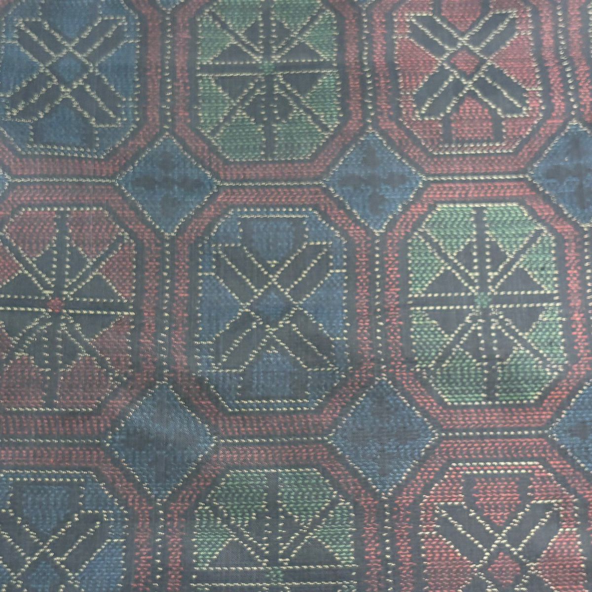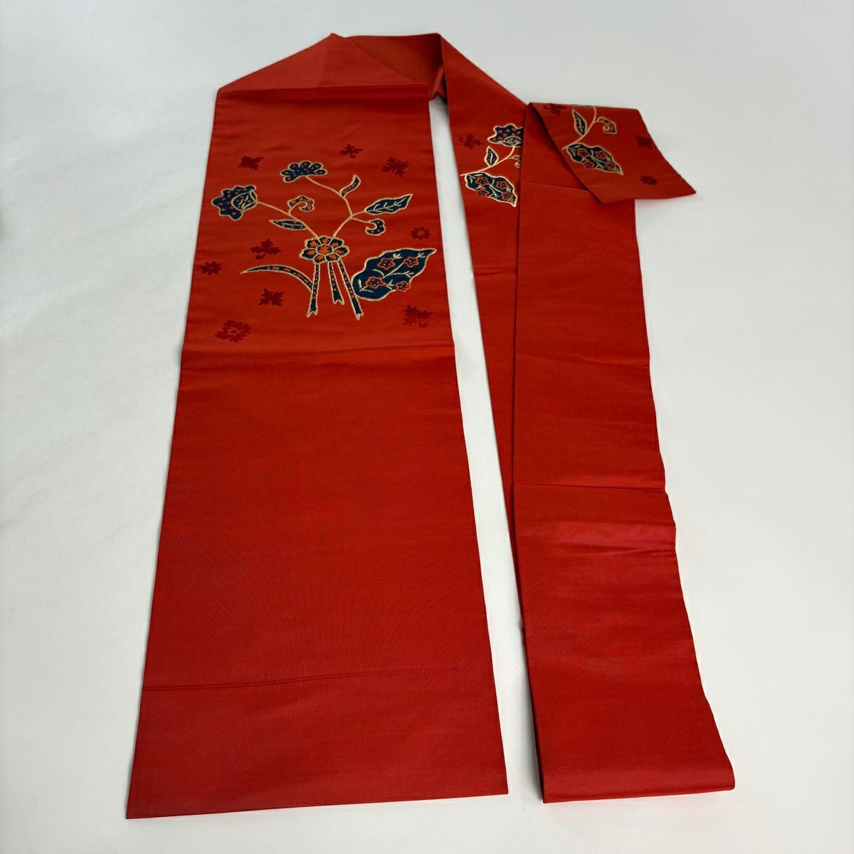 袋帯 秀品 幾何学模様 箔 赤黒 六通 正絹