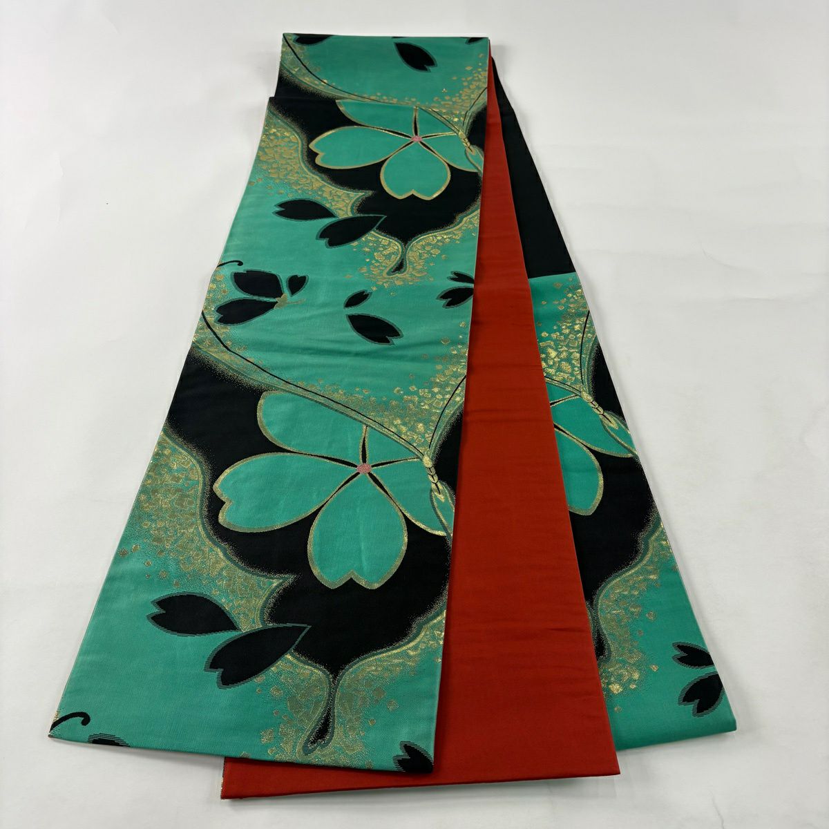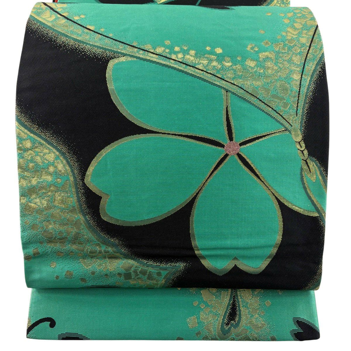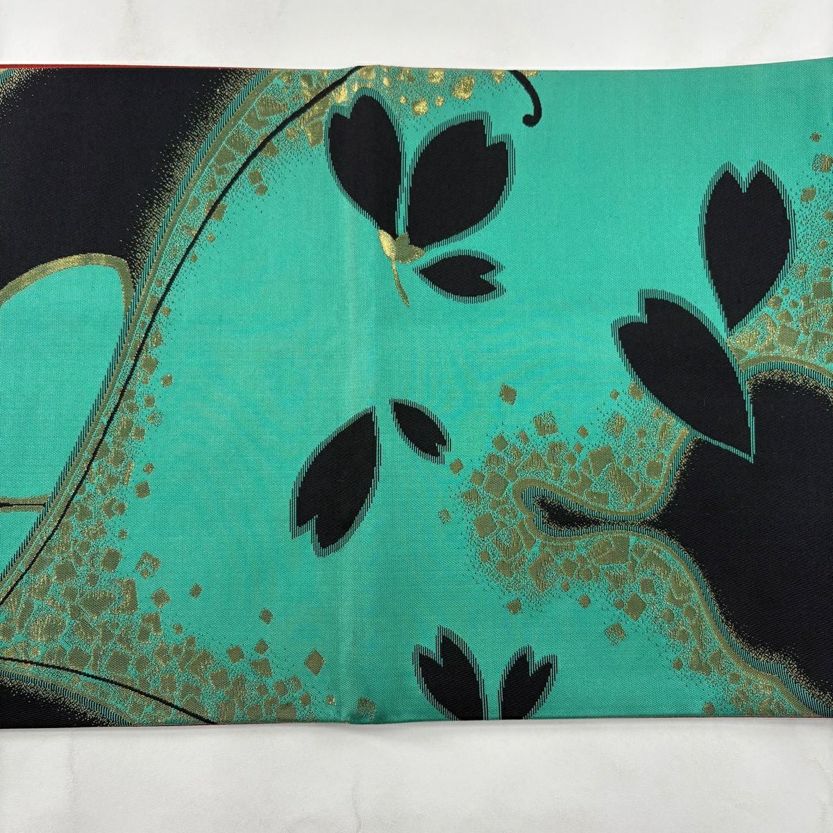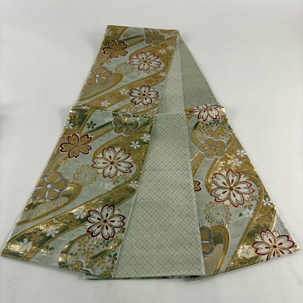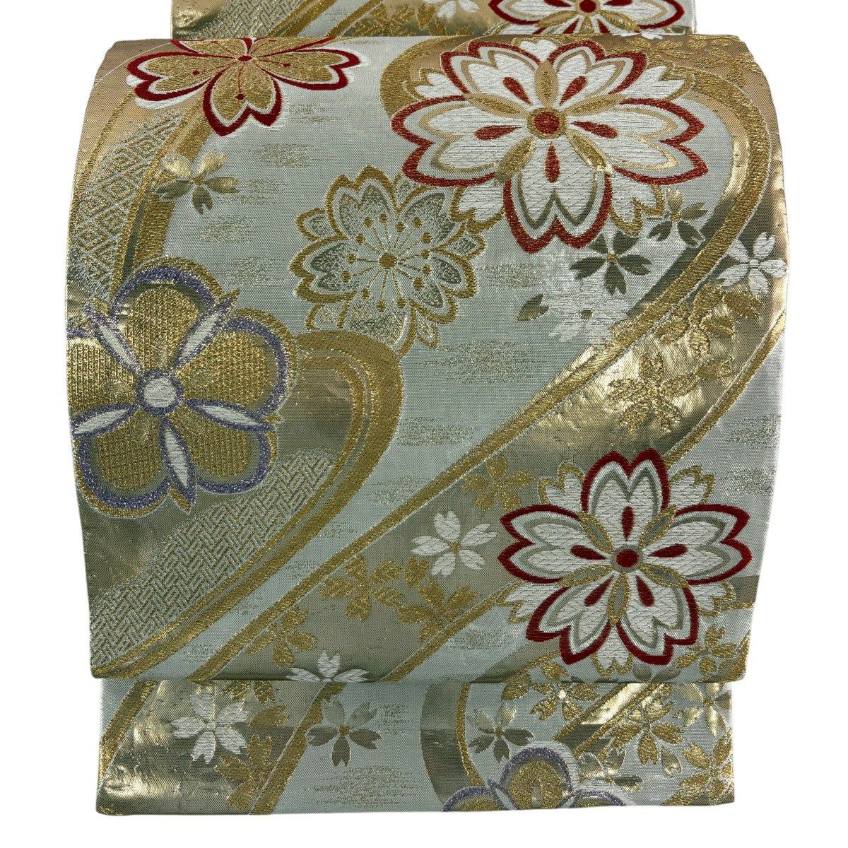 袋帯 秀品 桜 箔散らし 箔 薄緑 六通 正絹