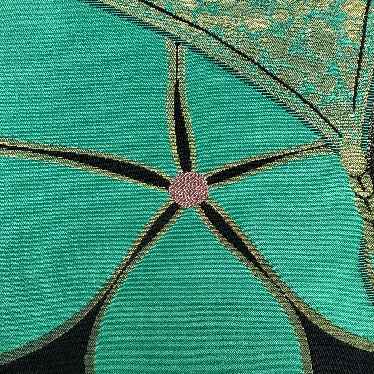 袋帯 秀品 幾何学 箔 深緑 お太鼓柄 正絹