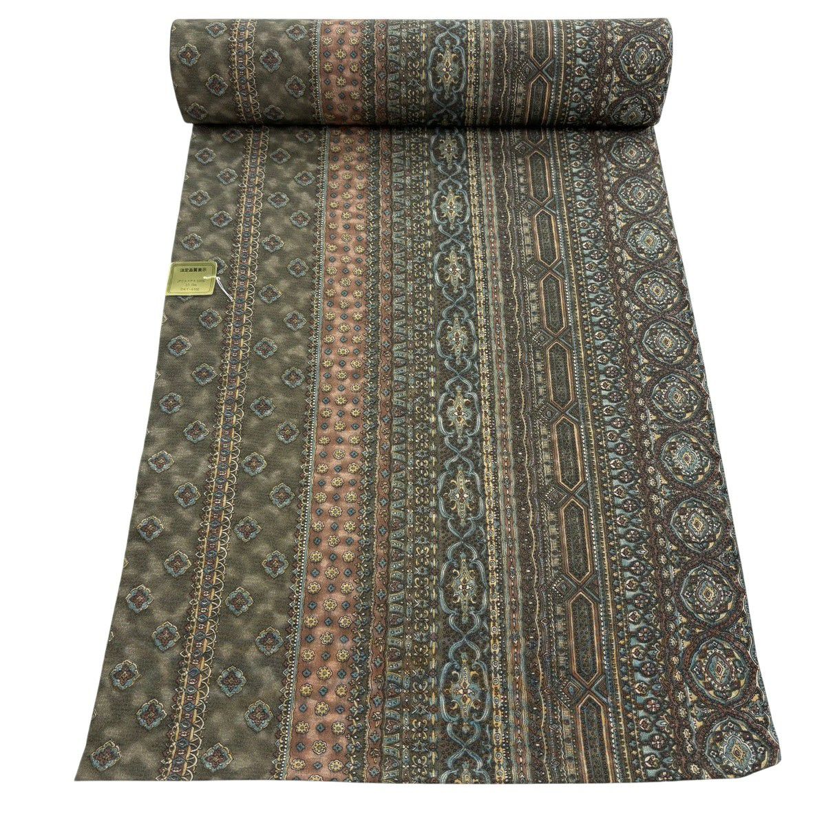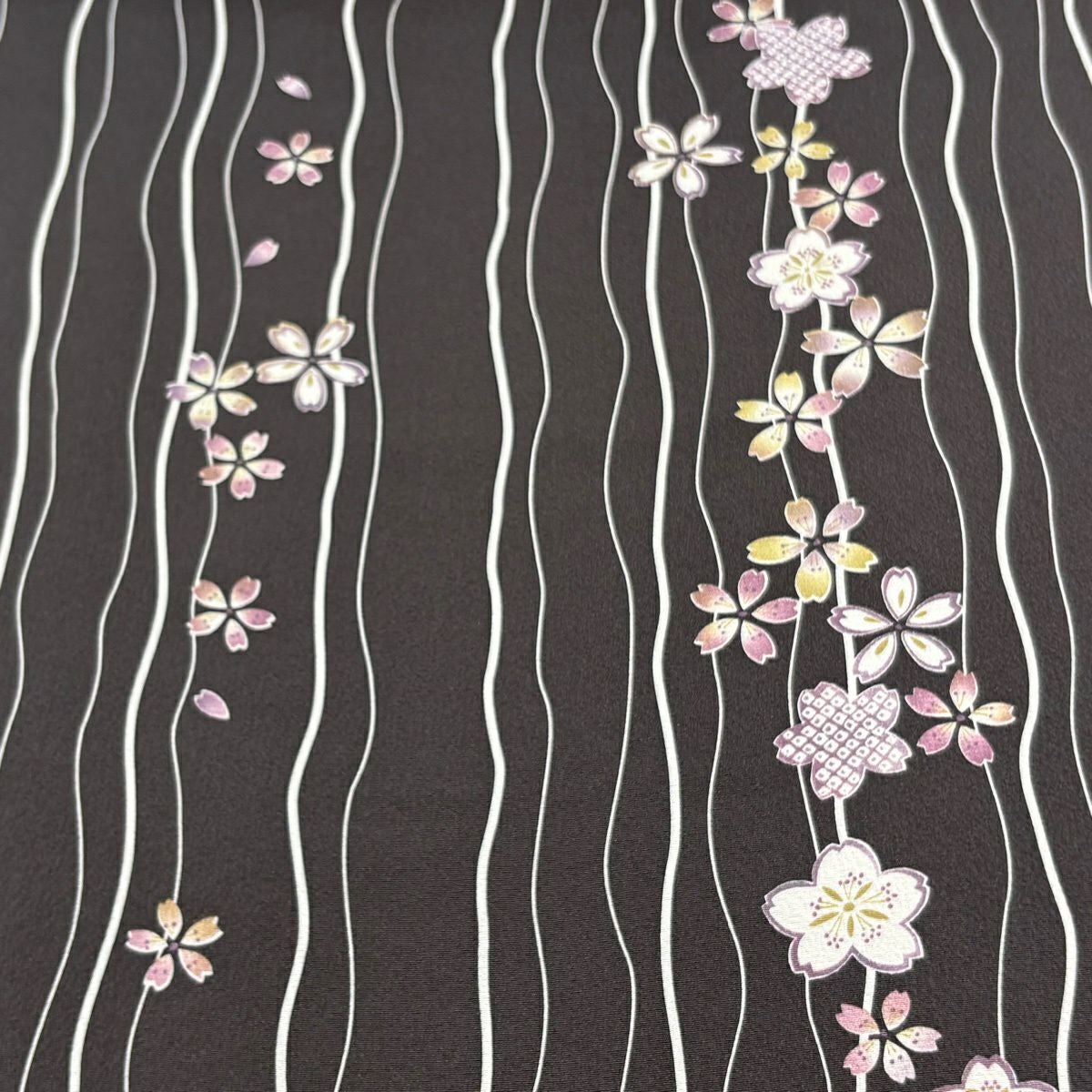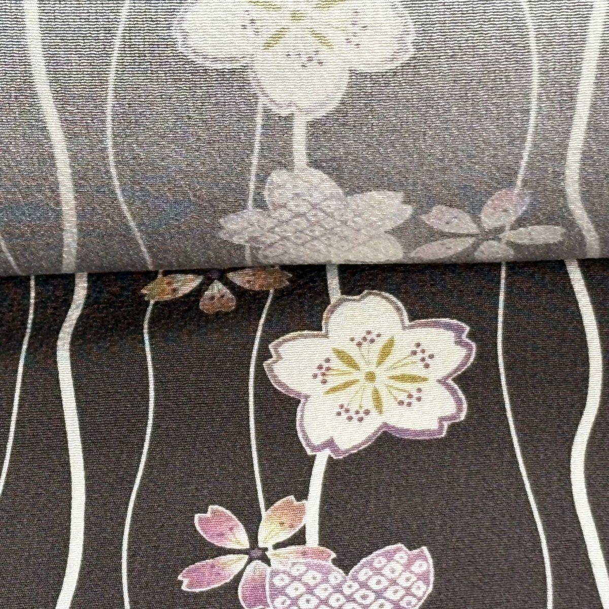 反物 秀品 小紋 桜 よろけ縞 焦茶色 正絹