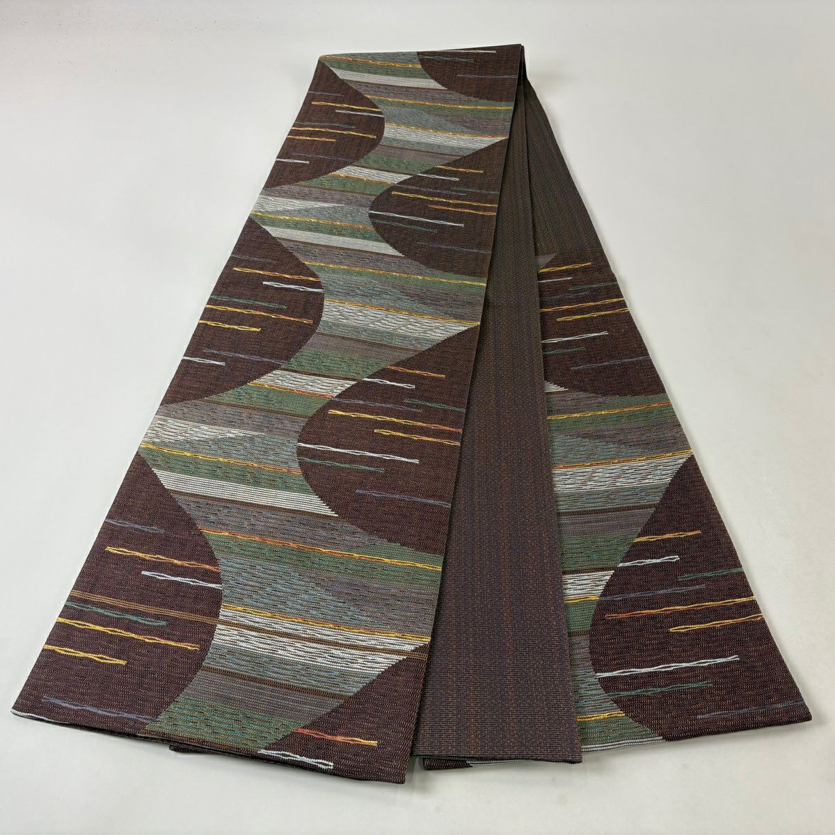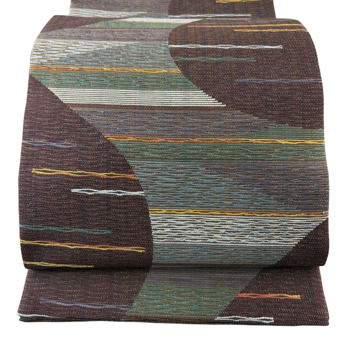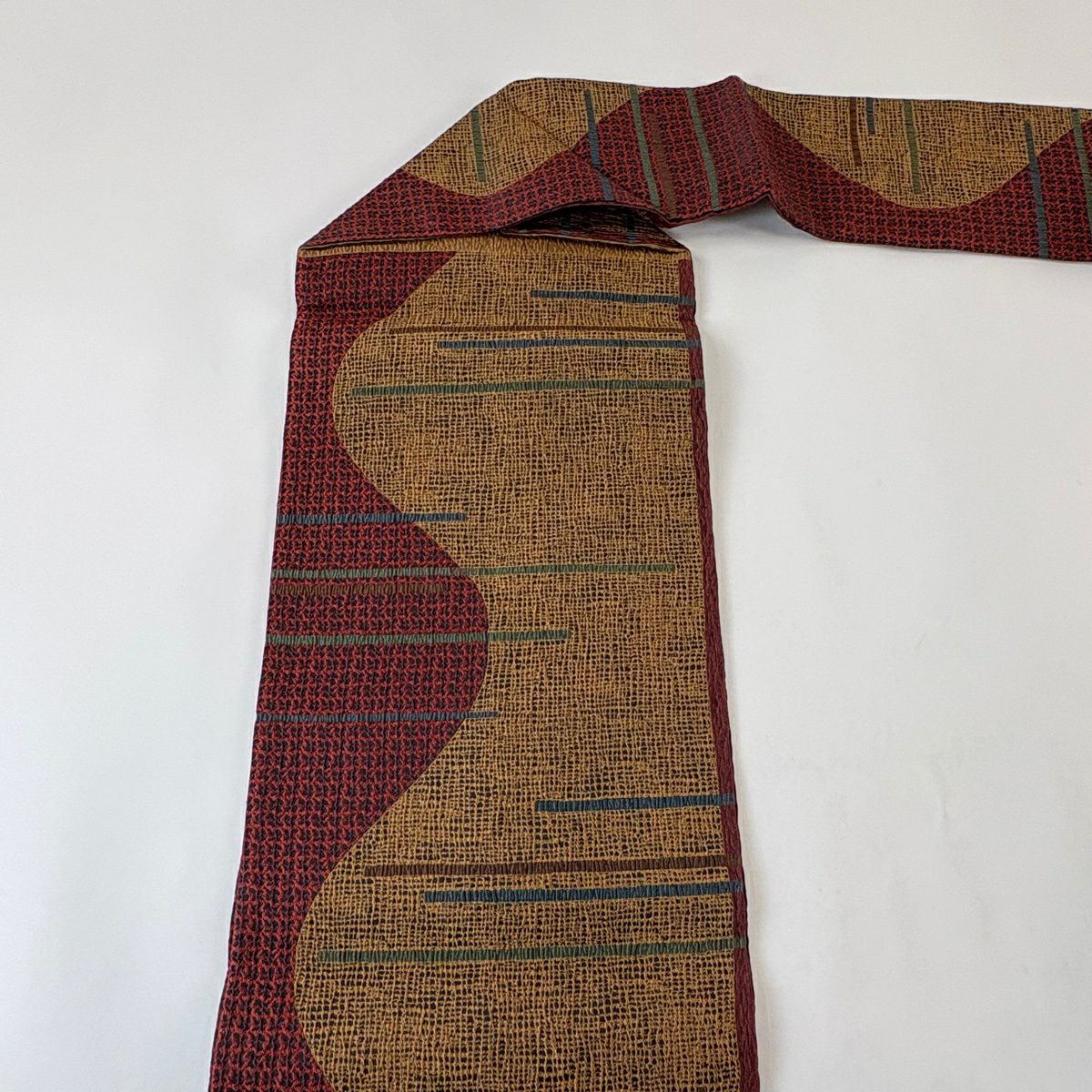 【美品】 名古屋帯 秀品 幾何学 赤茶 正絹