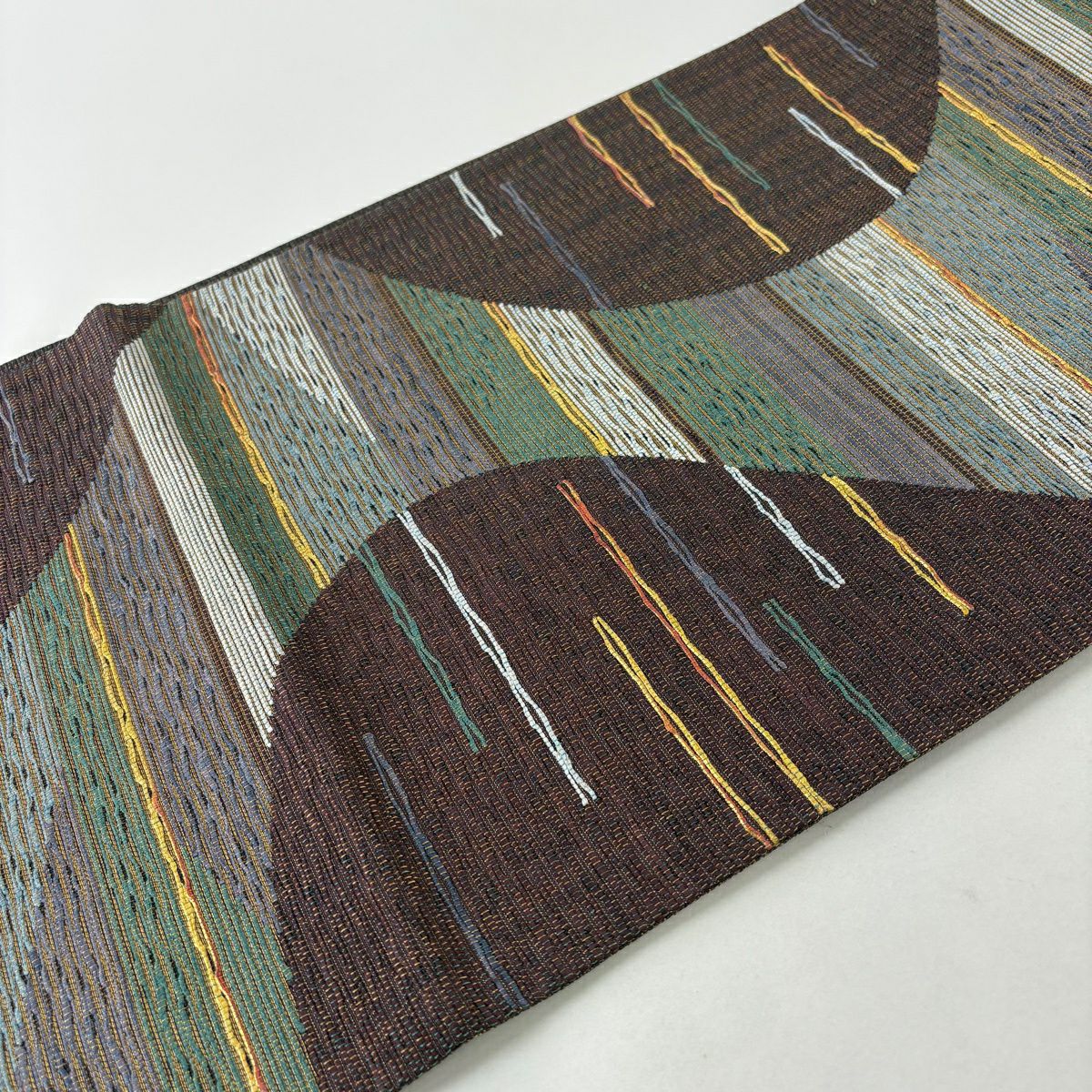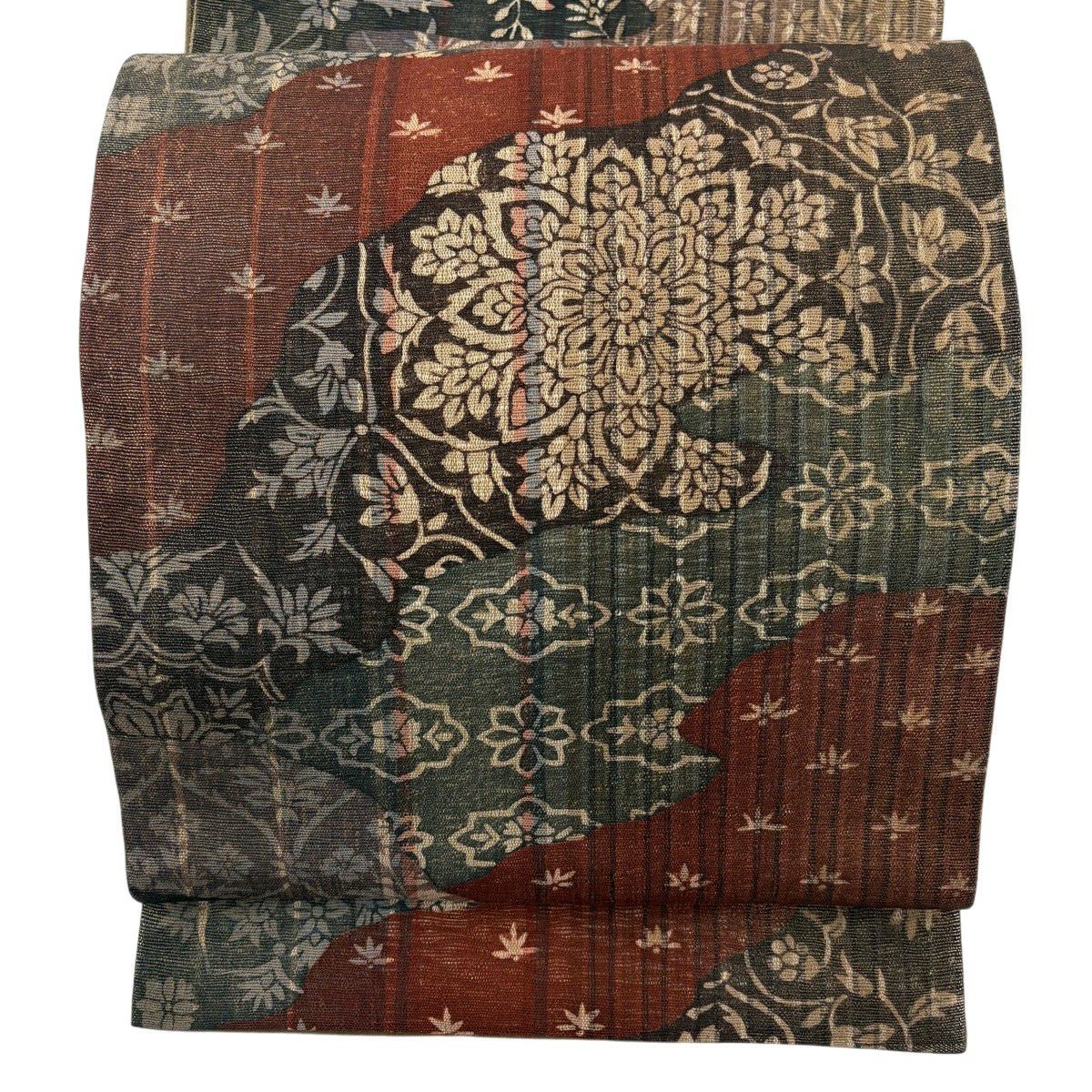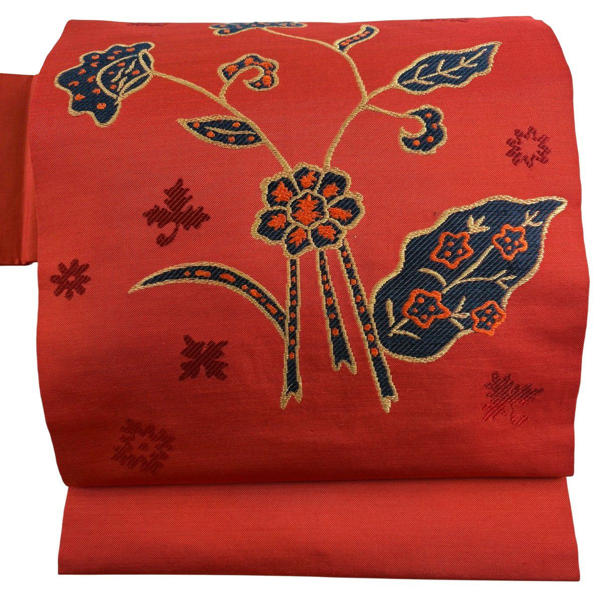 【美品】 名古屋帯 秀品 幾何学 赤茶 正絹