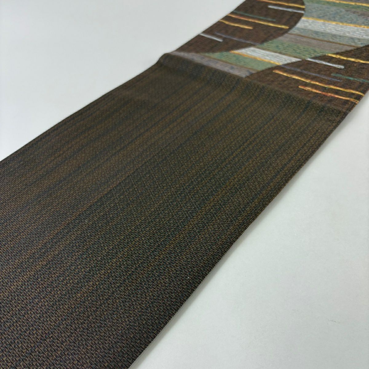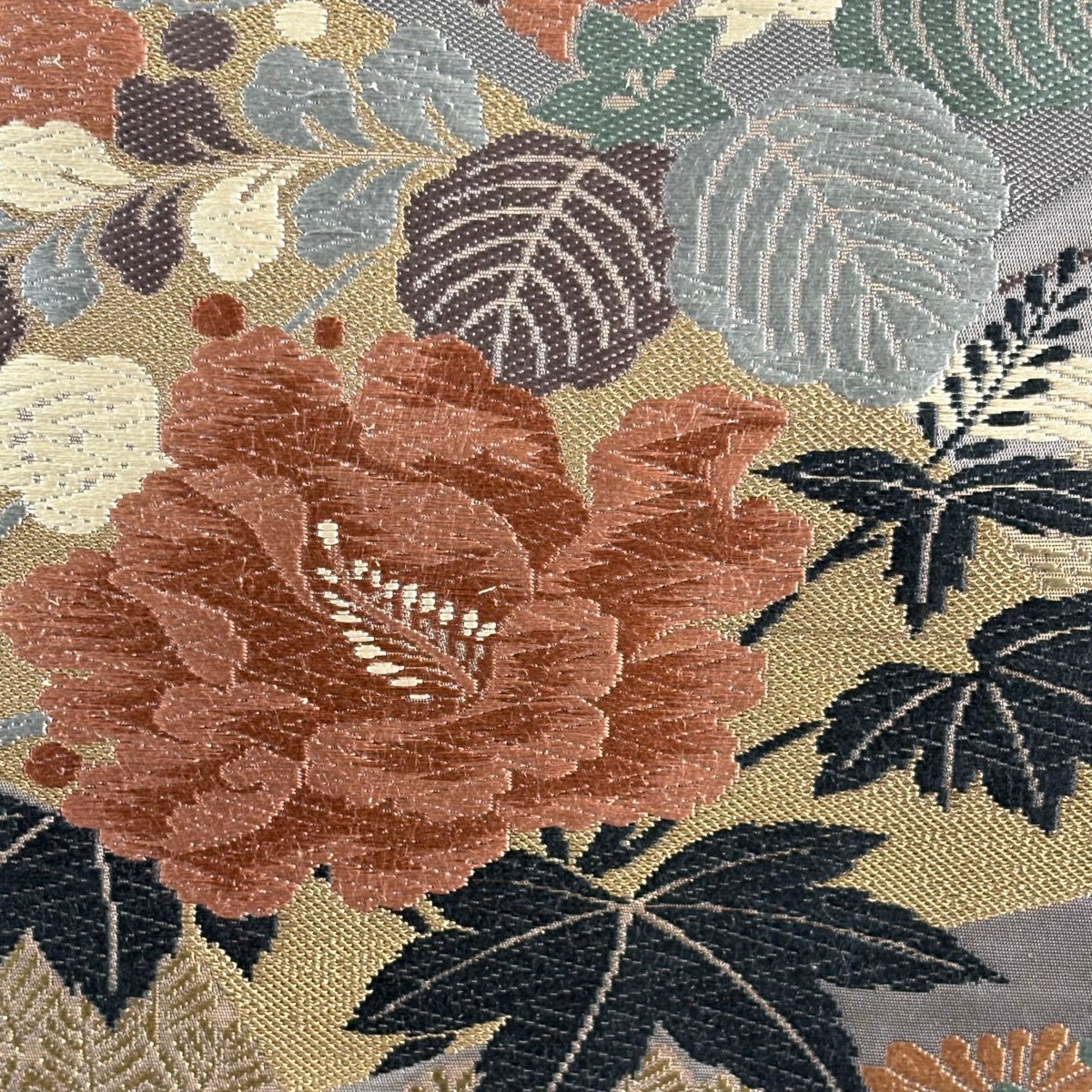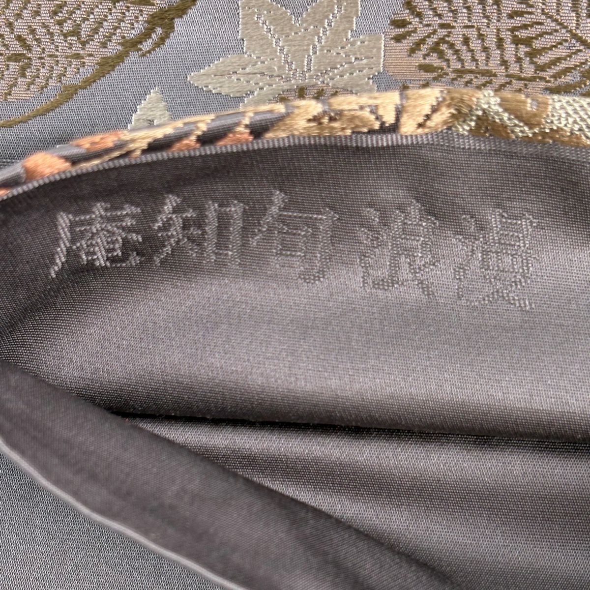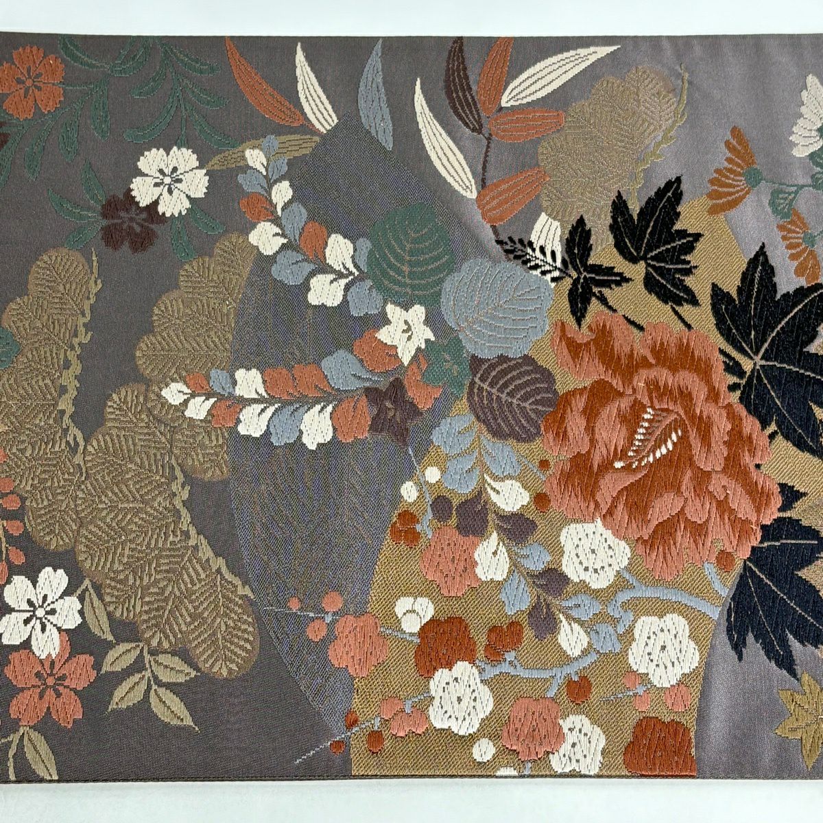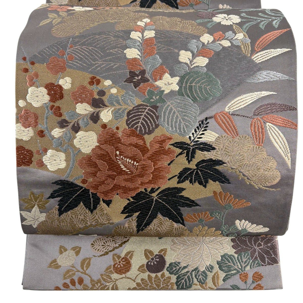 袋帯 秀品 草花 金糸 箔 灰茶 六通 正絹