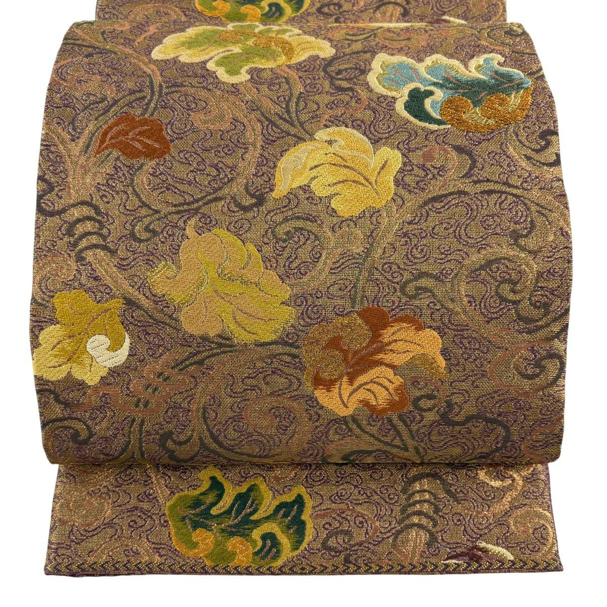 袋帯 秀品 花唐草 金糸 箔 金茶 六通 正絹