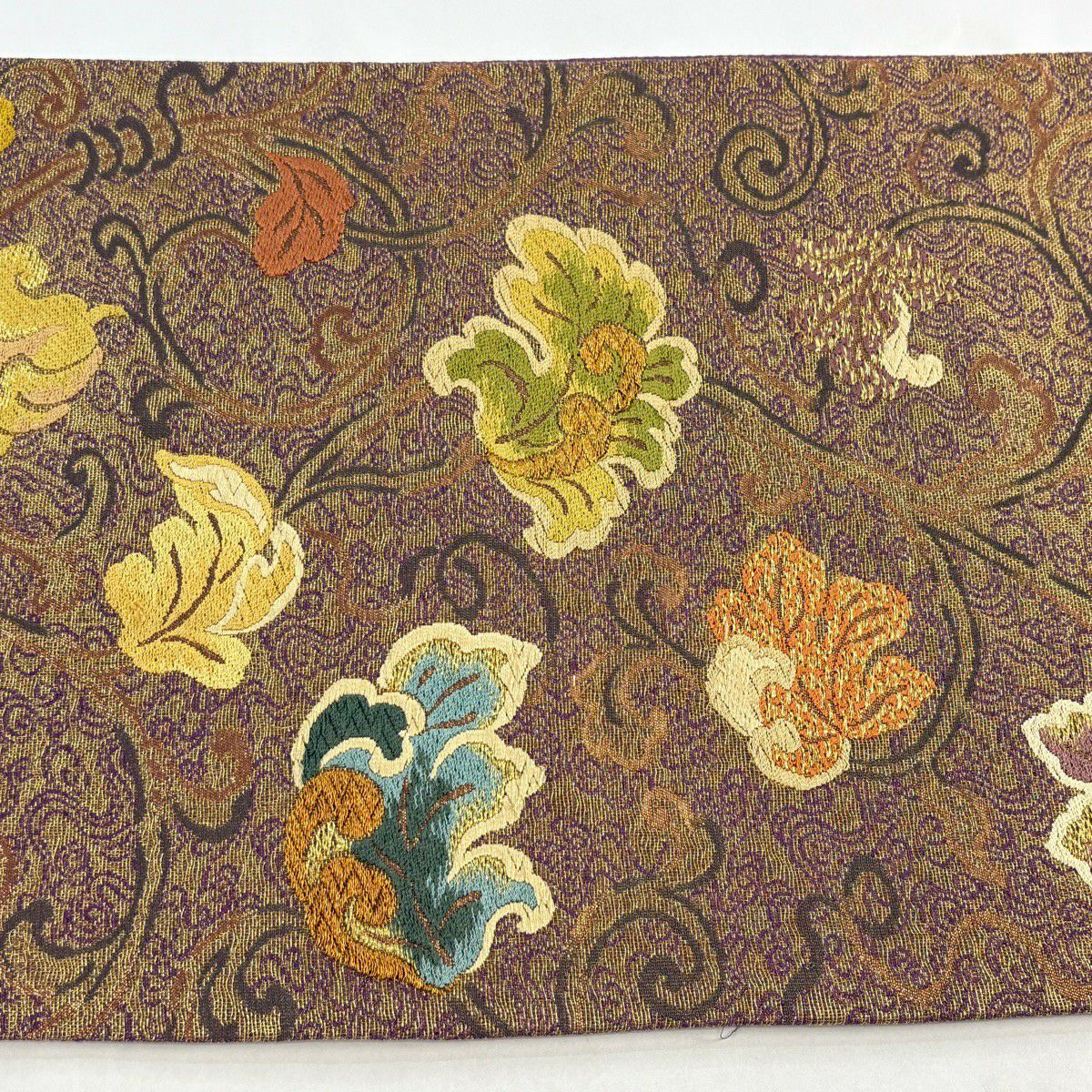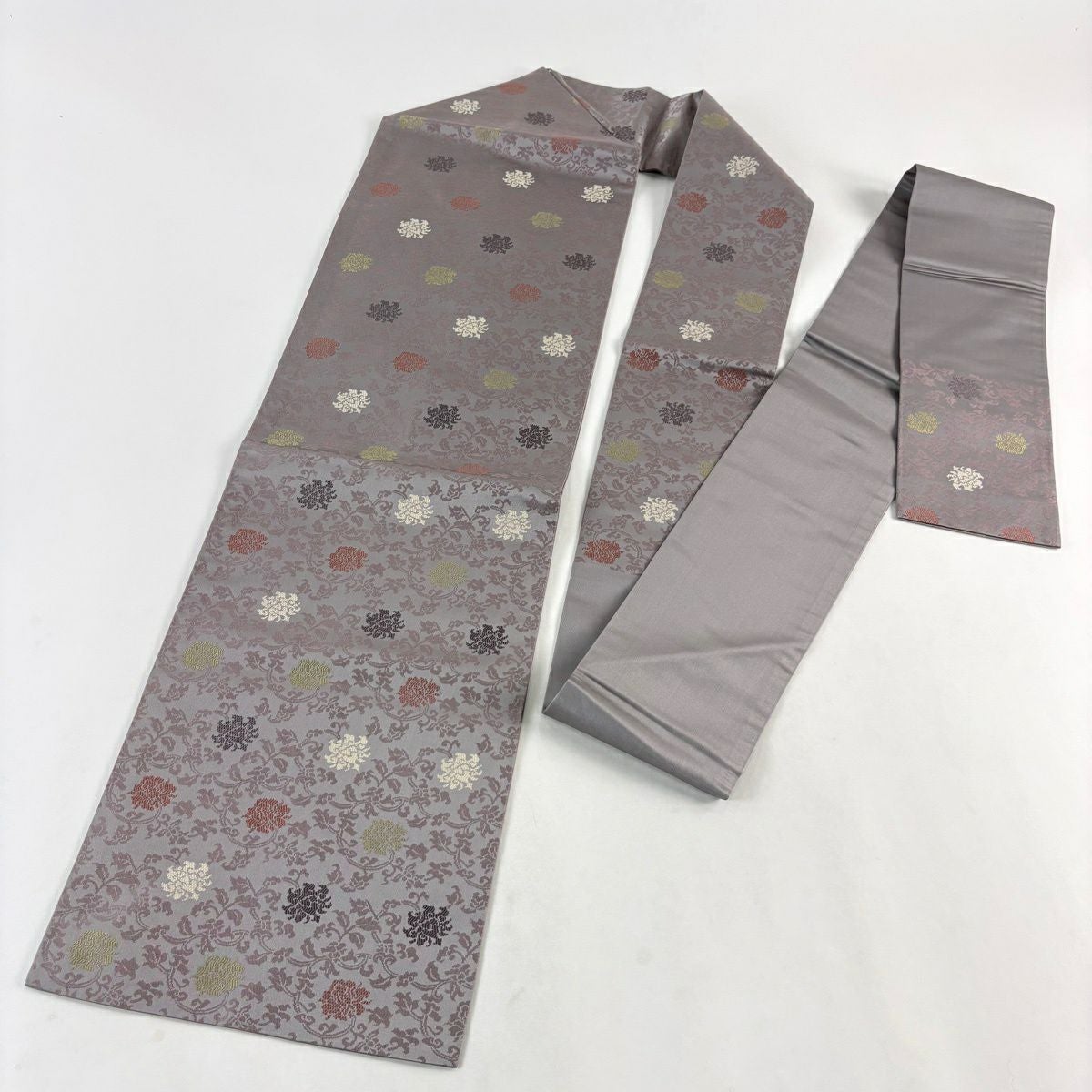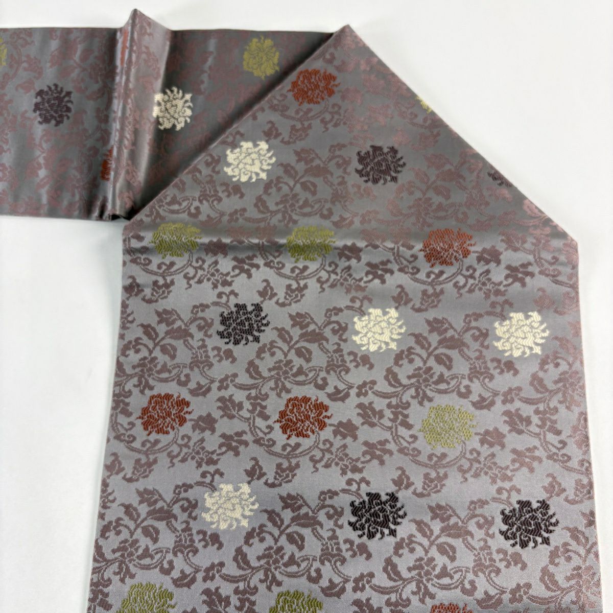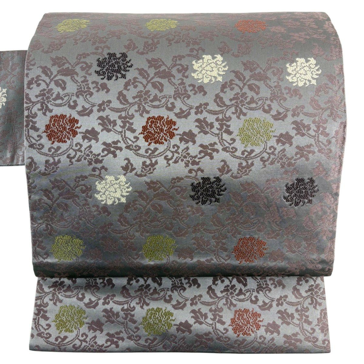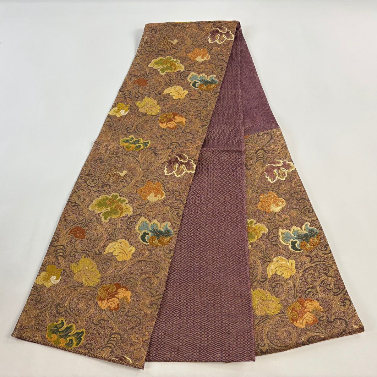 【美品】 名古屋帯 秀品 花唐草 灰紫 正絹