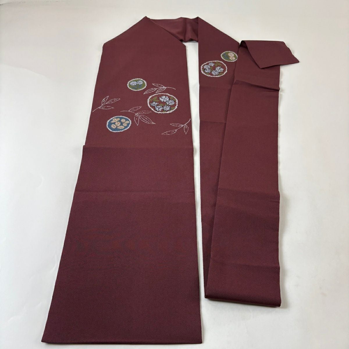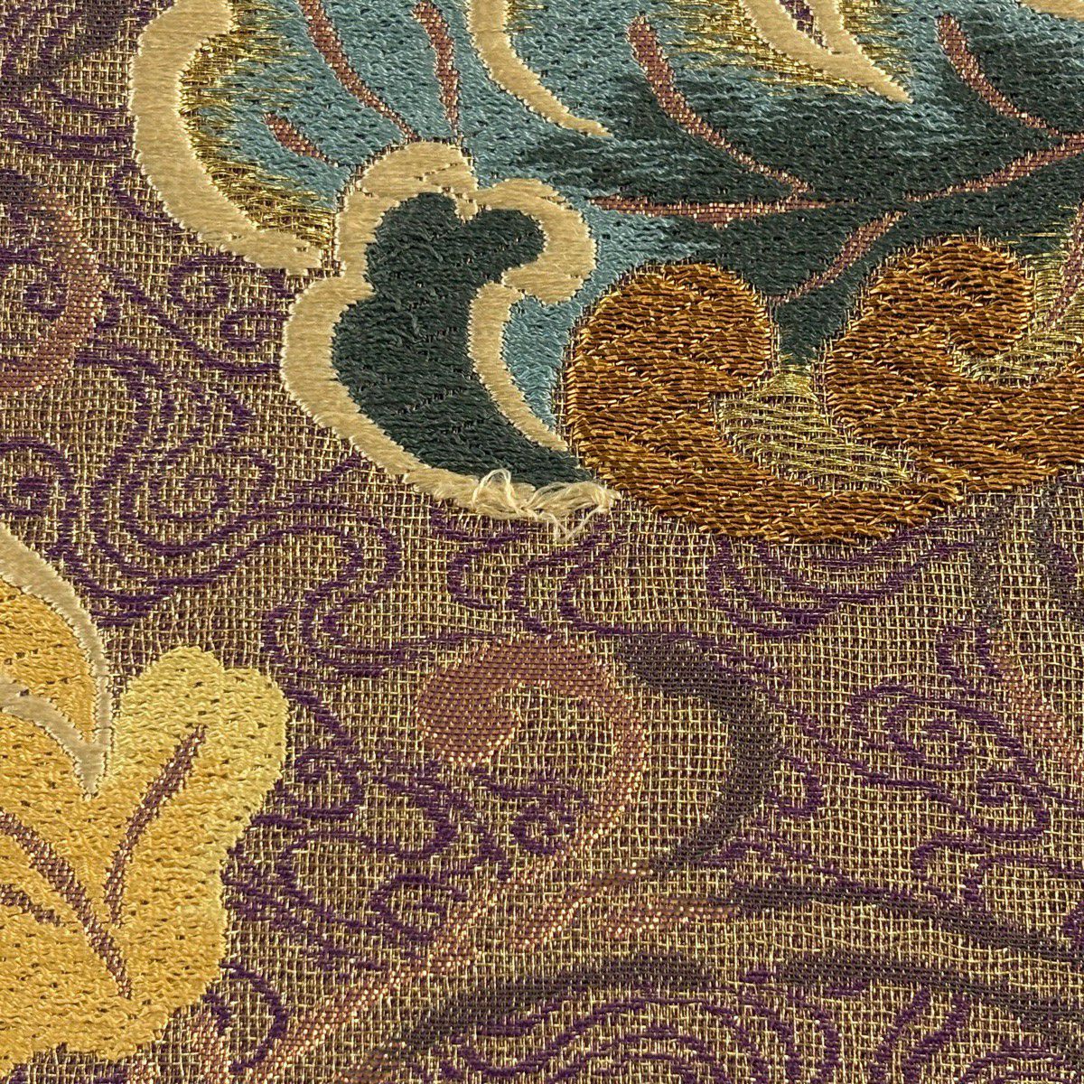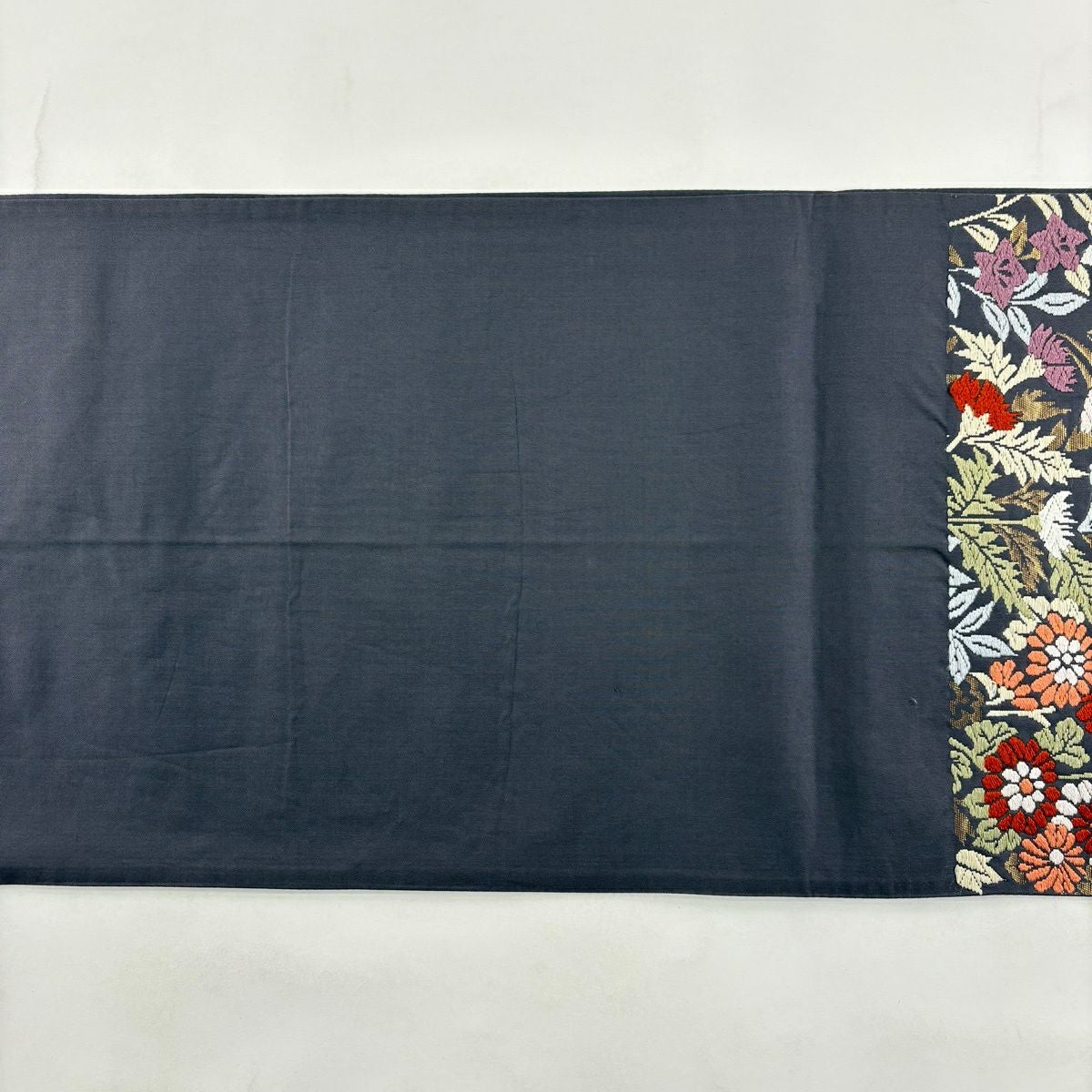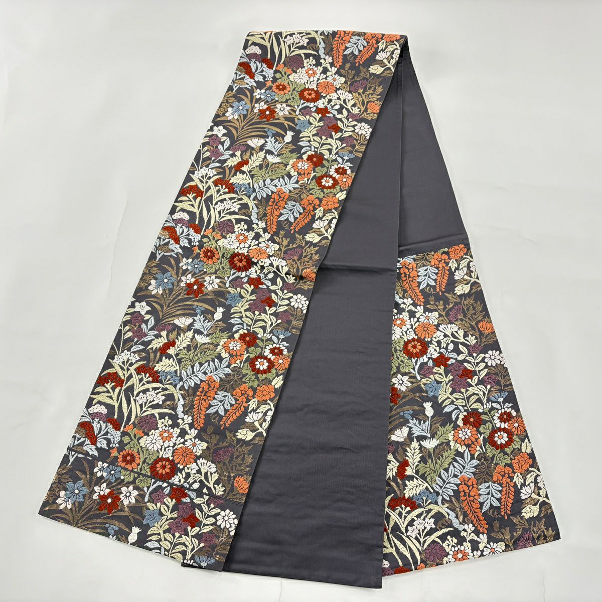 袋帯 秀品 秋草 刺繍 箔 灰紫 六通 正絹
