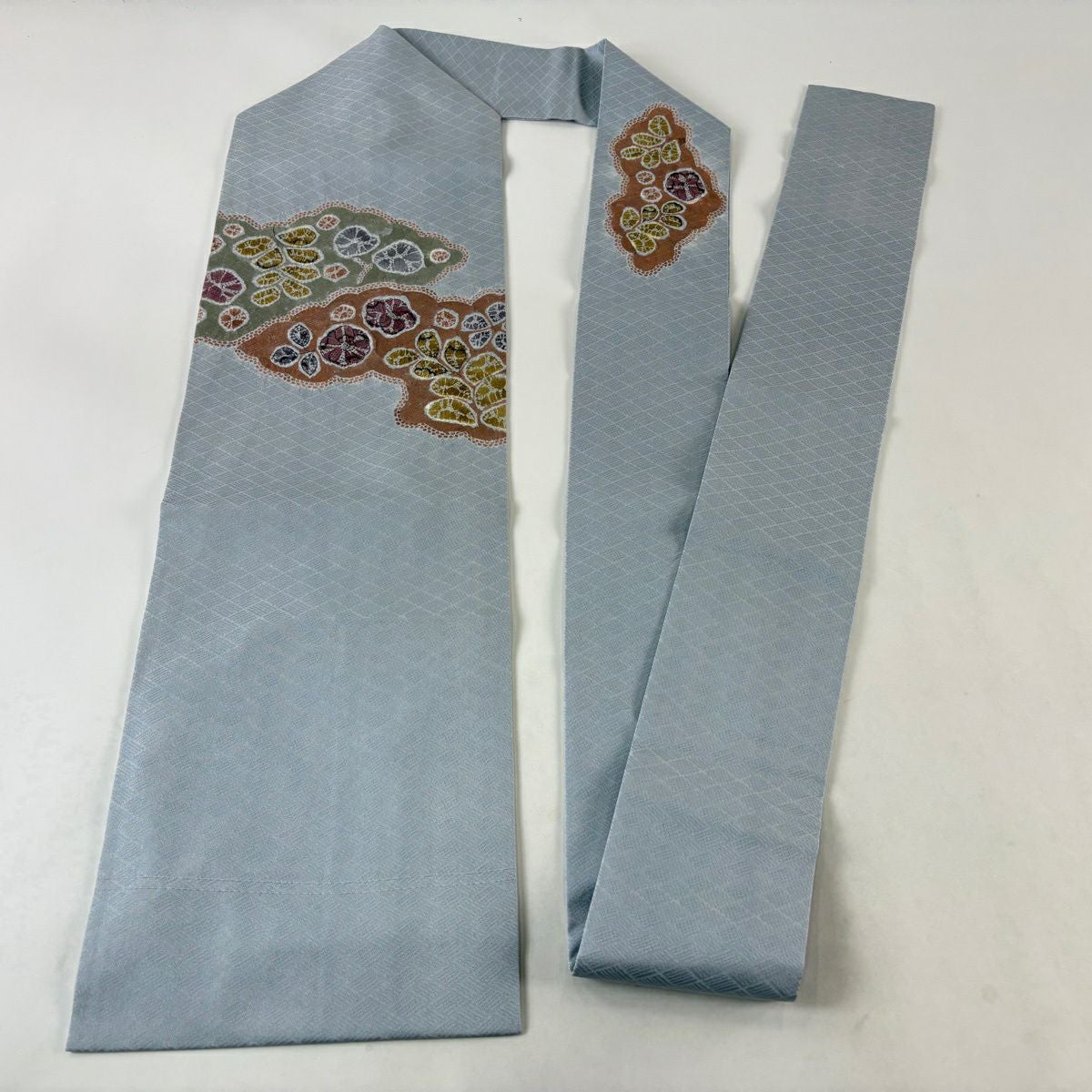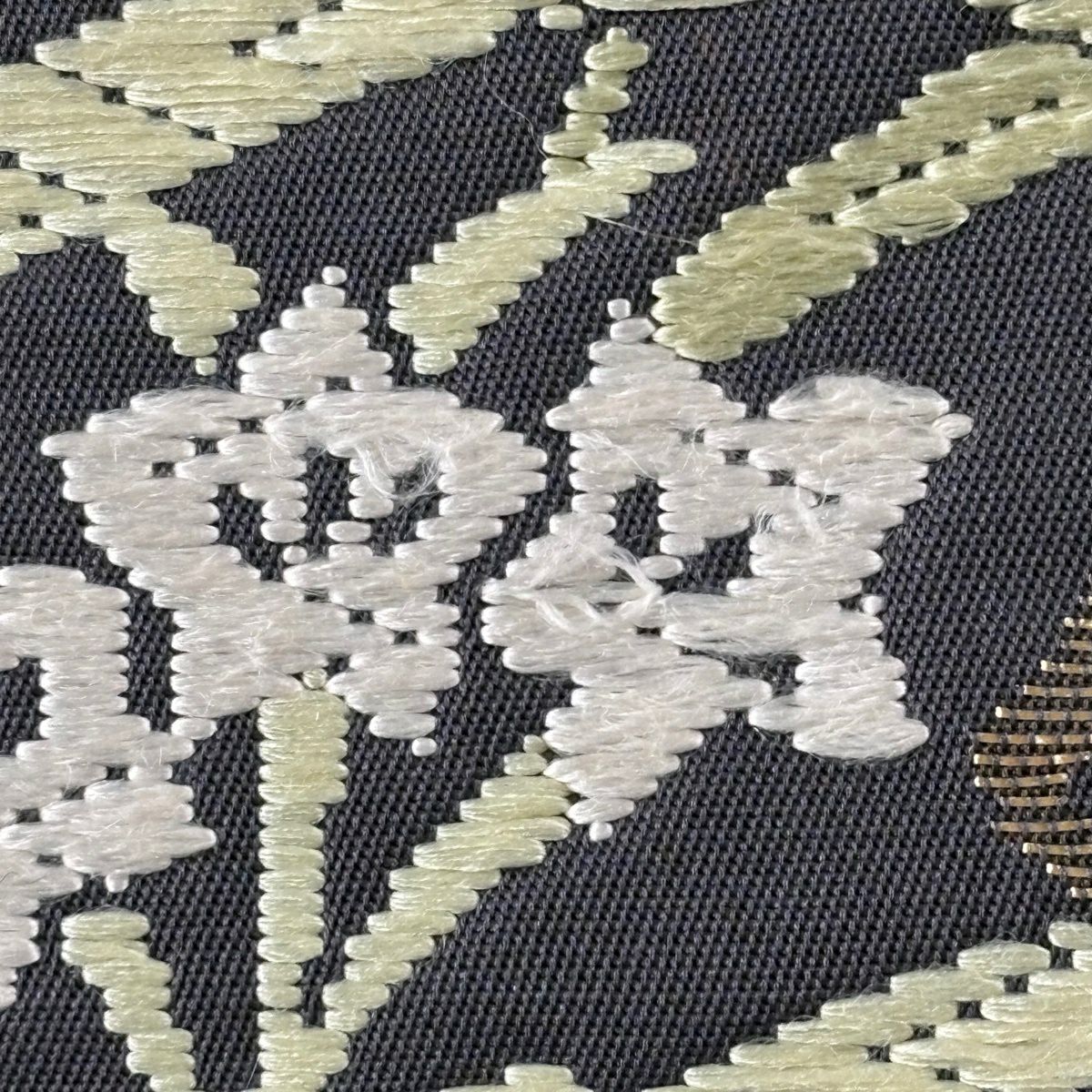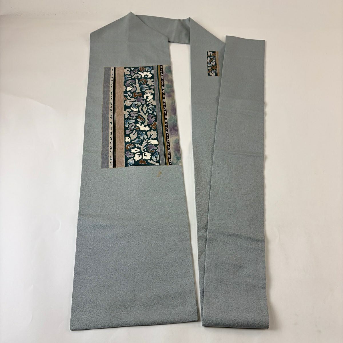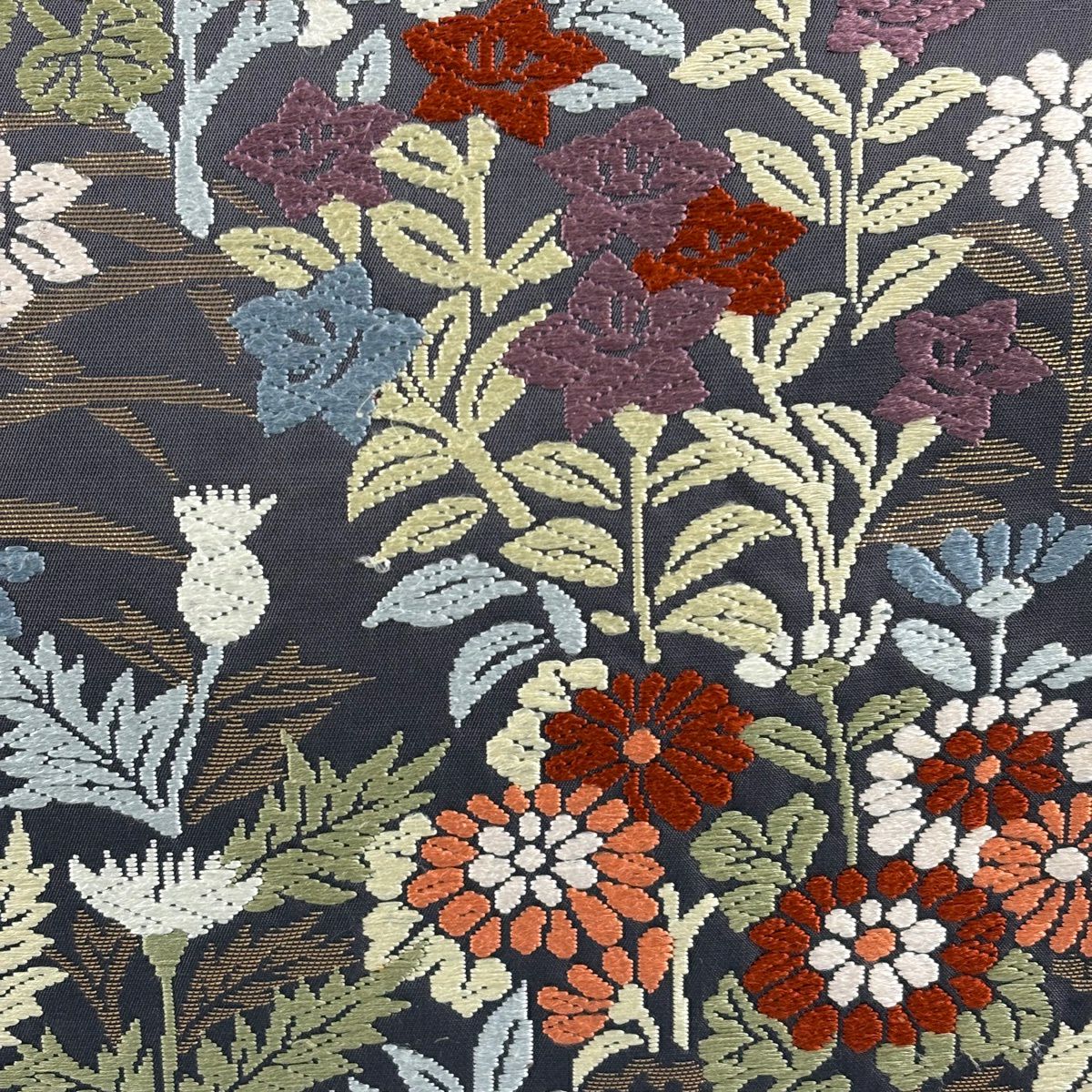 【美品】 名古屋帯 秀品 草花 青灰色 正絹