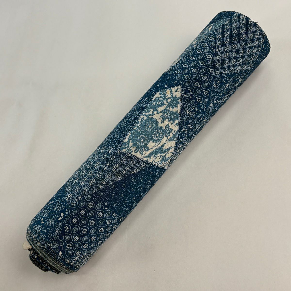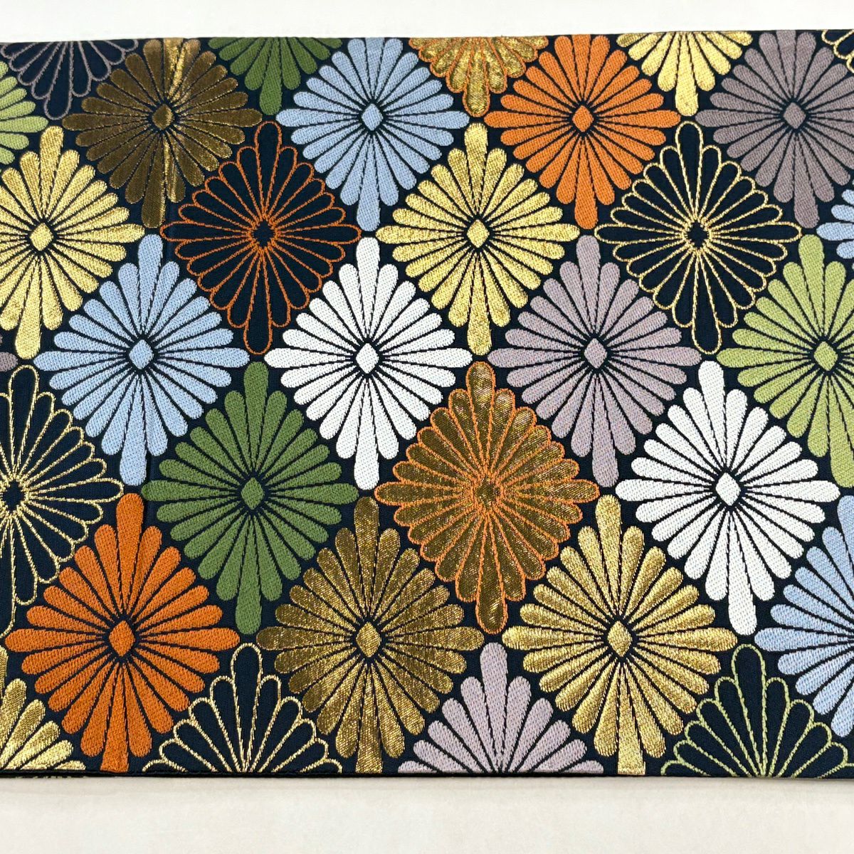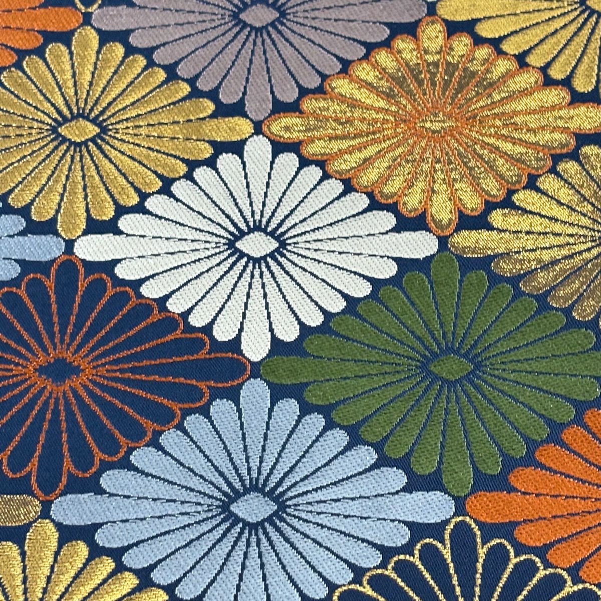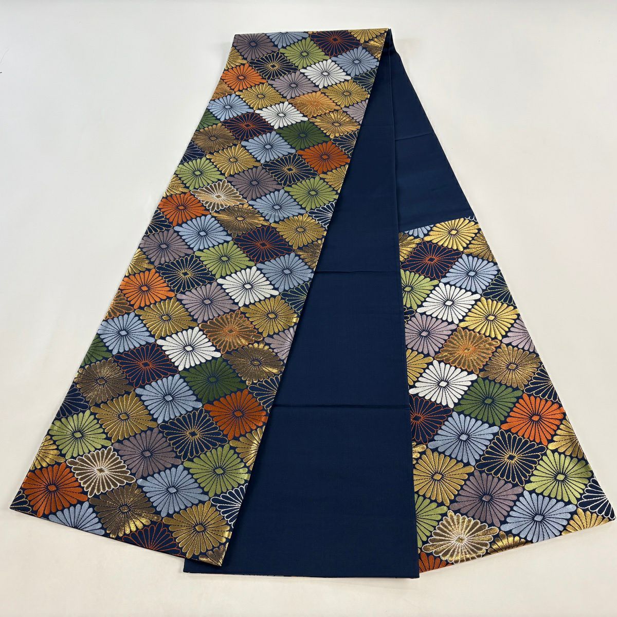 袋帯 秀品 菊菱 箔 金糸 藍色 六通 正絹