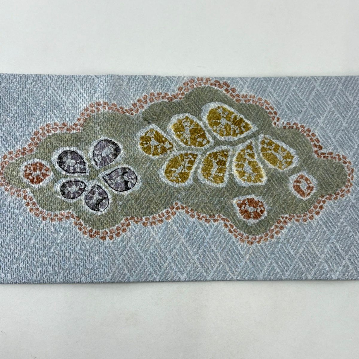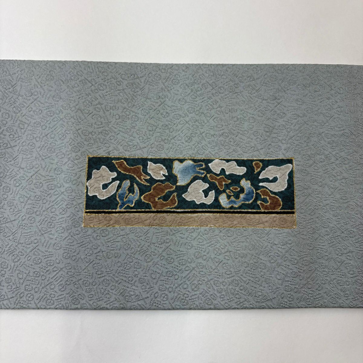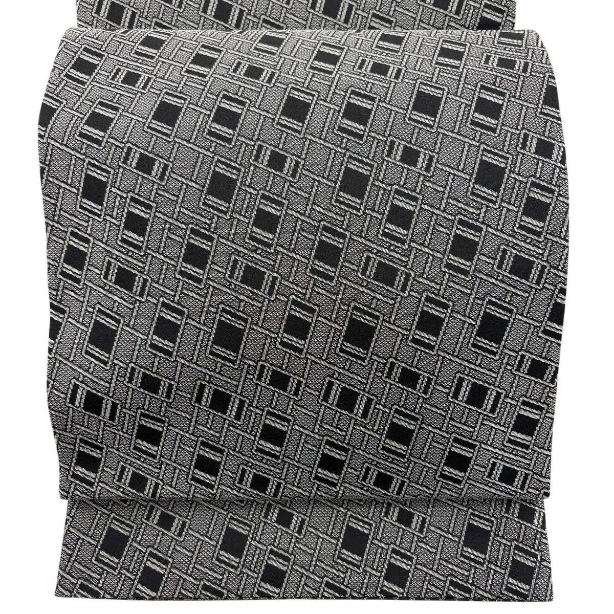 袋帯 秀品 幾何学模様 灰色 お太鼓柄 正絹