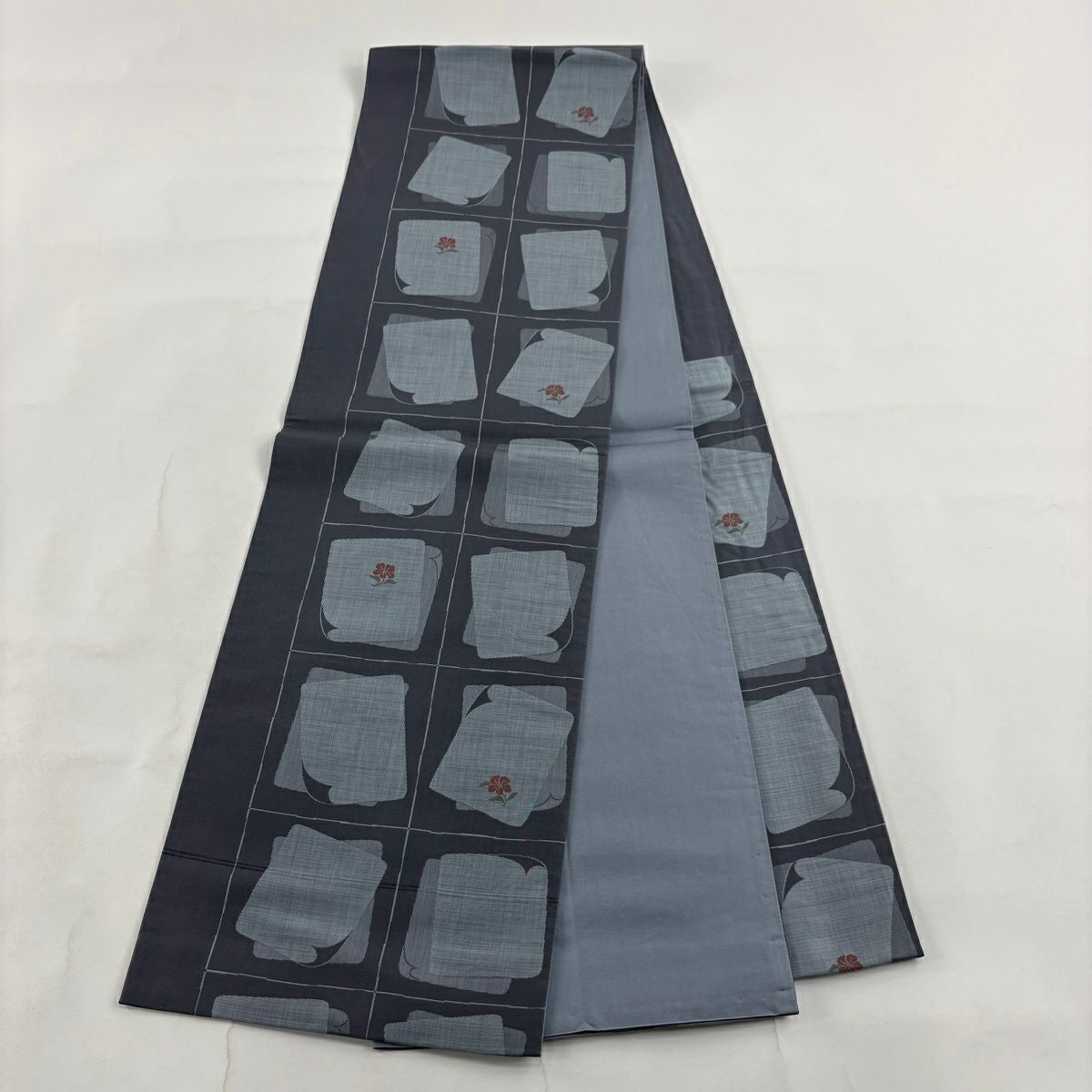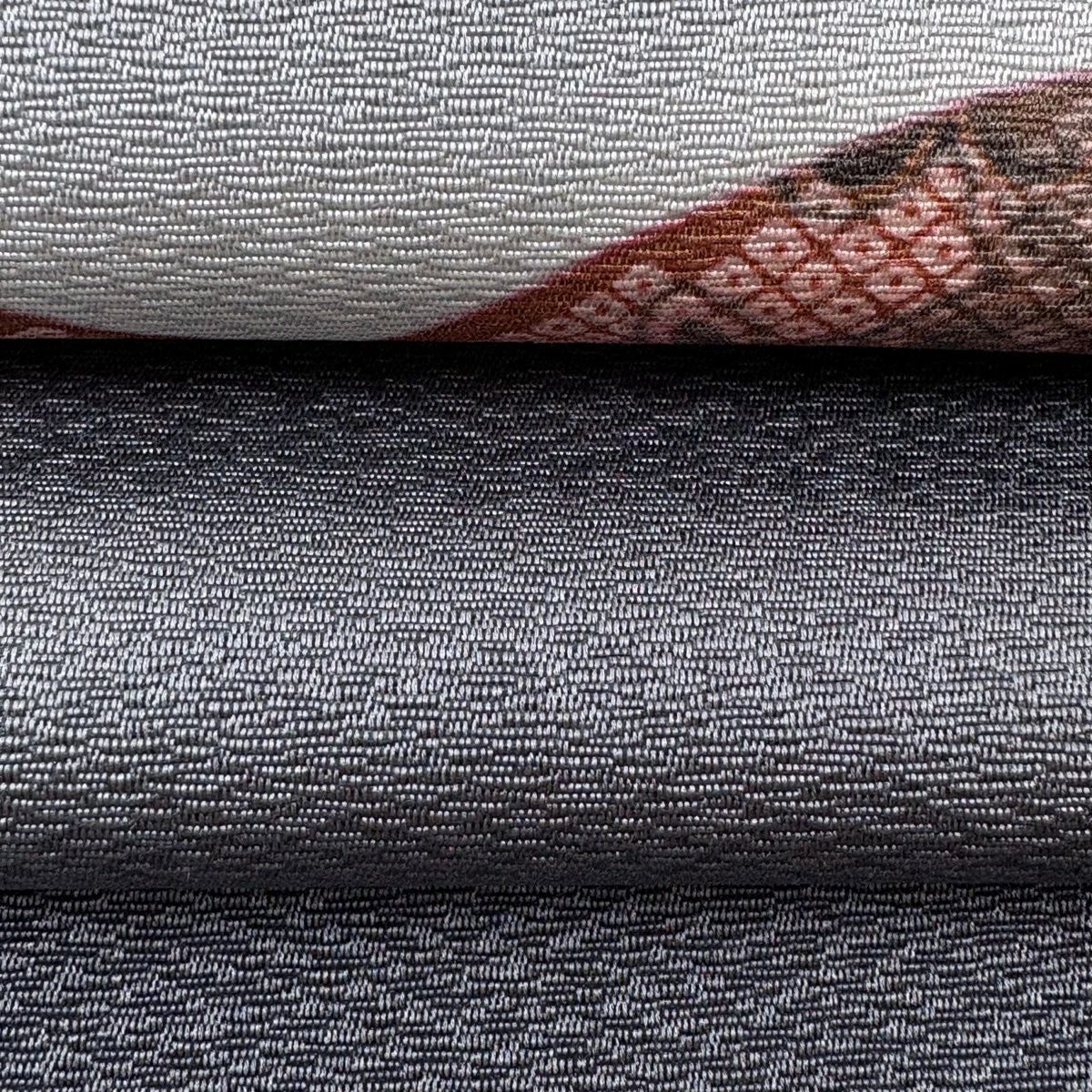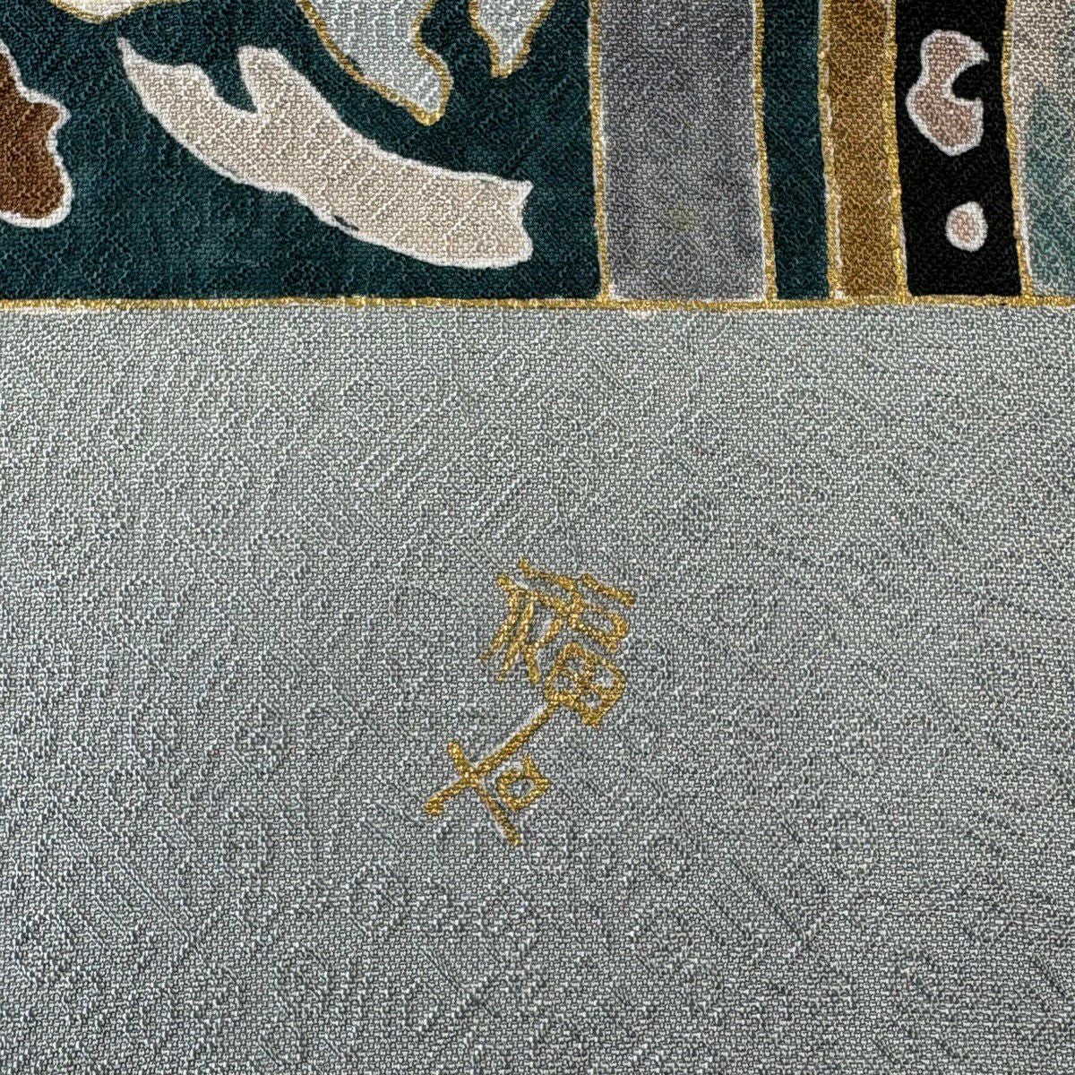 袋帯 秀品 幾何学模様 灰色 お太鼓柄 正絹