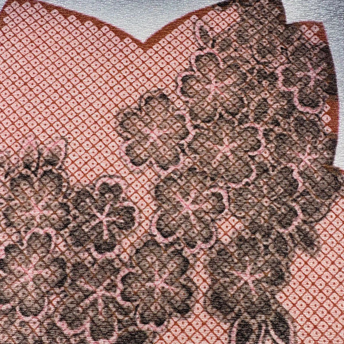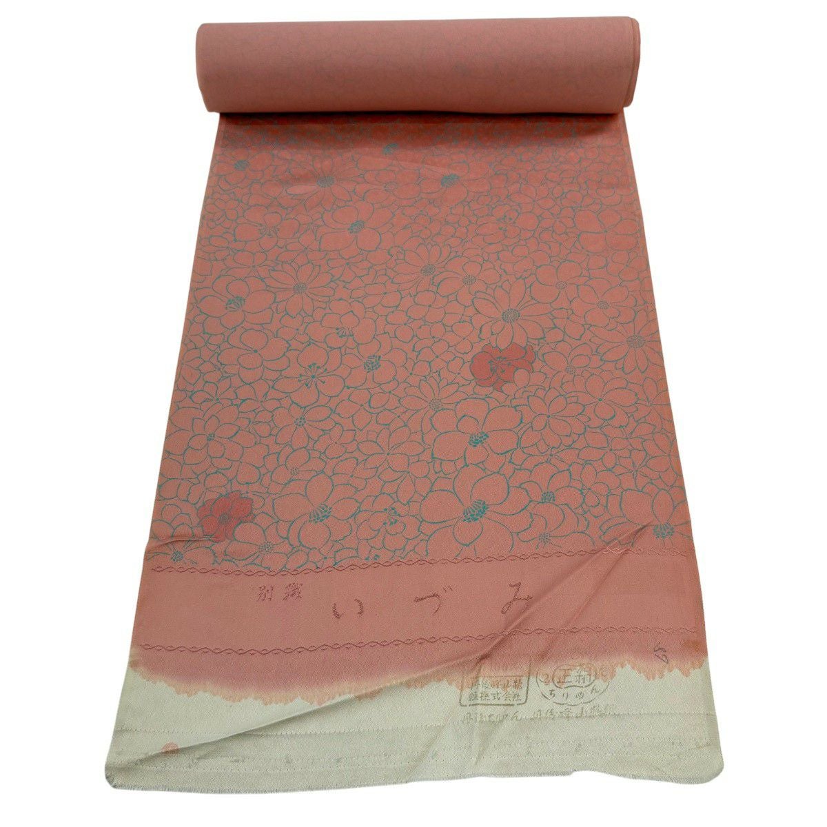 反物 秀品 小紋 花 サーモンピンク 正絹