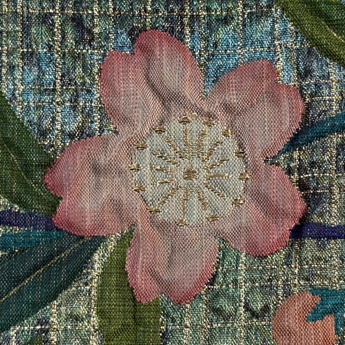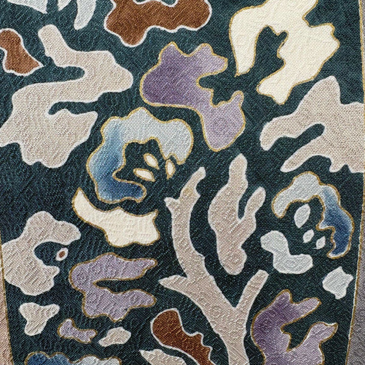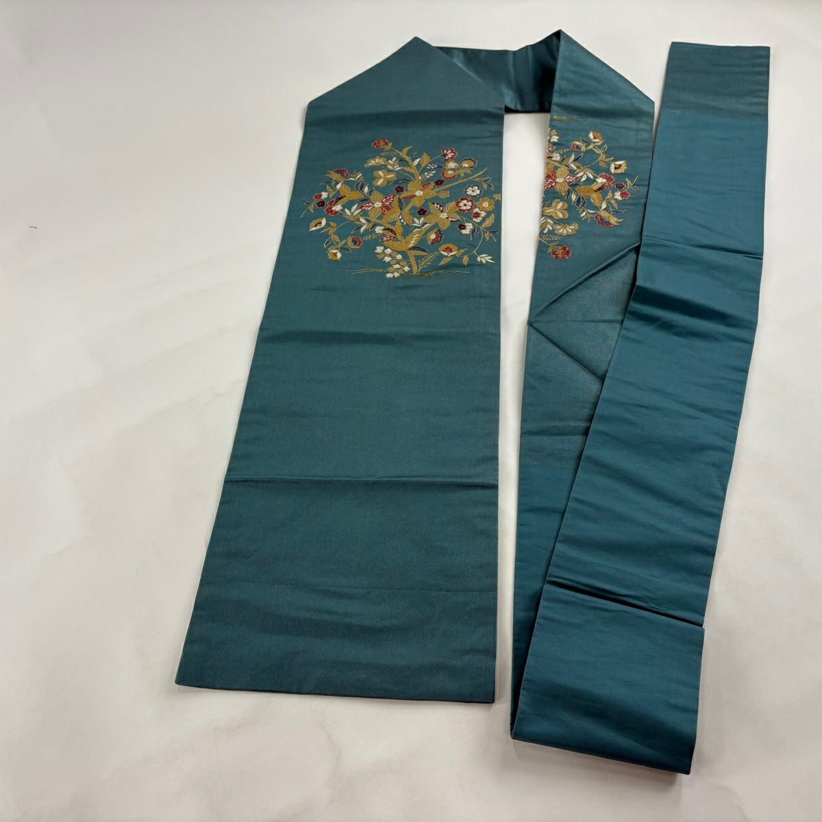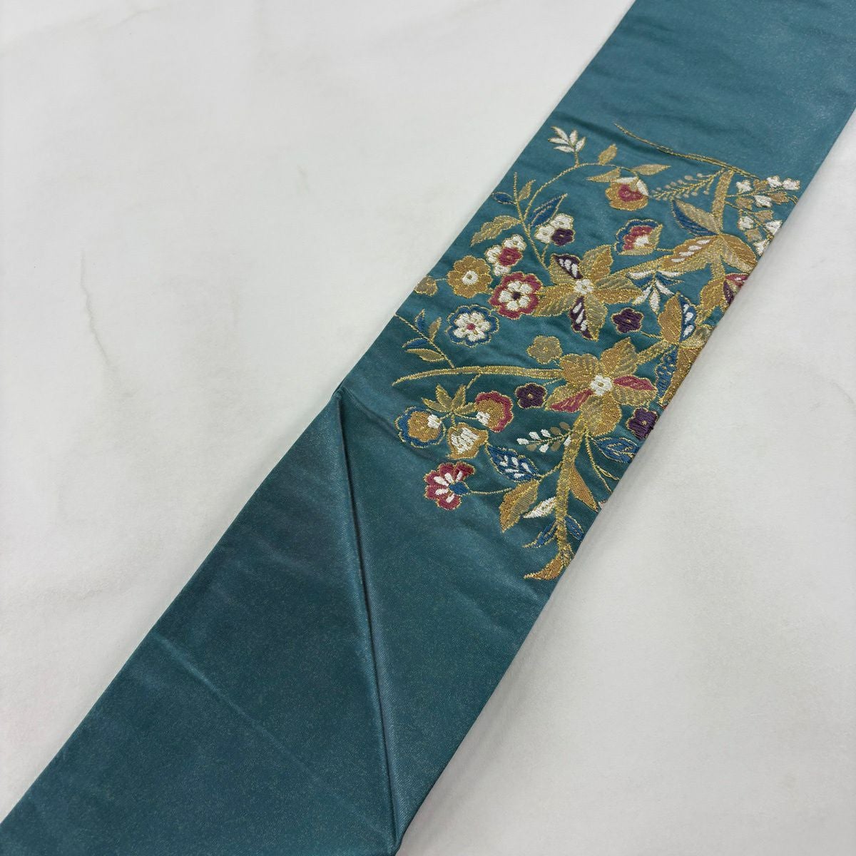 名古屋帯 秀品 草花 金銀糸 箔 青緑 正絹