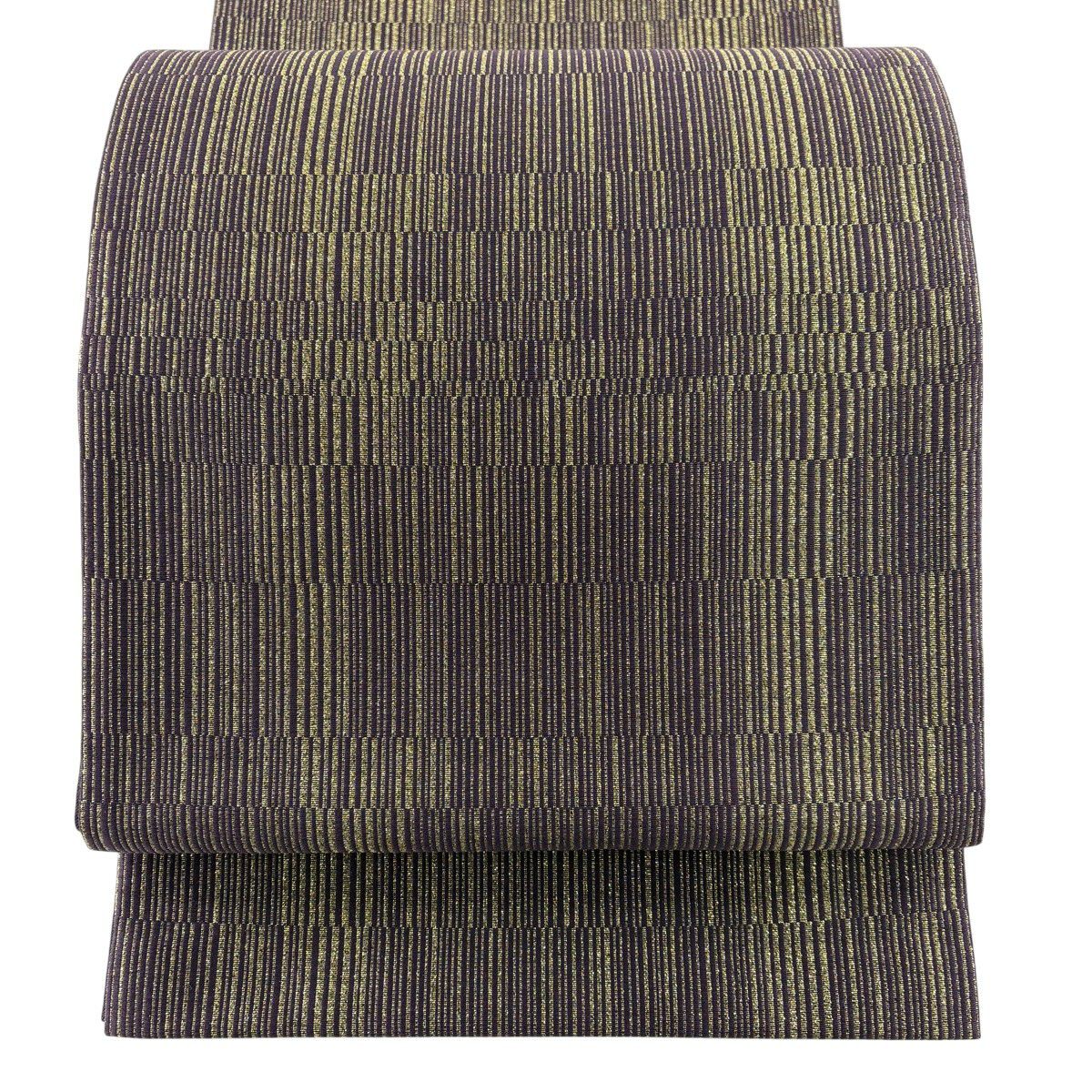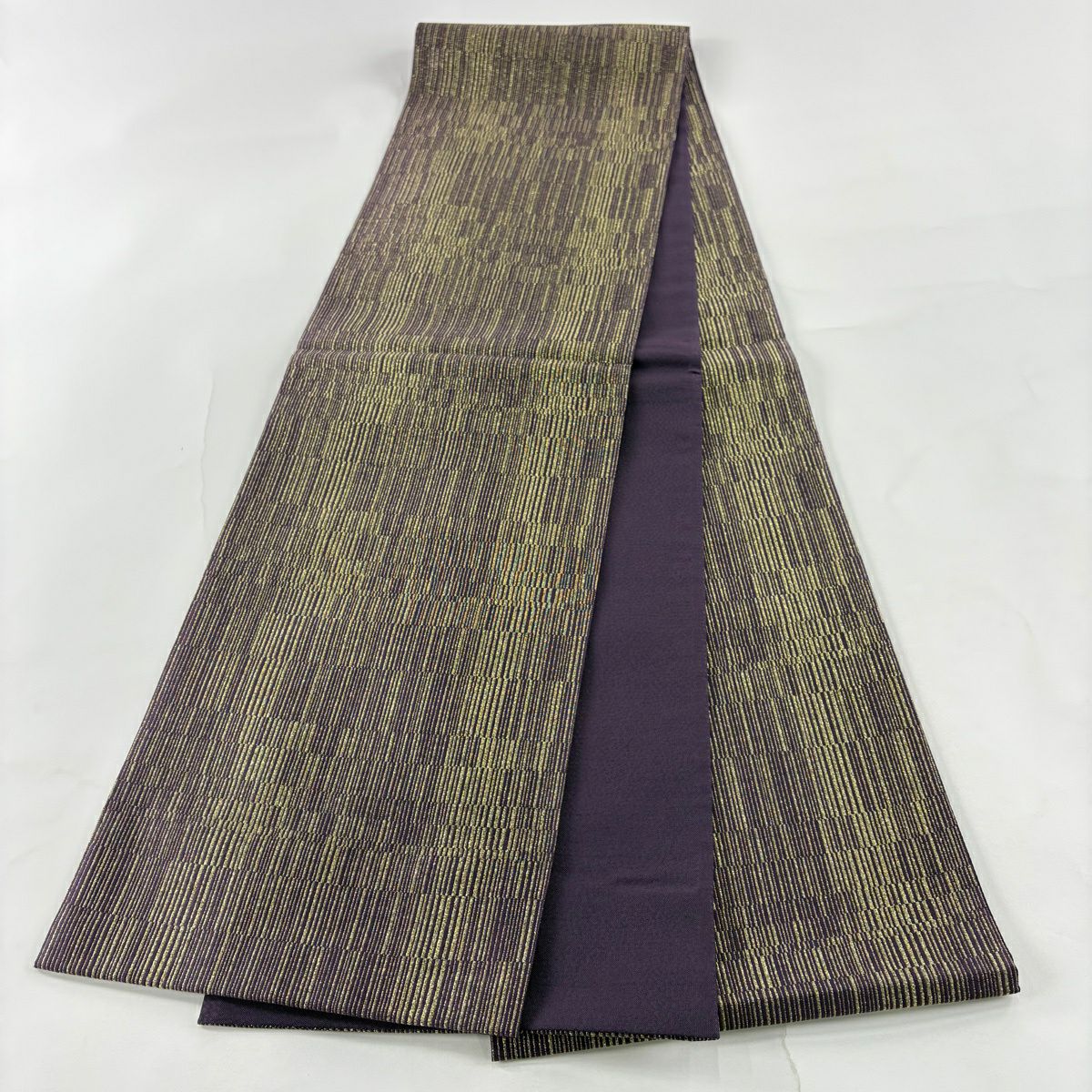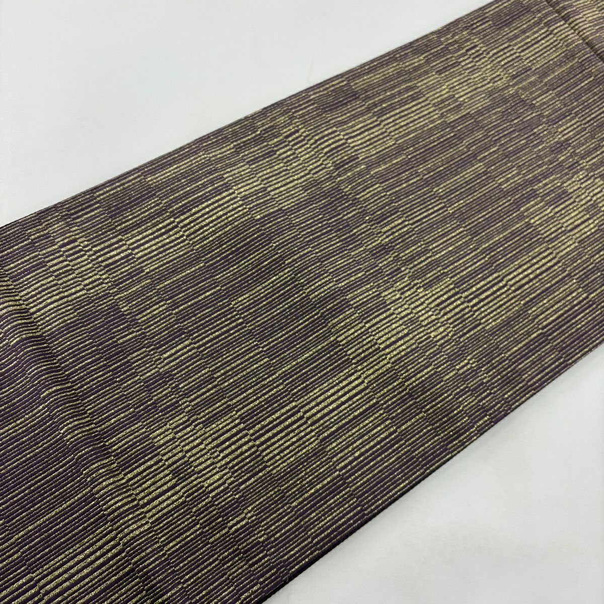 【美品】 袋帯 秀品 縞 箔 紫 全通 正絹