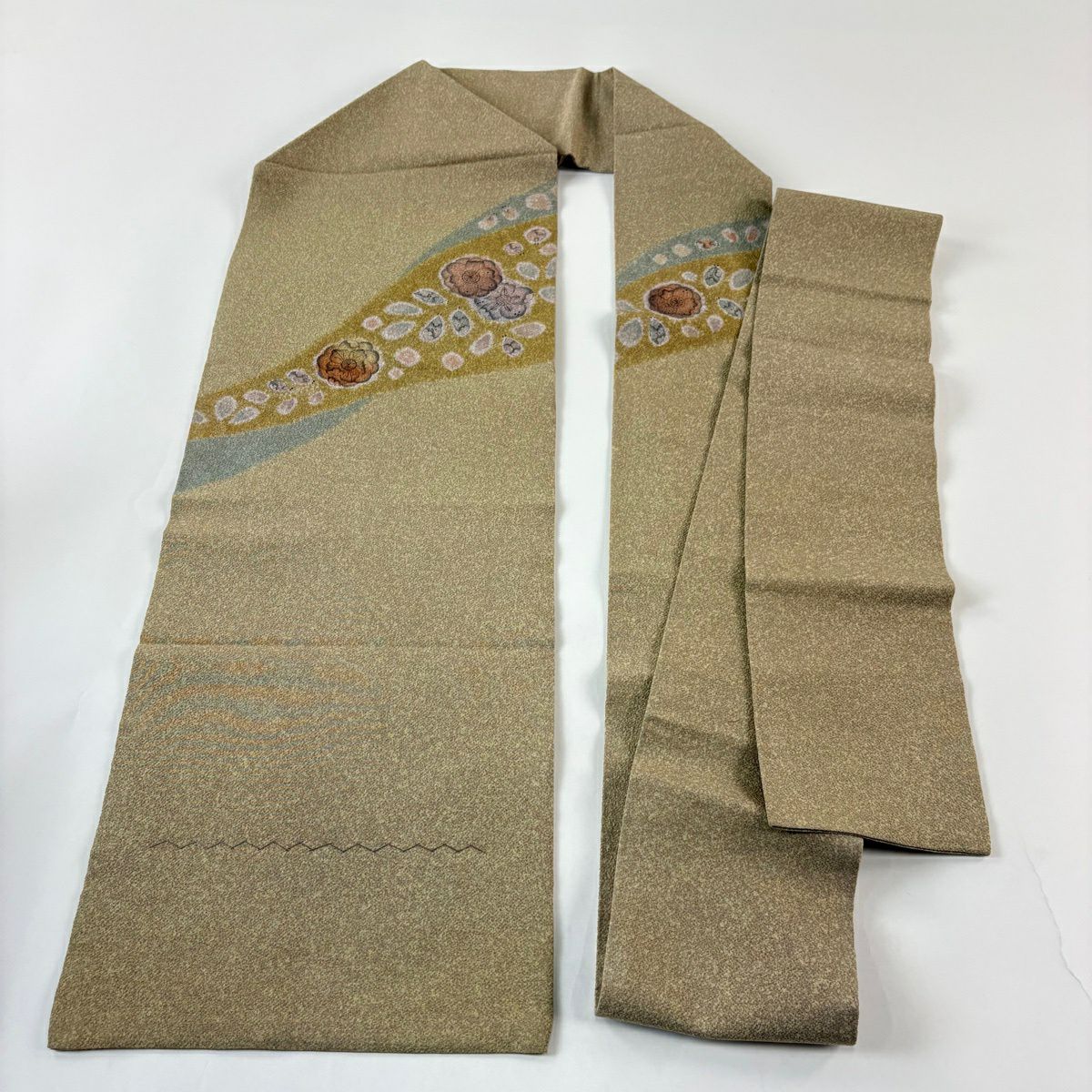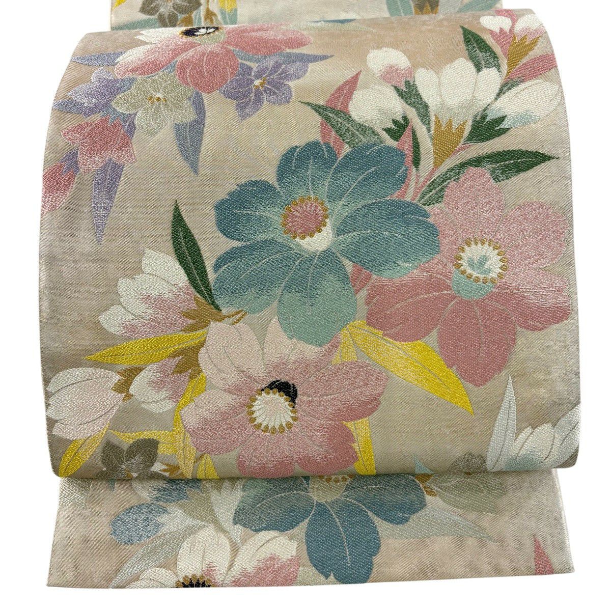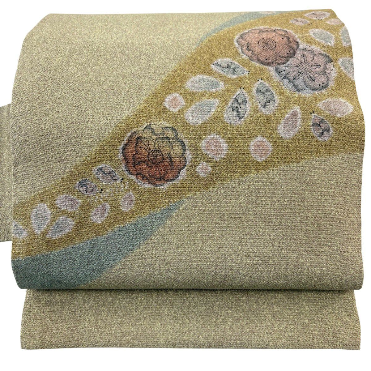 【美品】 名古屋帯 秀品 草花 薄茶色 正絹