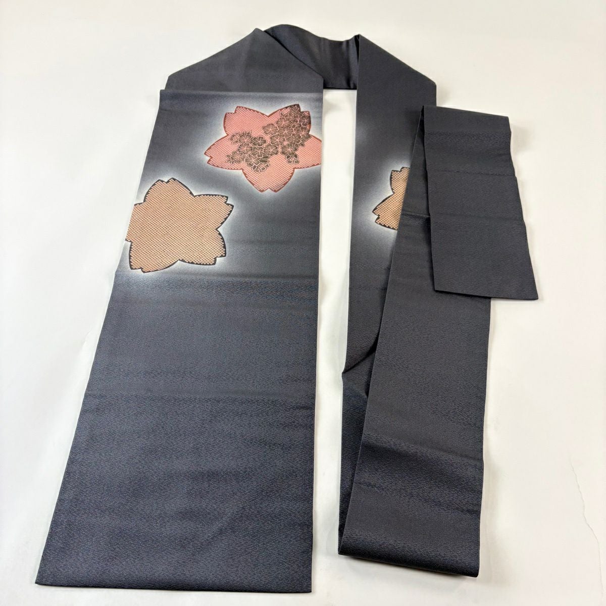 名古屋帯 秀品 桜 疋田 ぼかし 灰色 正絹