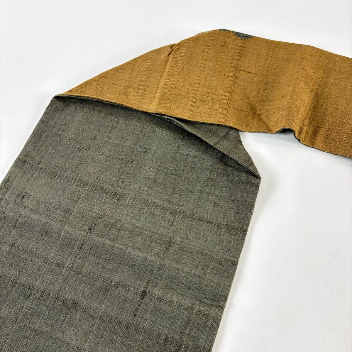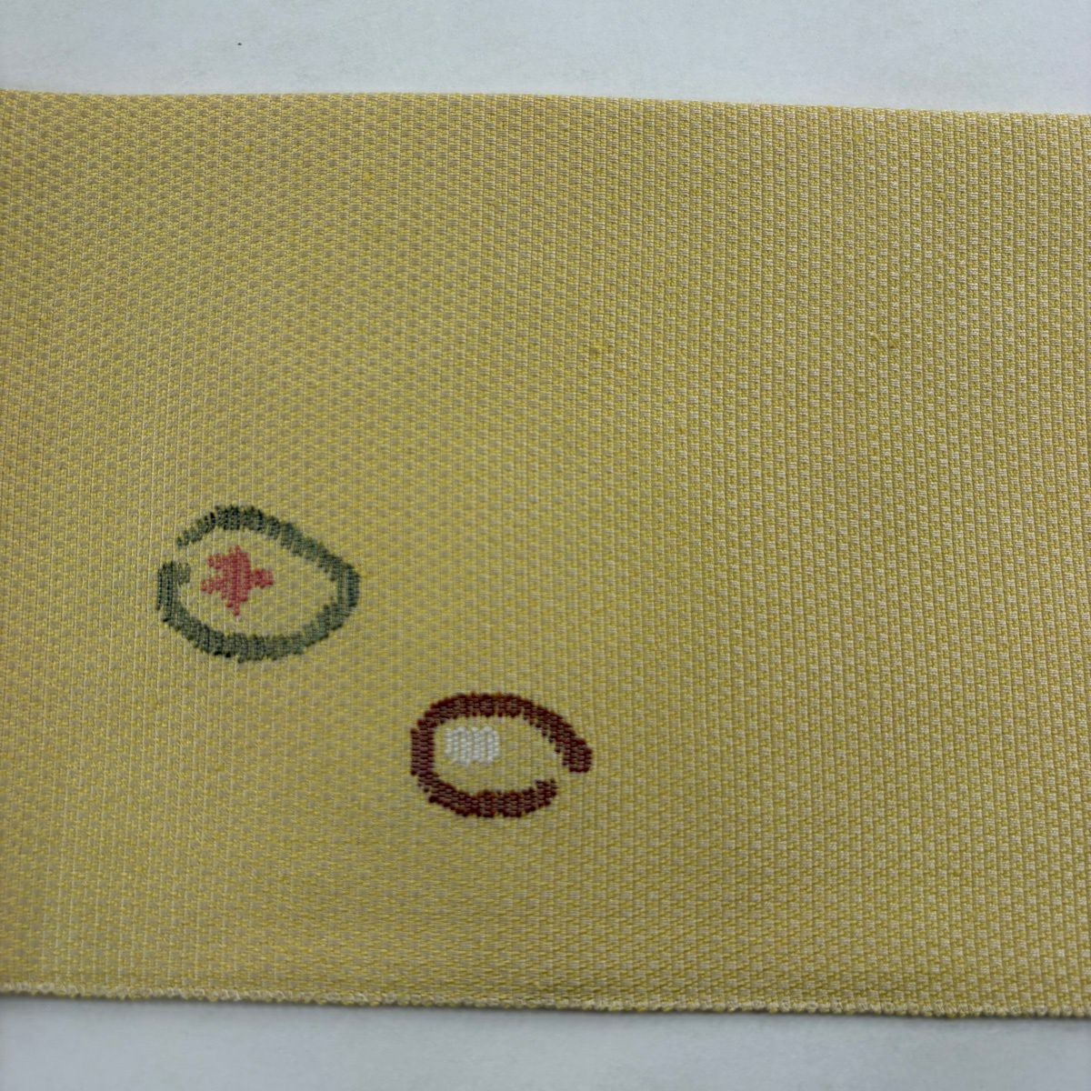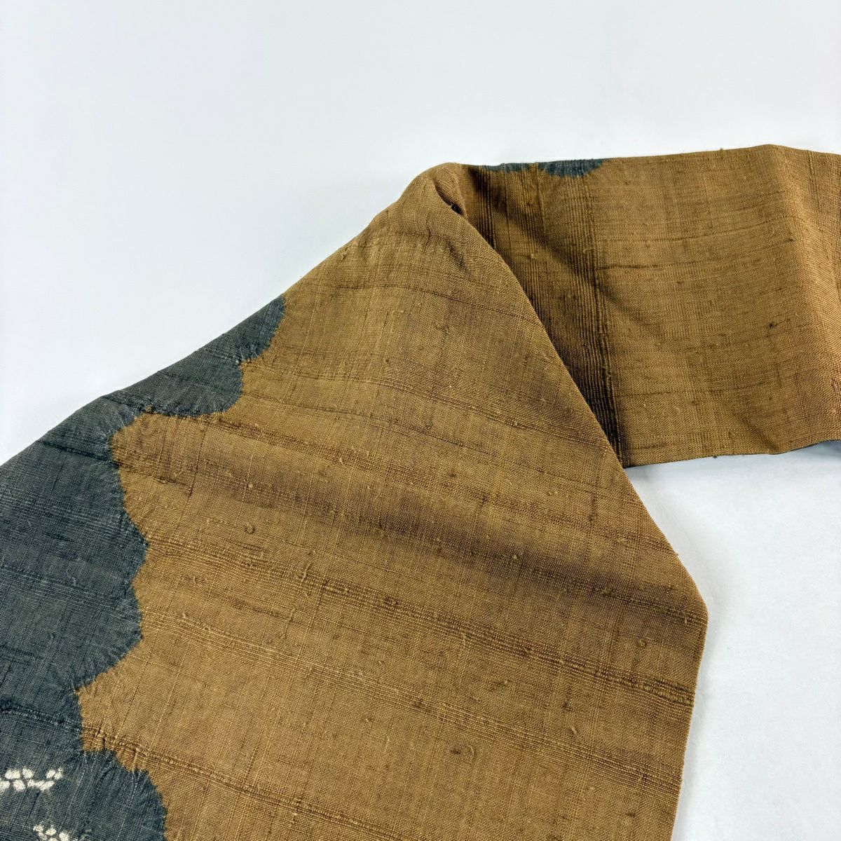 名古屋帯 秀品 紬地 花 絞り 黄土色 正絹