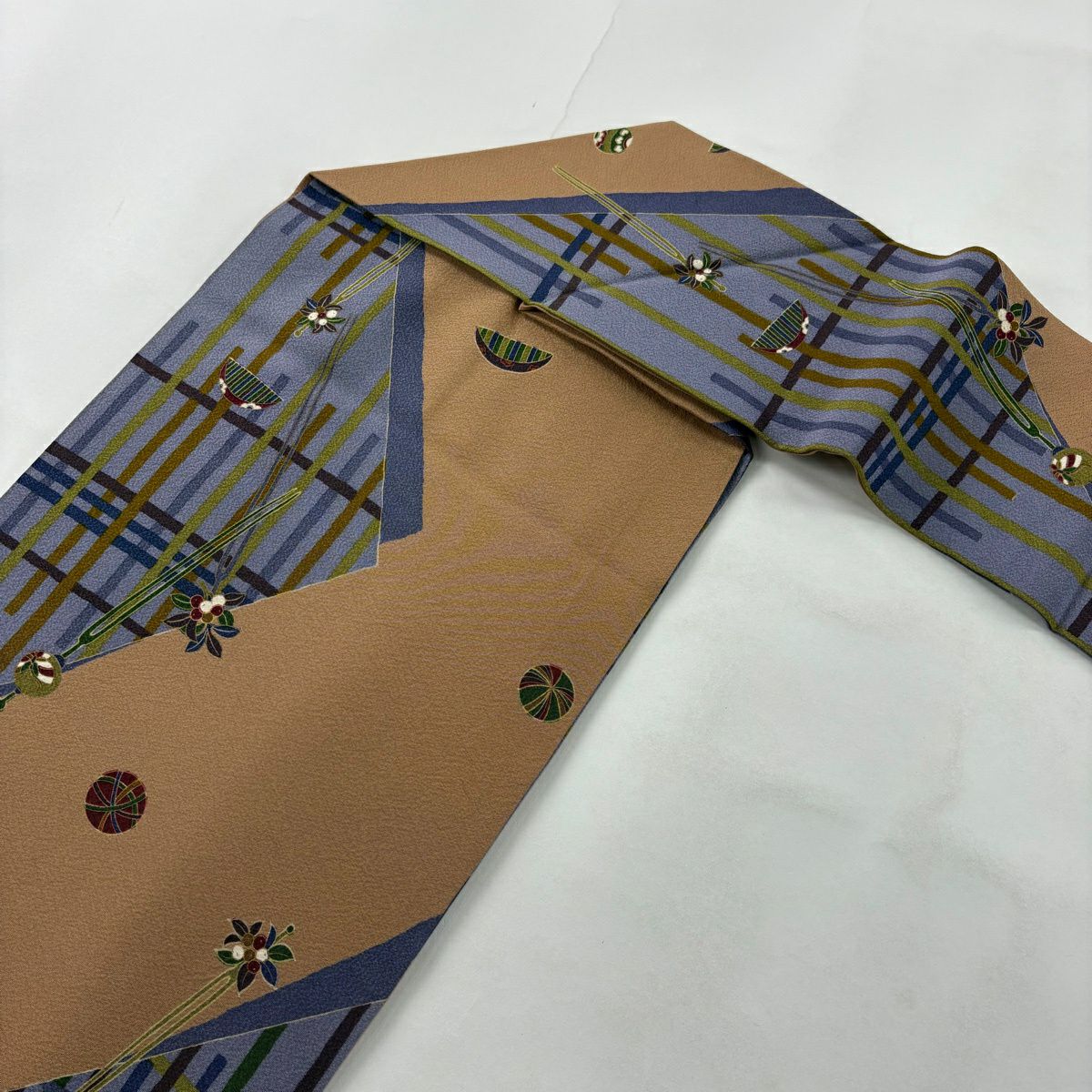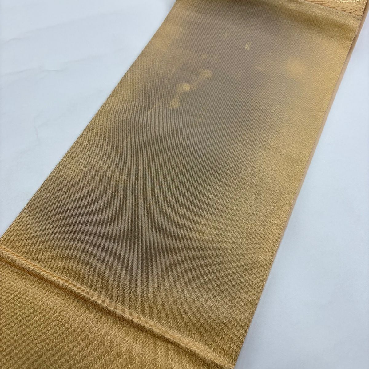 袋帯 秀品 幾何学 薄オレンジ 六通 正絹