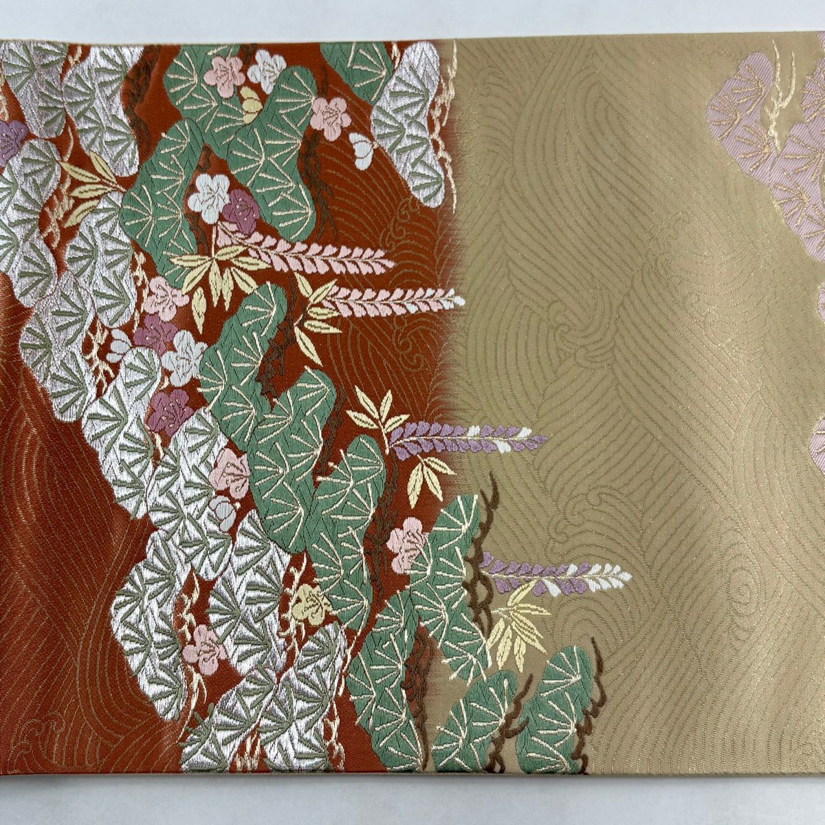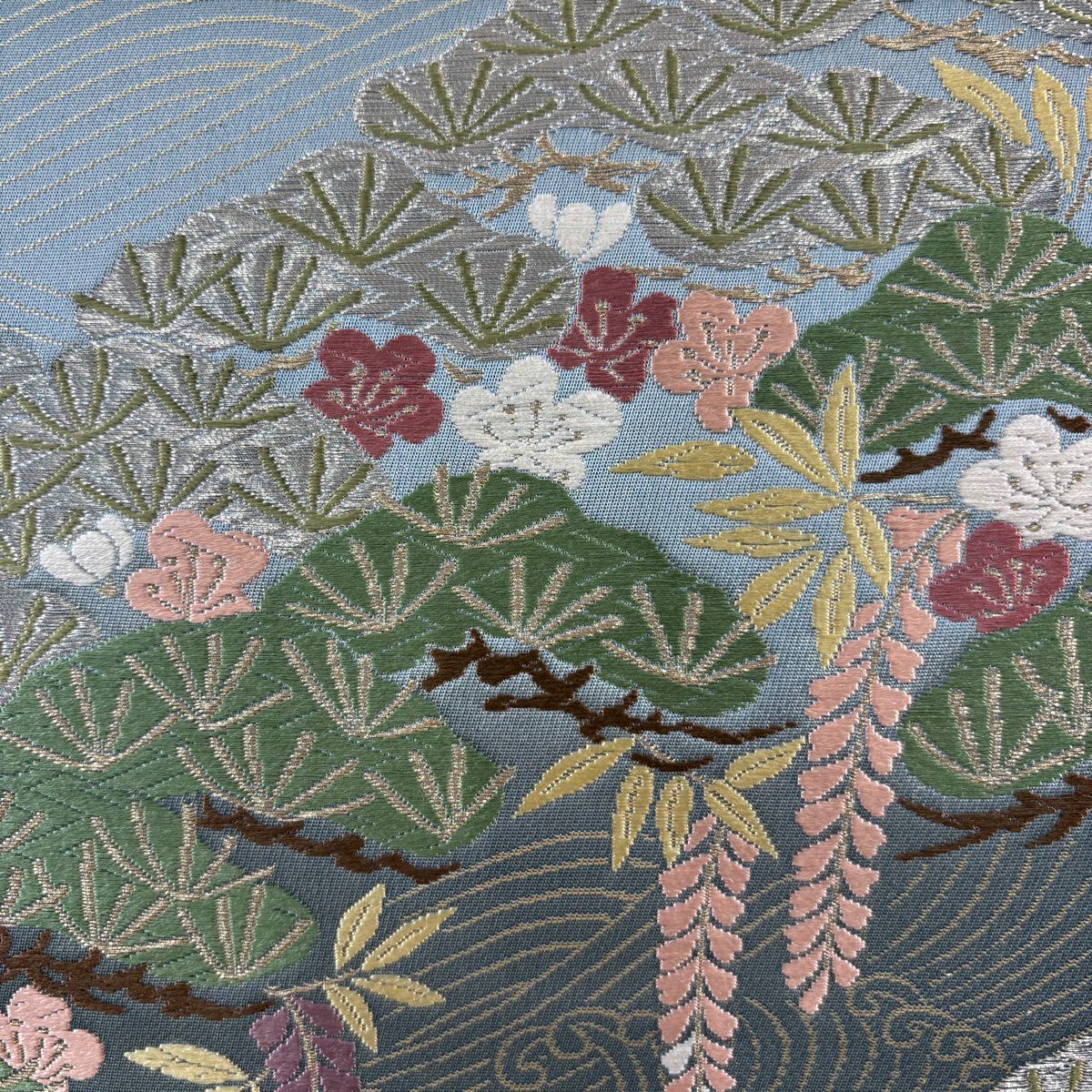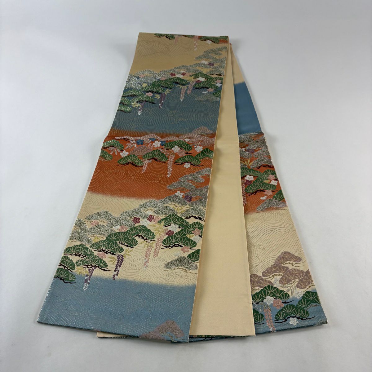 【美品】 袋帯 秀品 松梅 波頭 金銀糸 箔 灰緑 六通 正絹