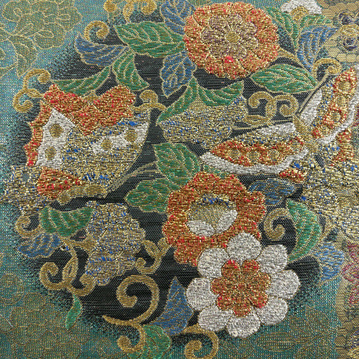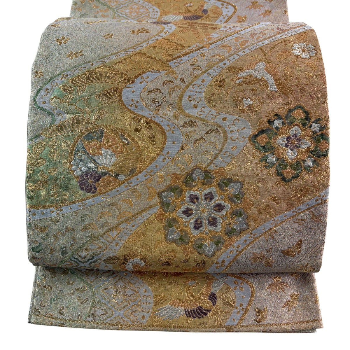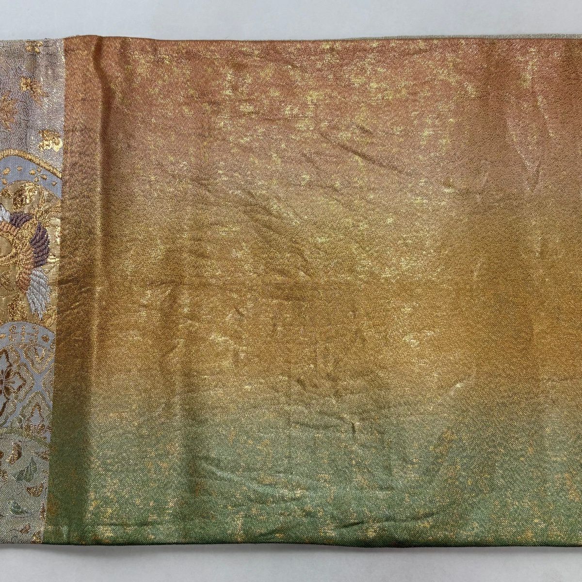 【美品】 袋帯 秀品 華文 孔雀 金銀糸 箔 青緑 六通 正絹