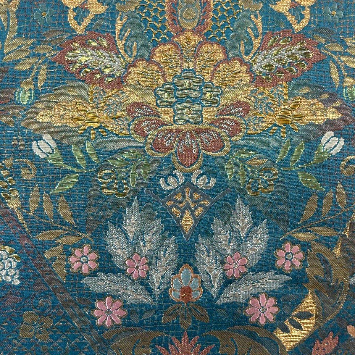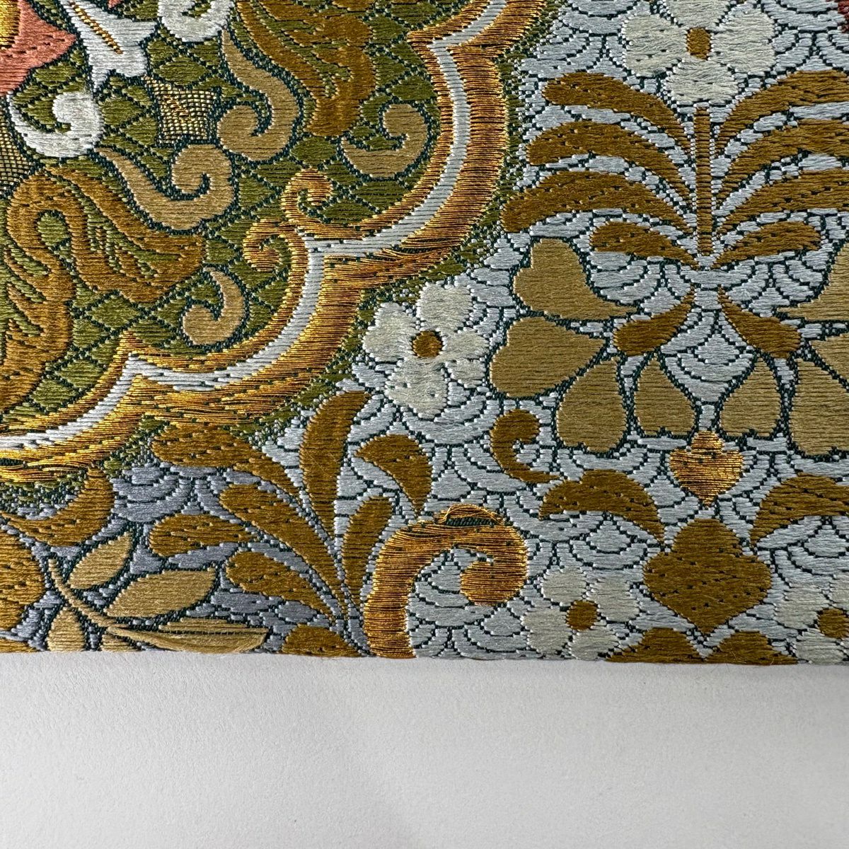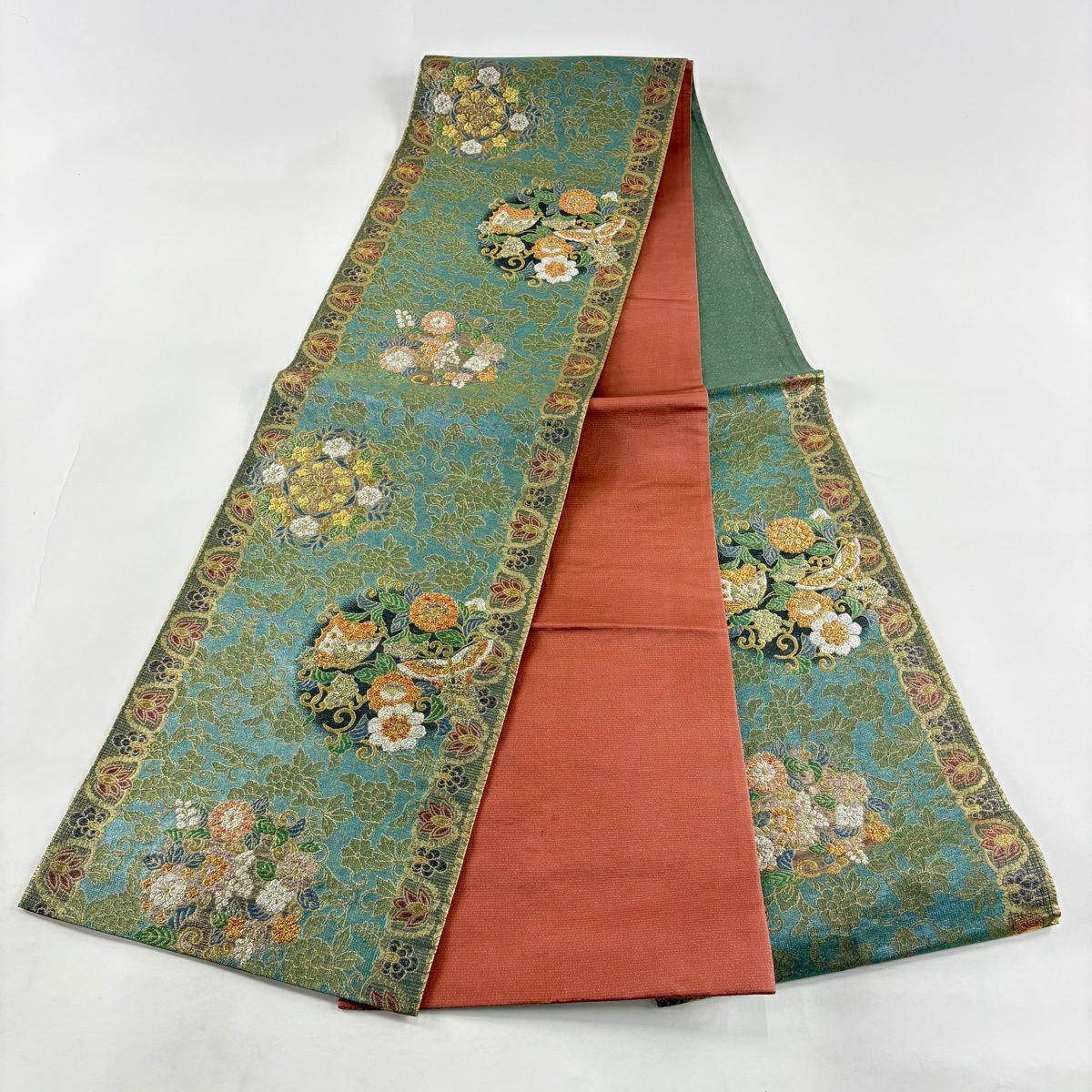 【美品】 袋帯 秀品 華文 孔雀 金銀糸 箔 青緑 六通 正絹