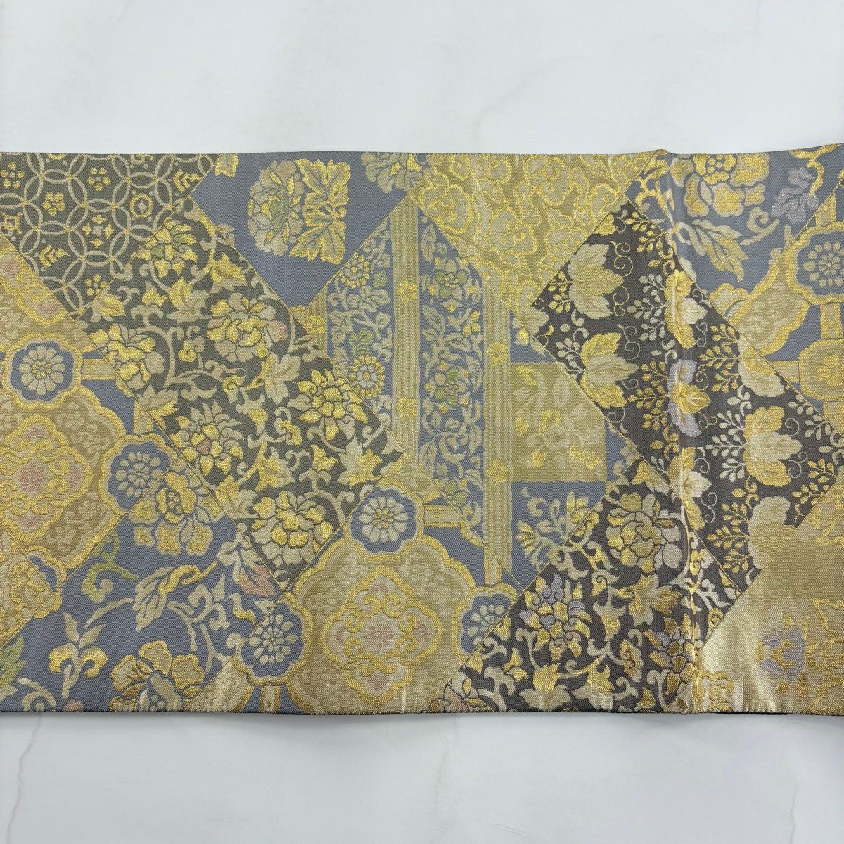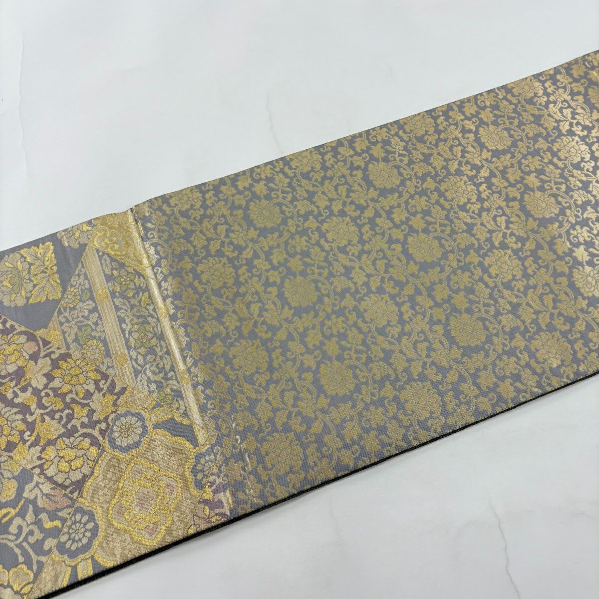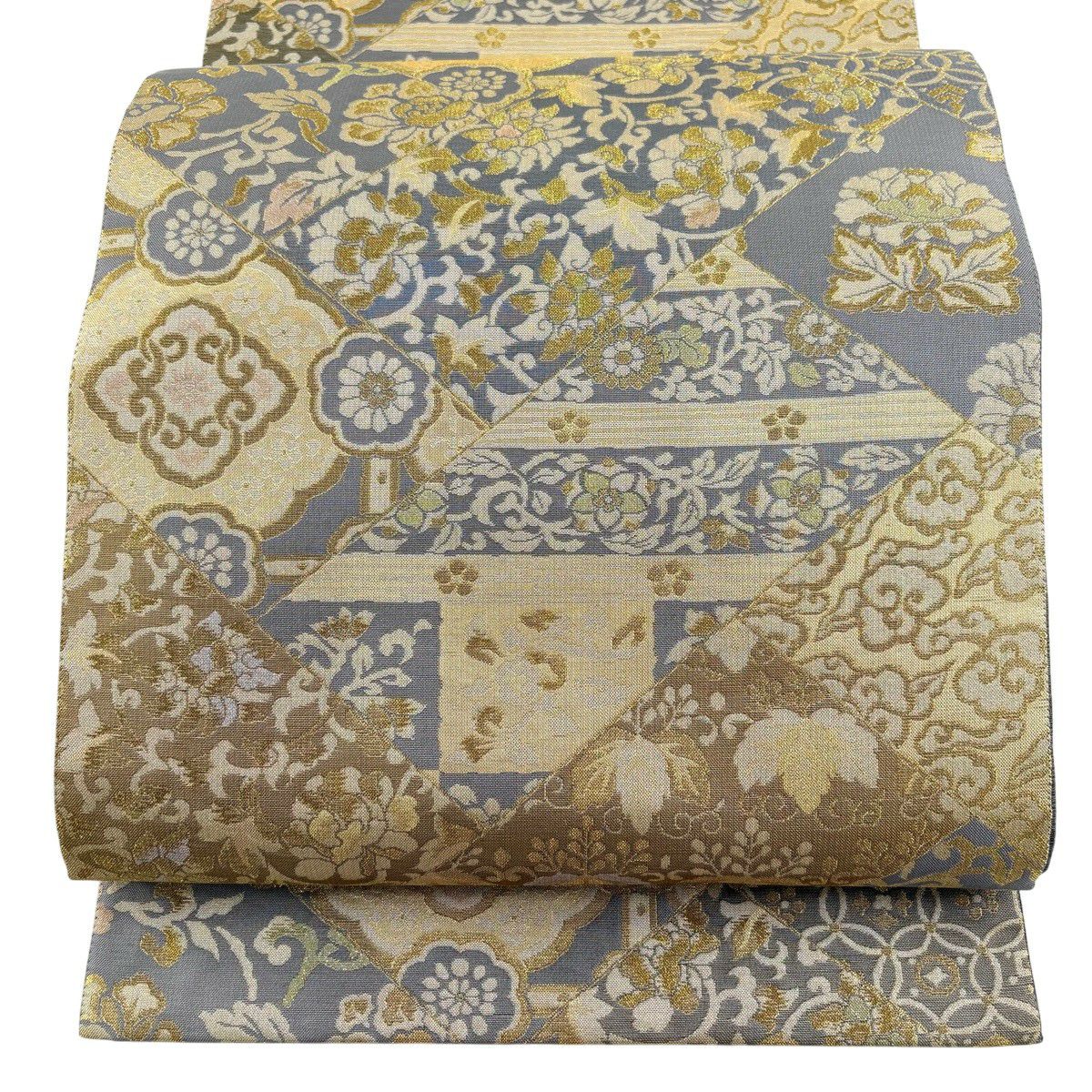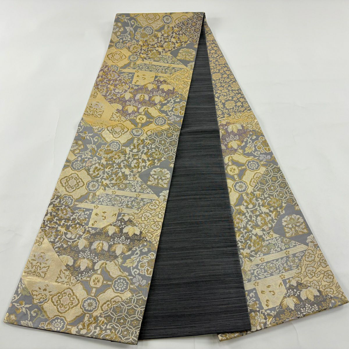【美品】 袋帯 秀品 古代裂 七宝 華文 箔 灰色 六通 正絹