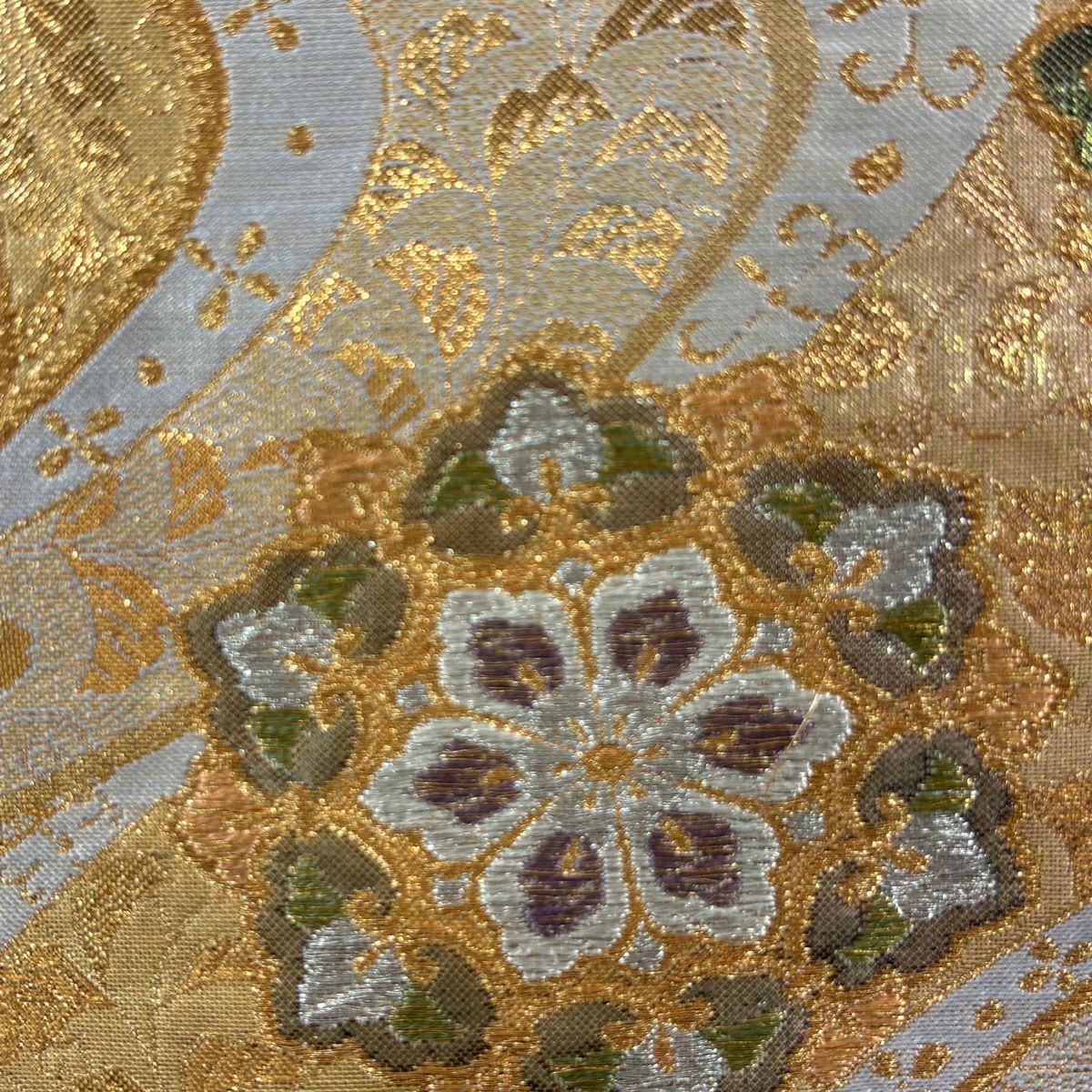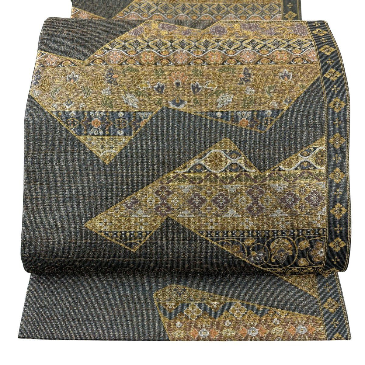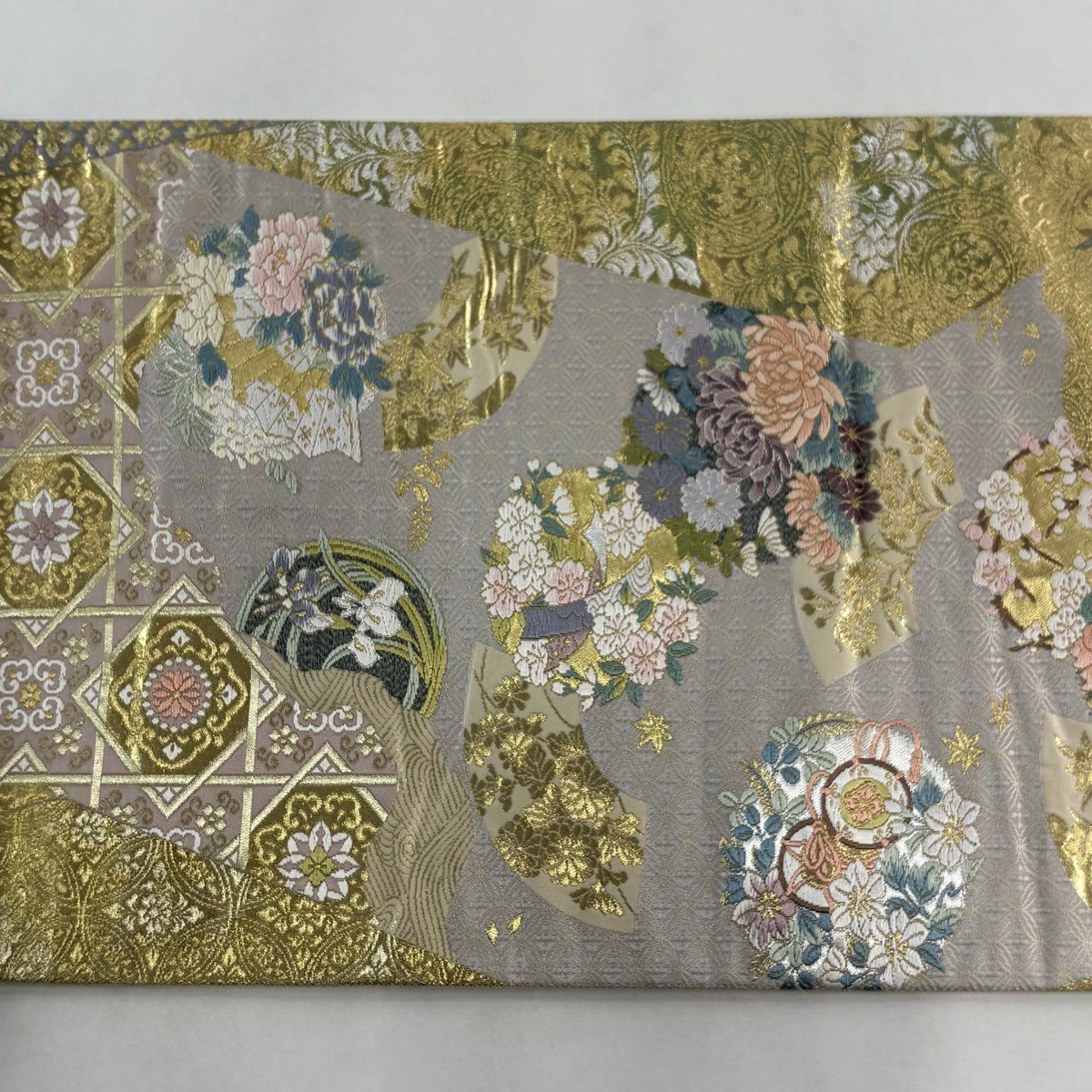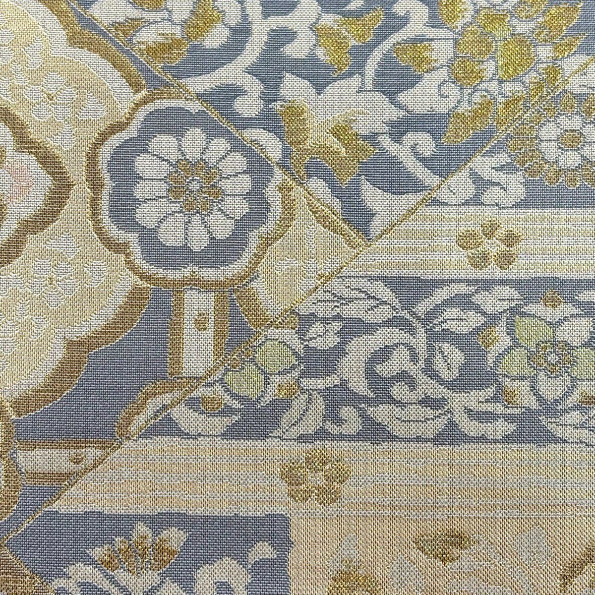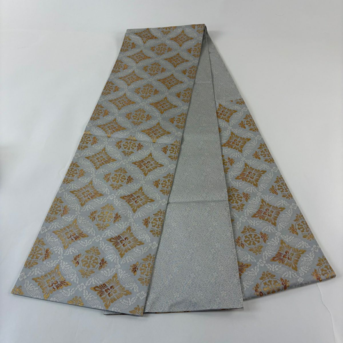 【美品】 袋帯 秀品 古代裂 七宝 華文 箔 灰色 六通 正絹