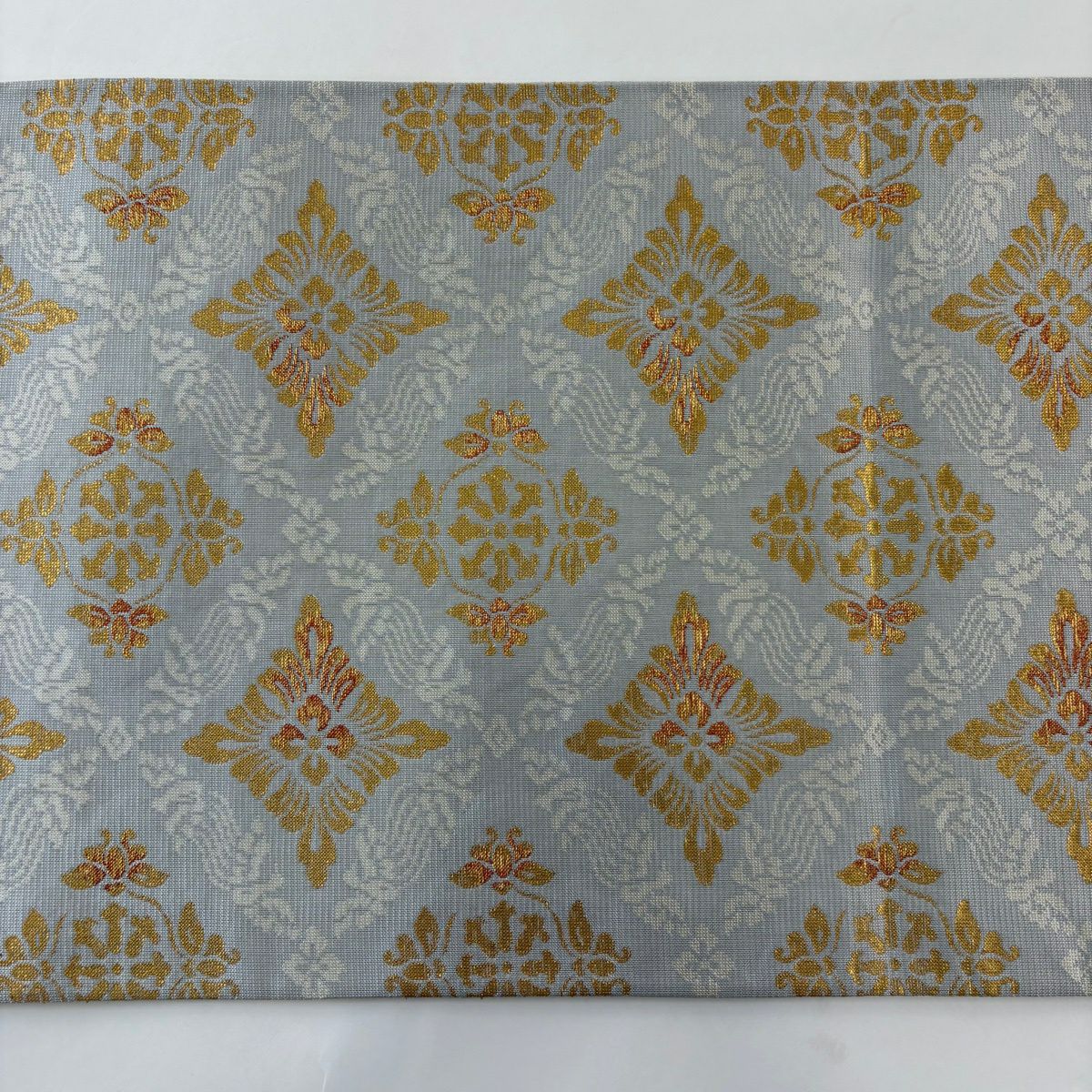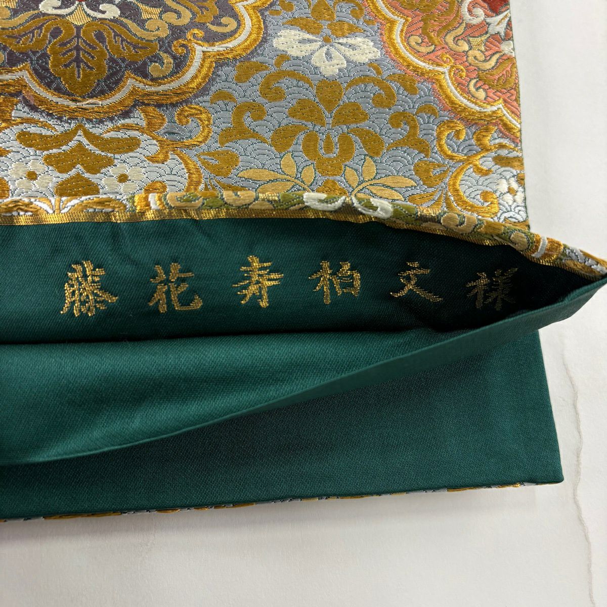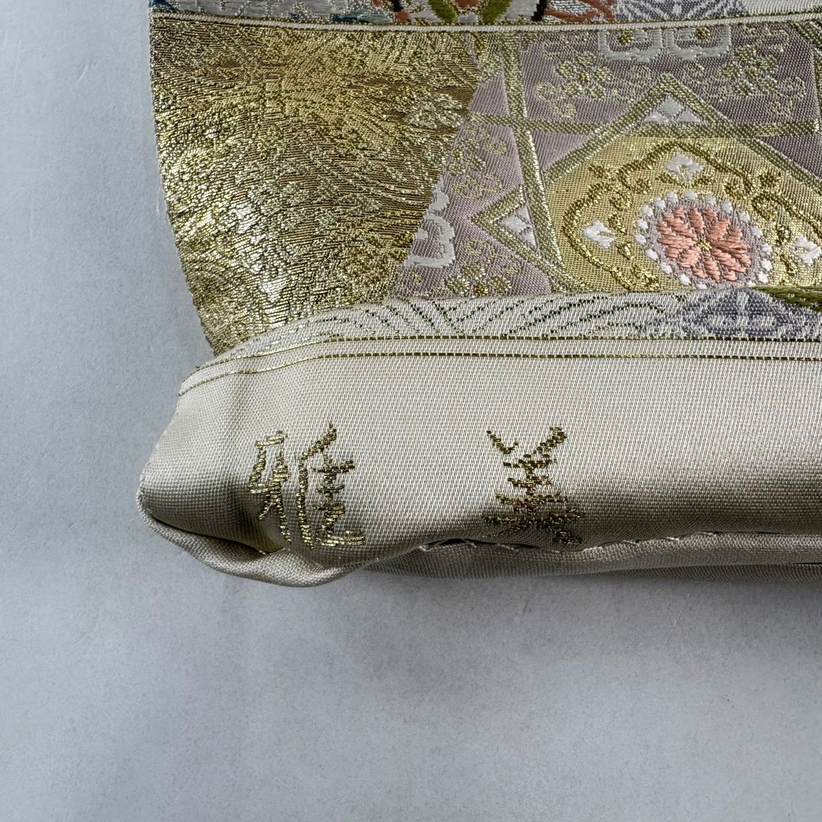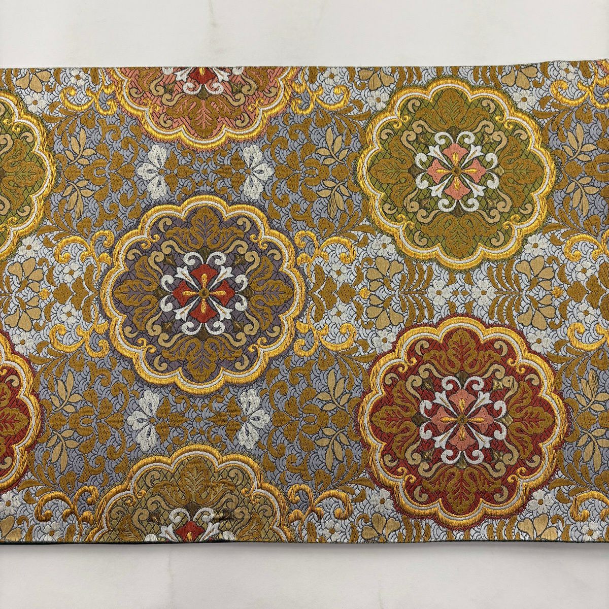【美品】 袋帯 秀品 古代裂 七宝 華文 箔 灰色 六通 正絹
