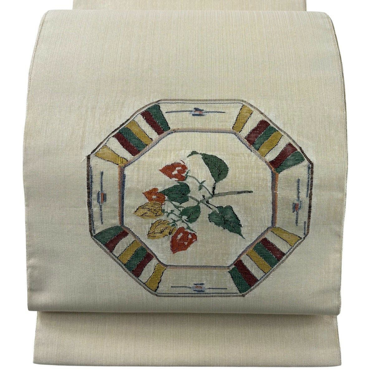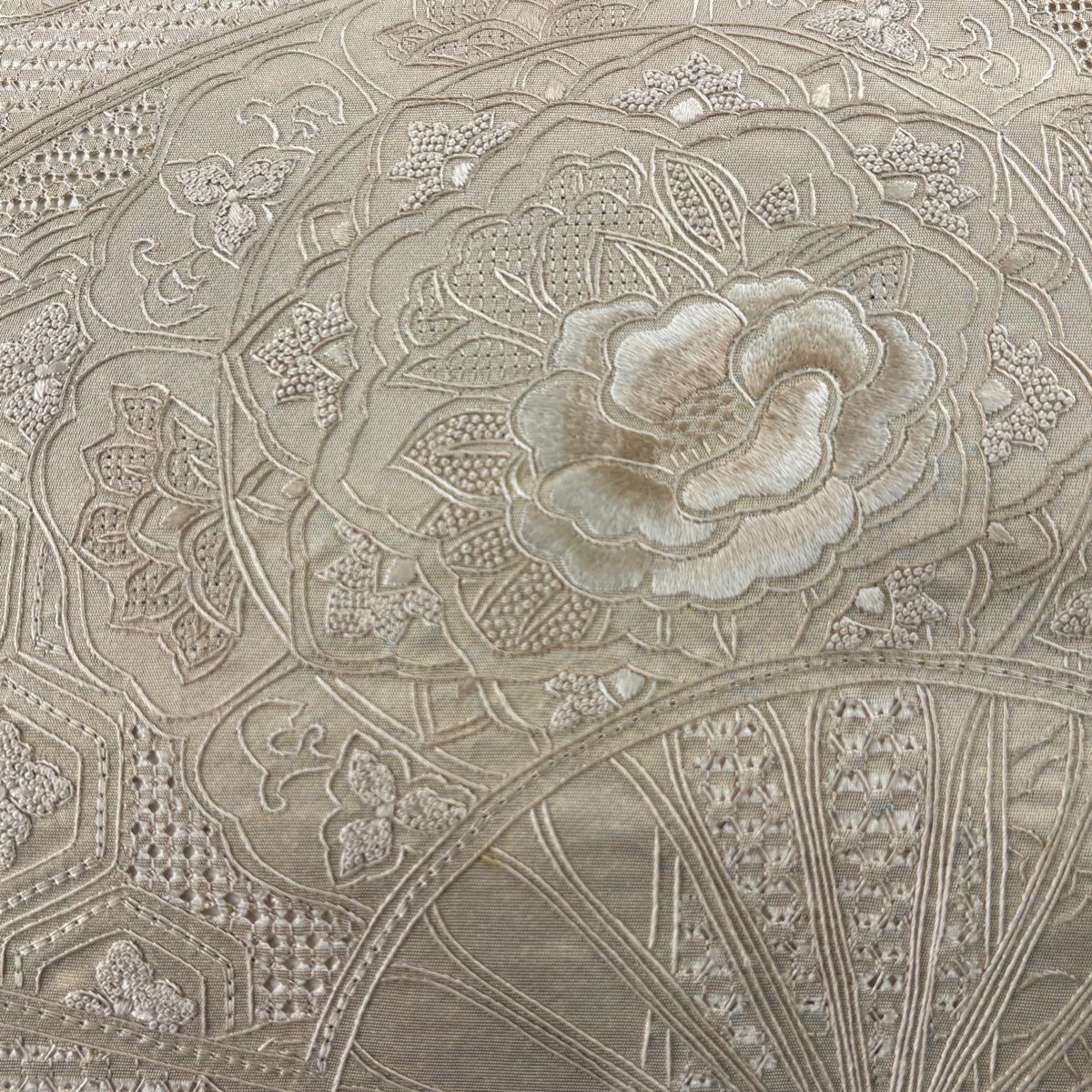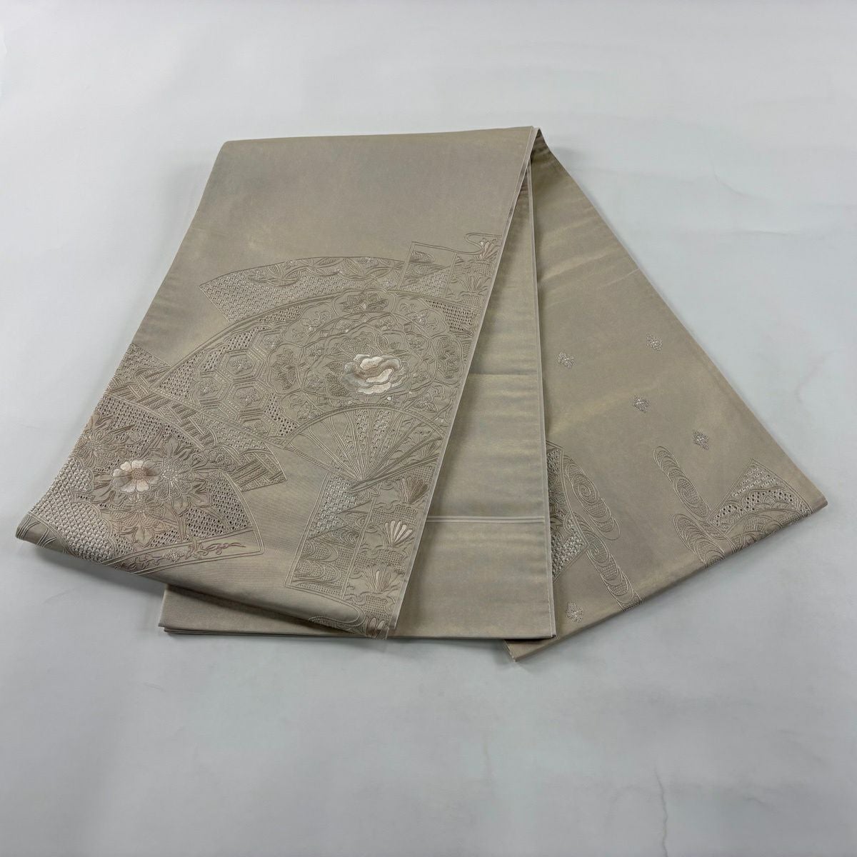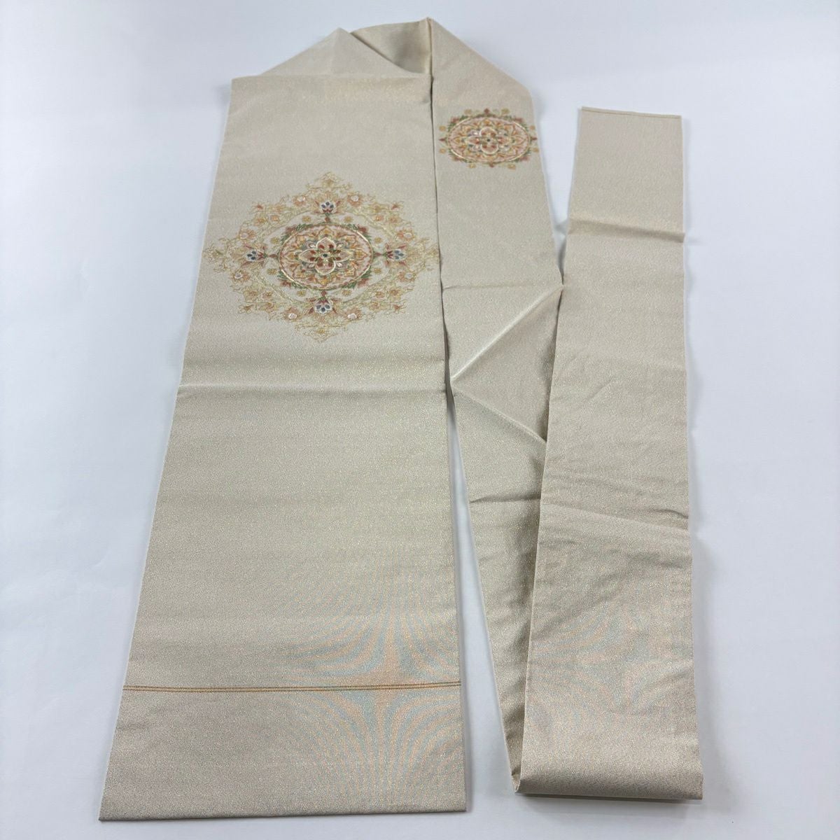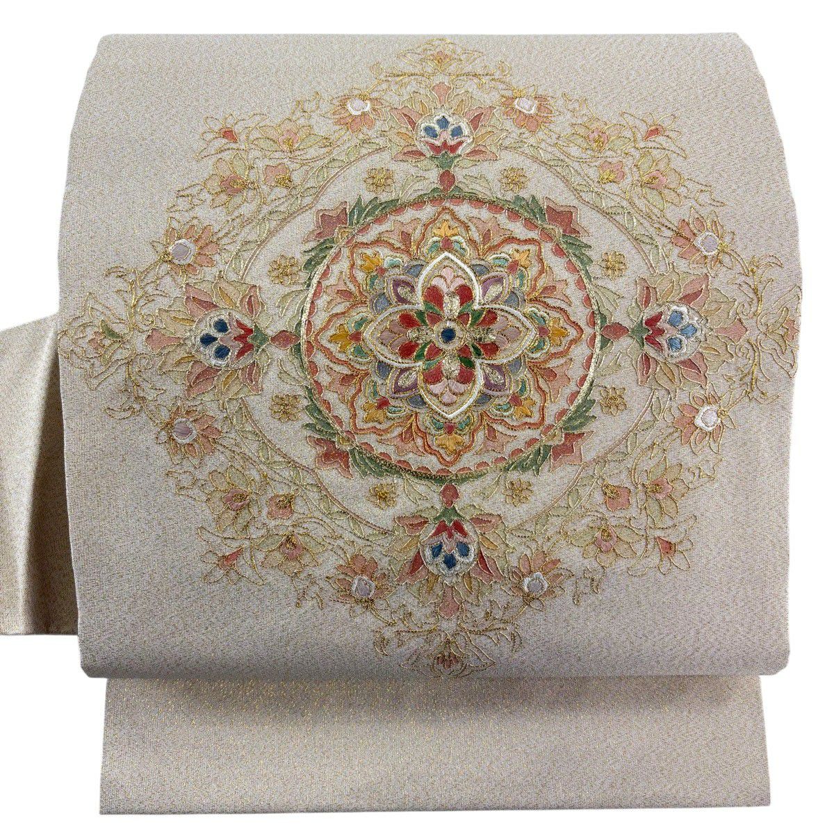 【美品】 名古屋帯 秀品 華文 刺繍 金糸 ベージュ 正絹