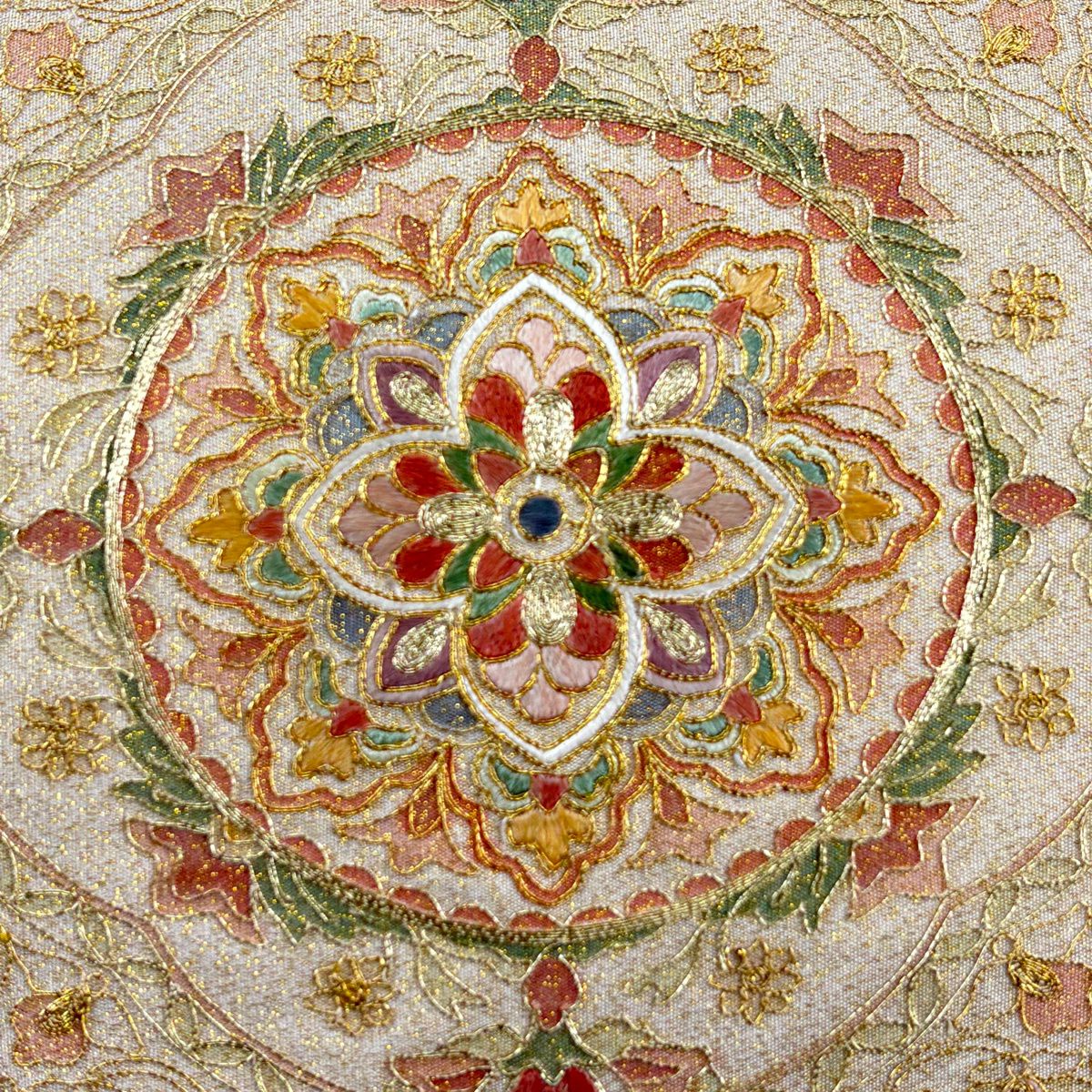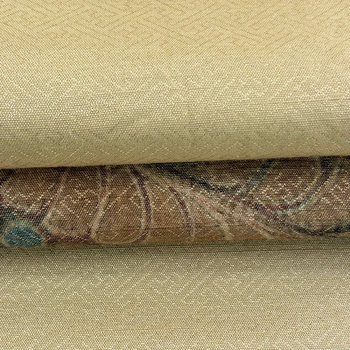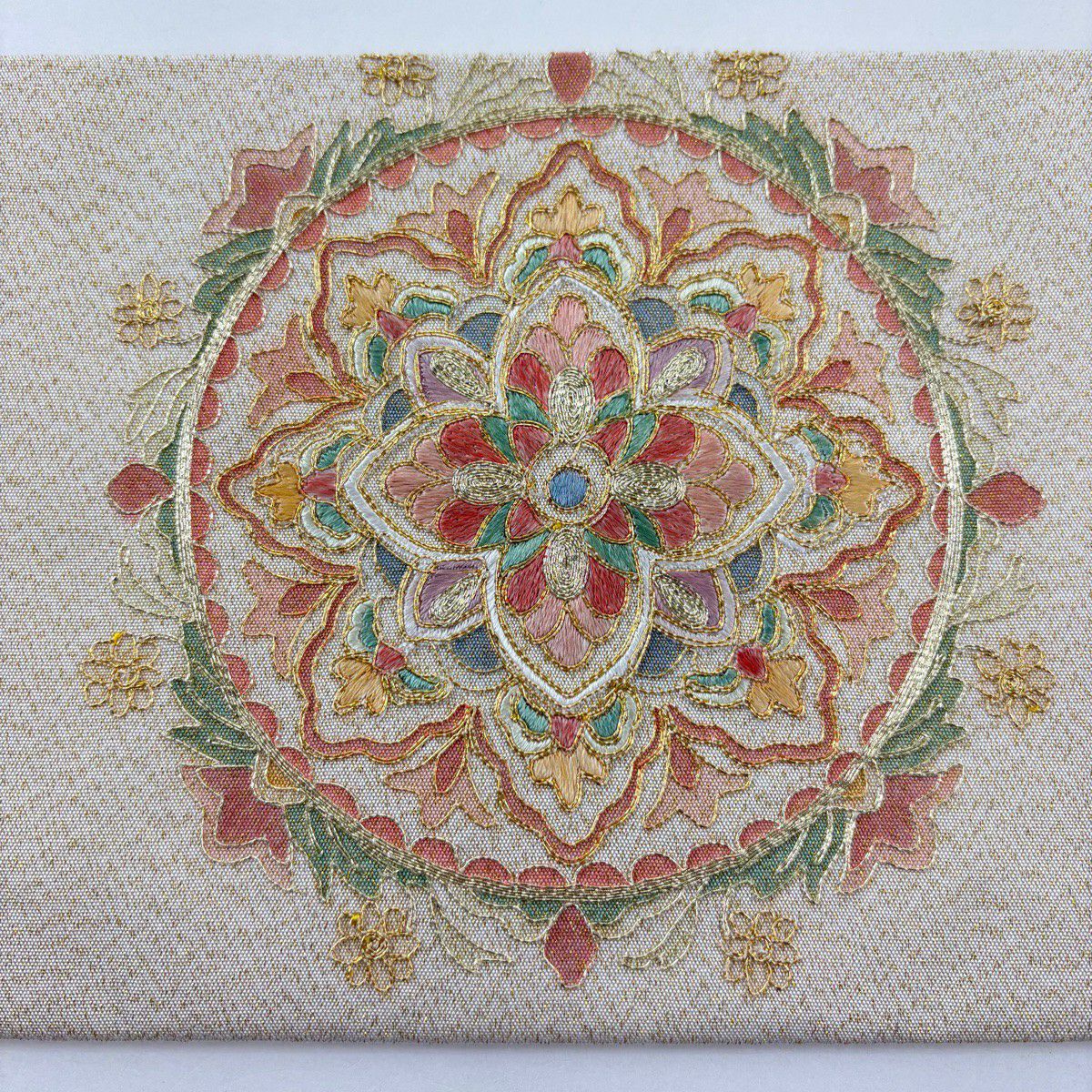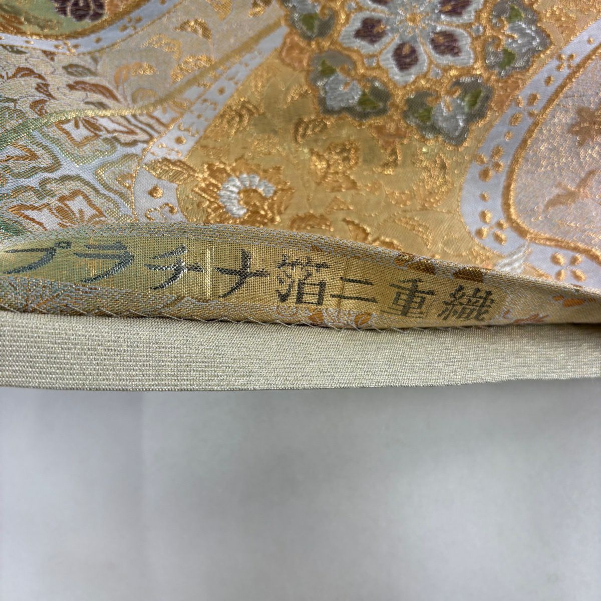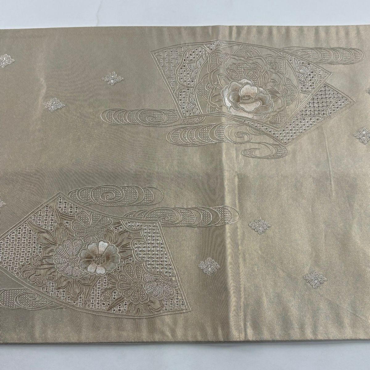【美品】 名古屋帯 秀品 華文 刺繍 金糸 ベージュ 正絹