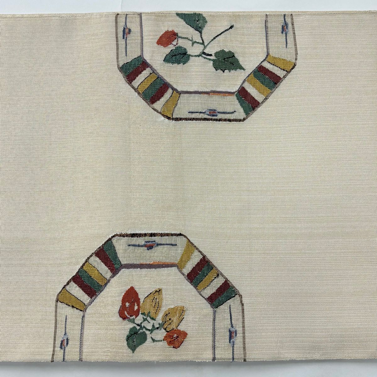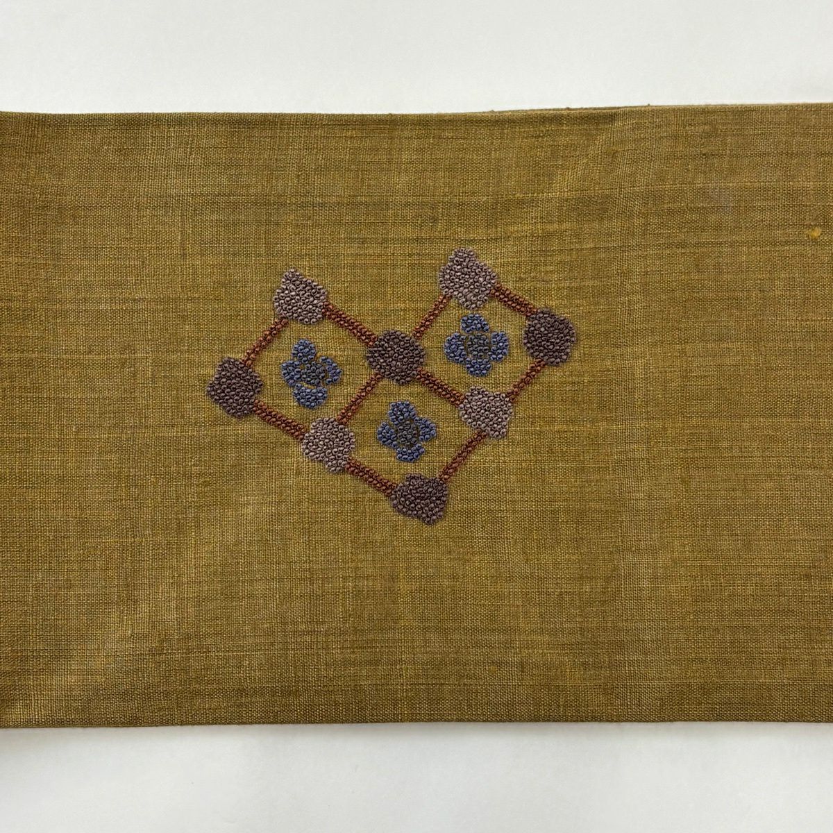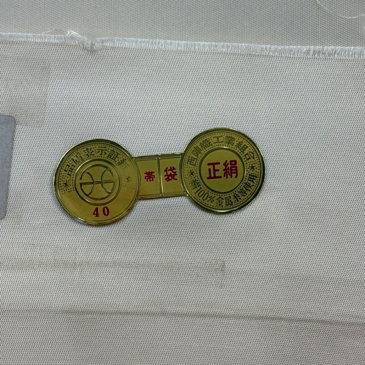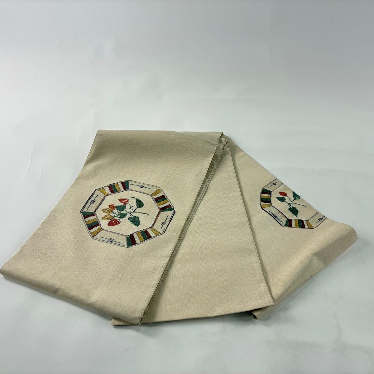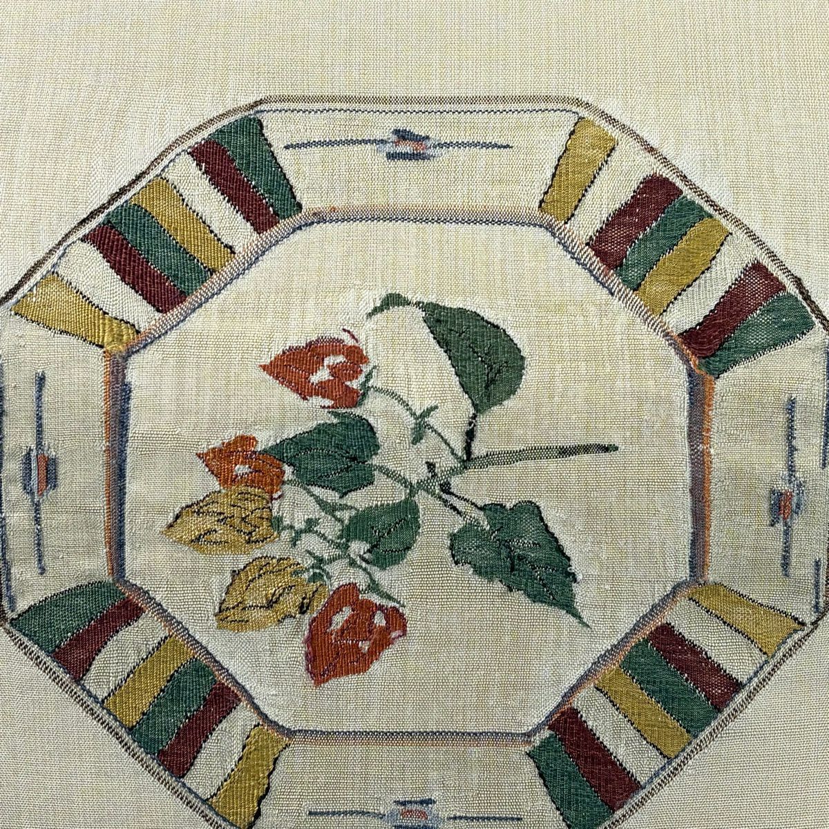 【美品】 名古屋帯 秀品 華文 刺繍 金糸 ベージュ 正絹