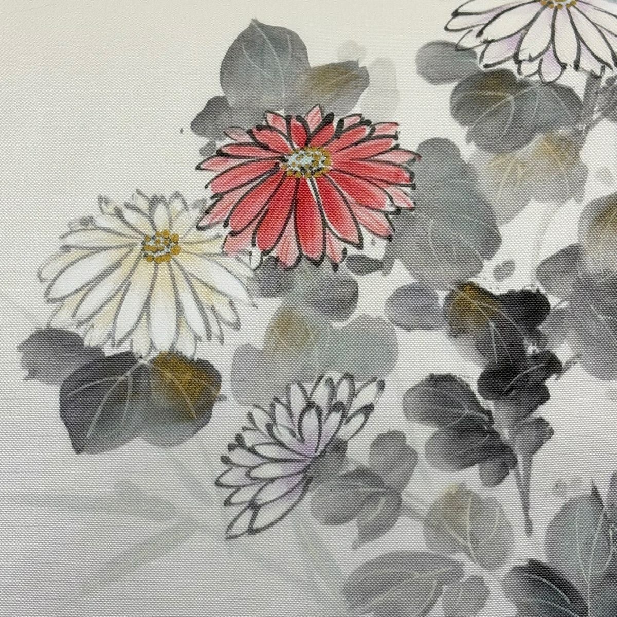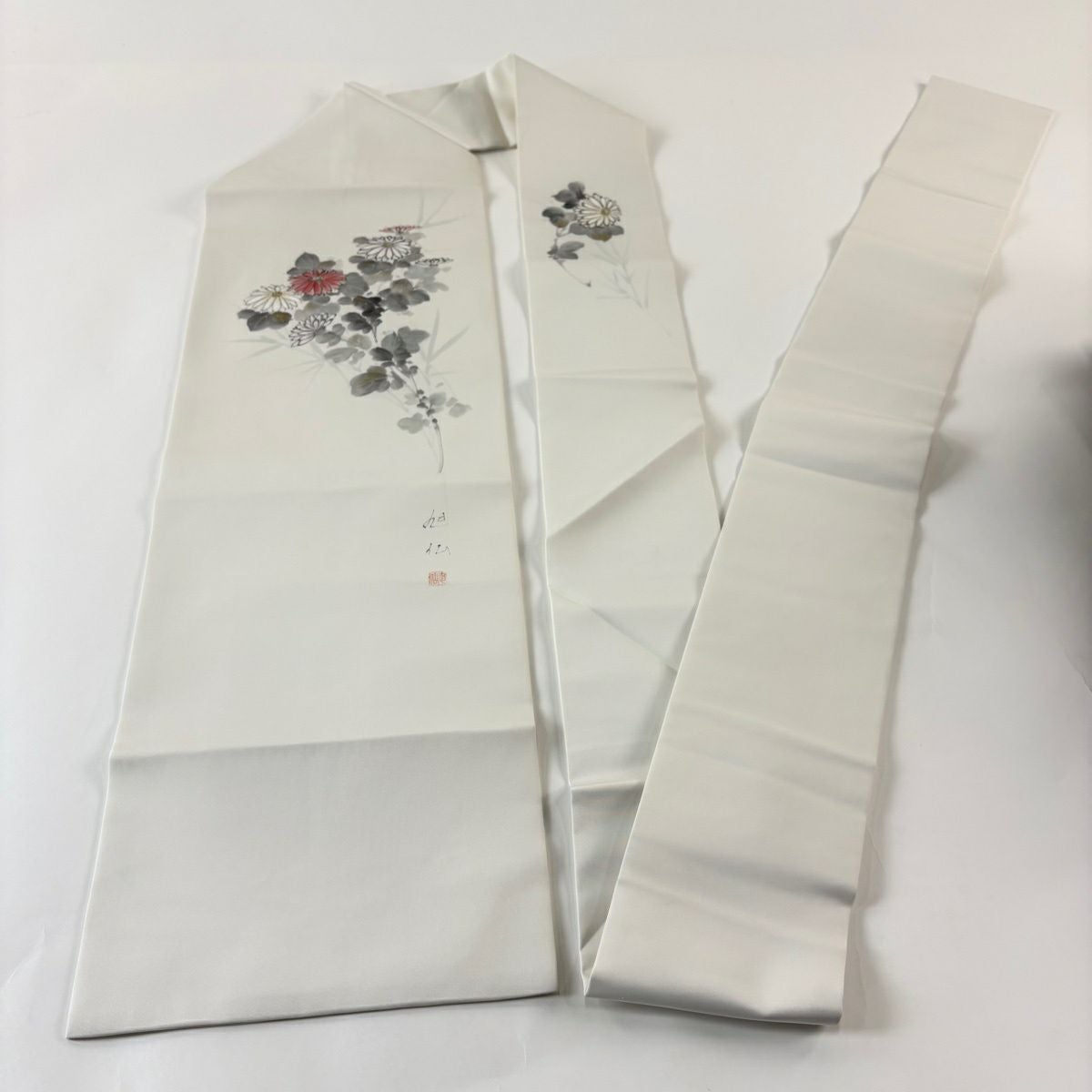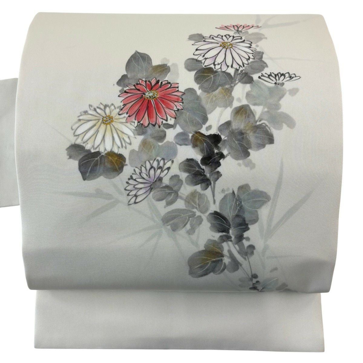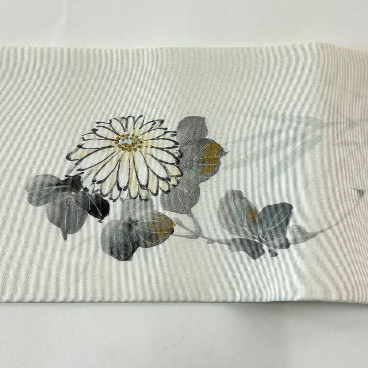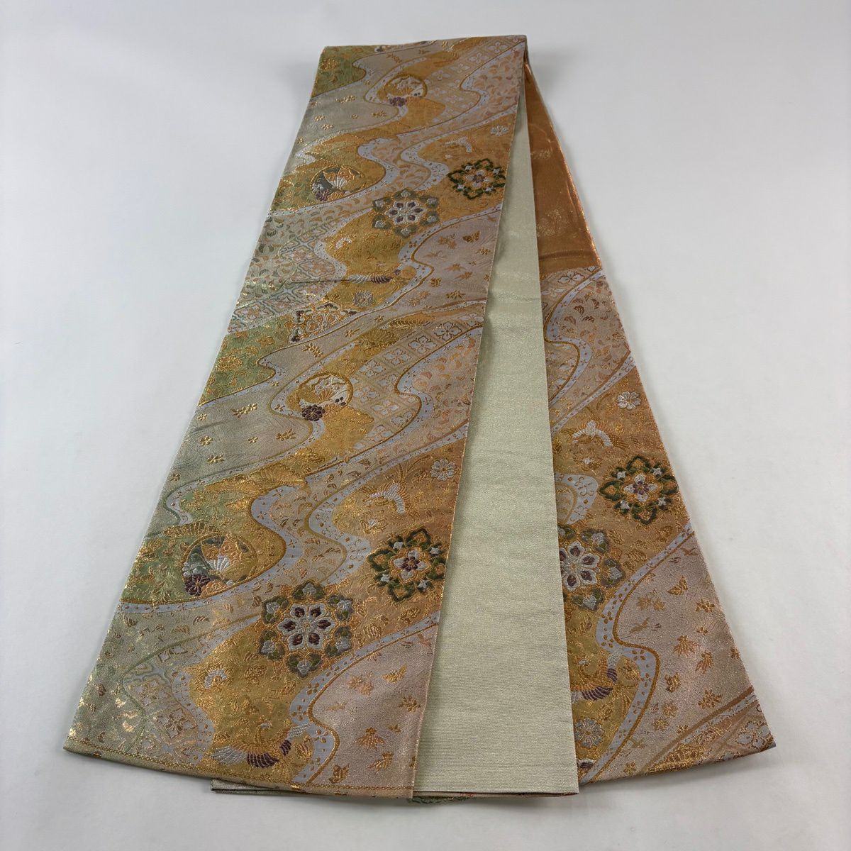 【美品】 袋帯 秀品 菊 桔梗 金糸 箔 クリーム 六通 正絹