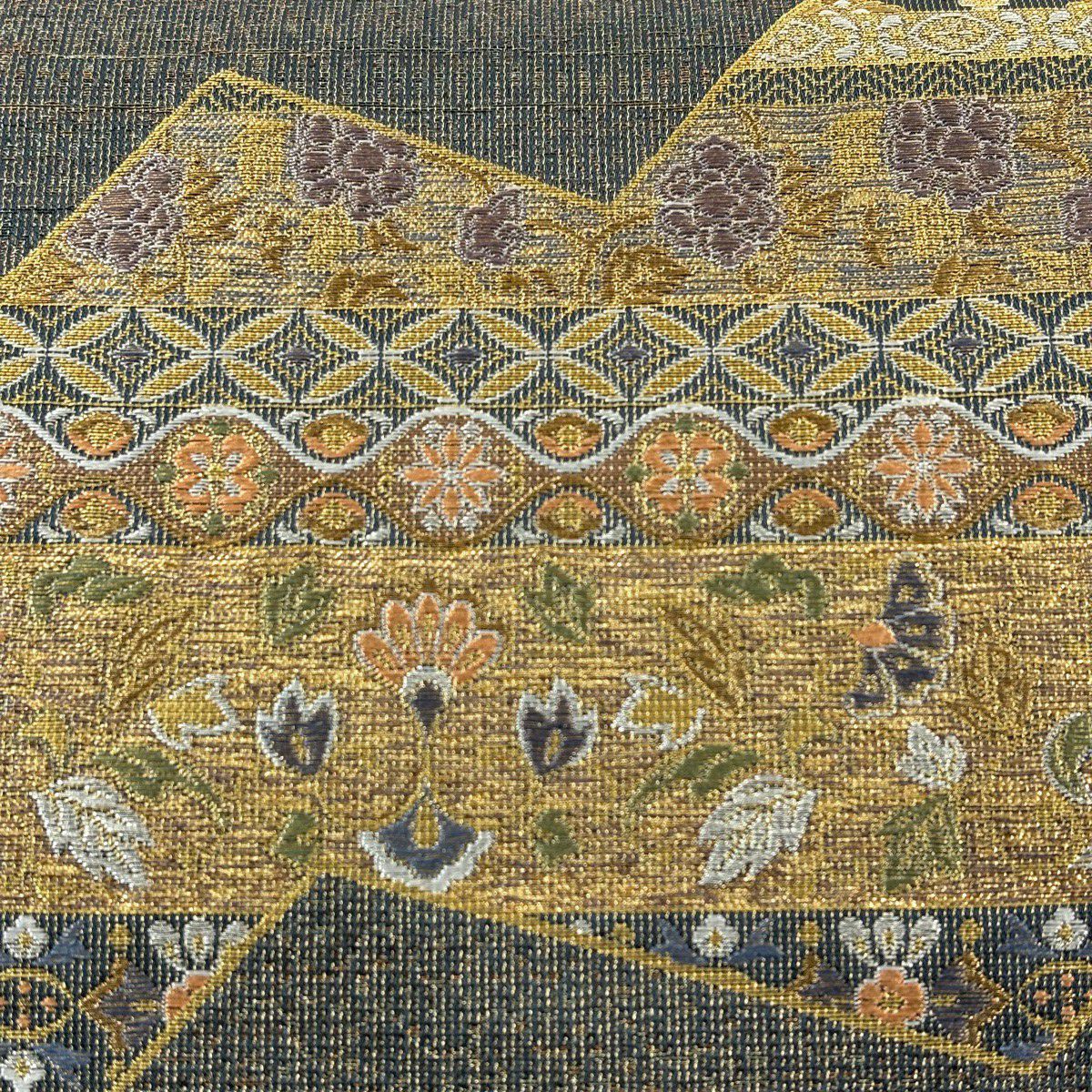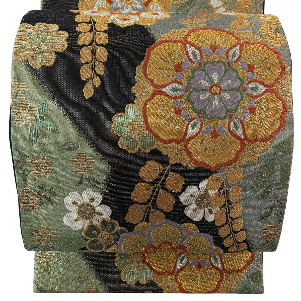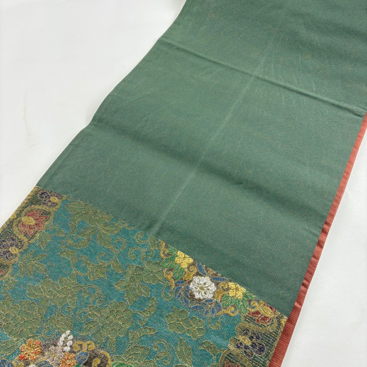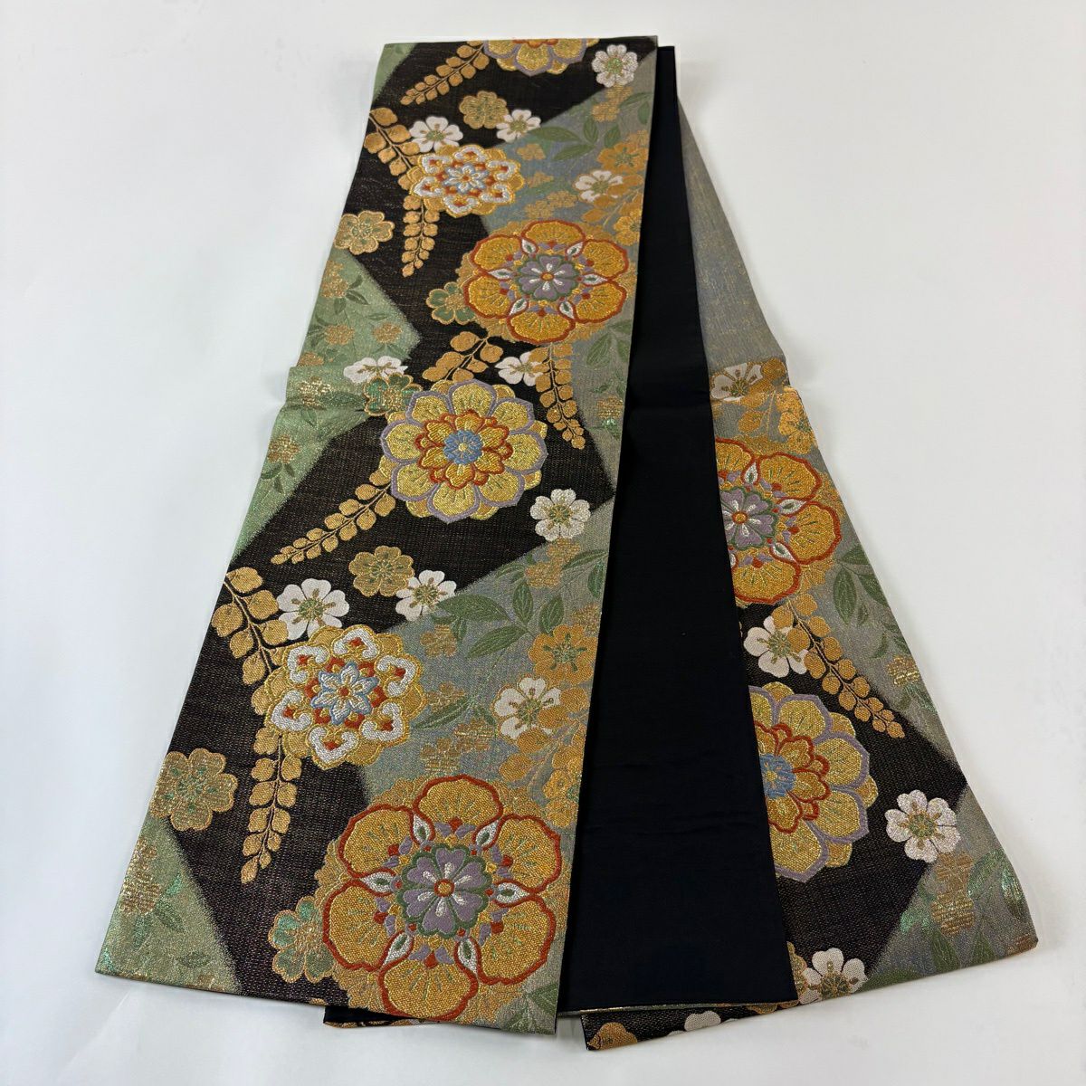 【美品】 袋帯 秀品 華文 枝花 金銀糸 箔 灰緑 六通 正絹