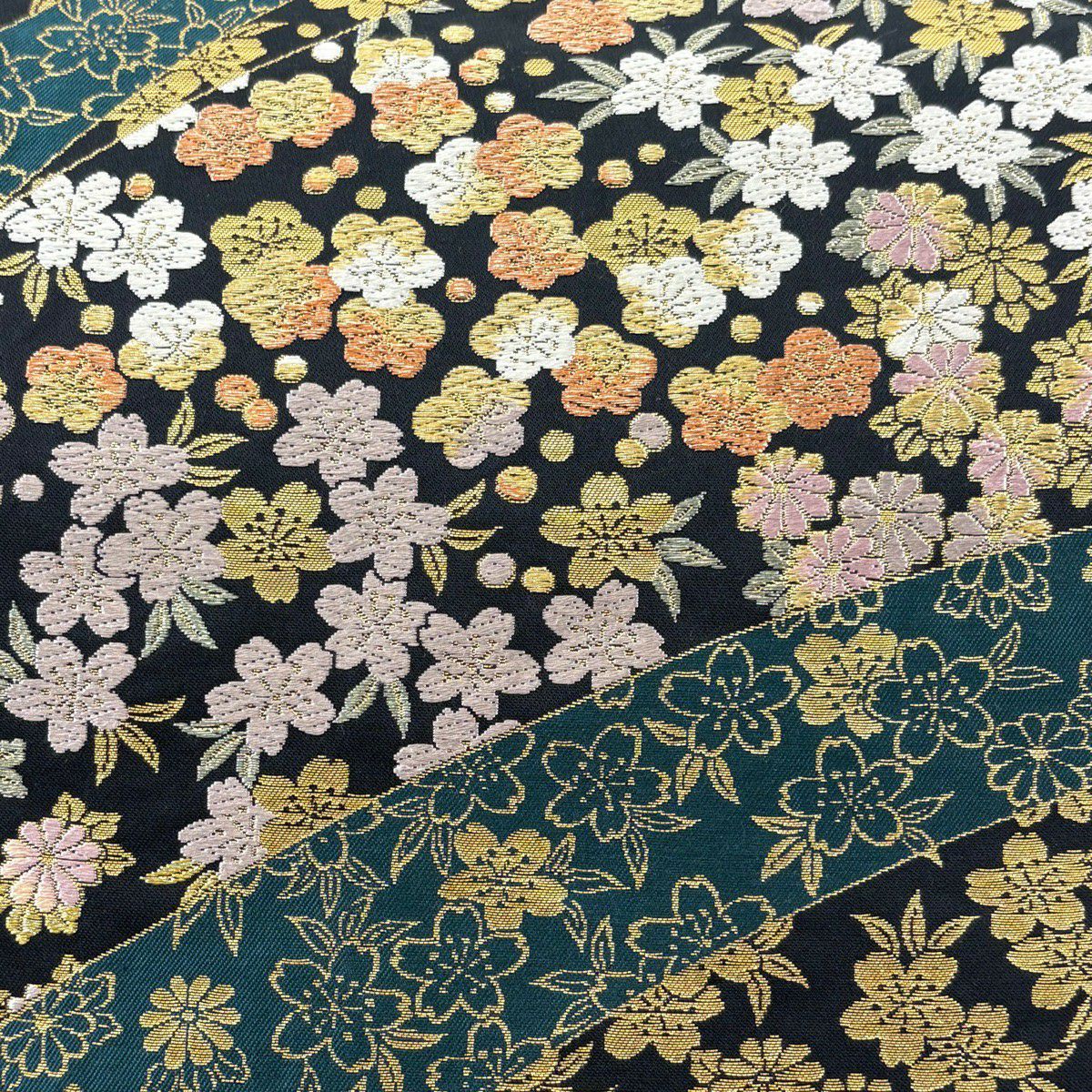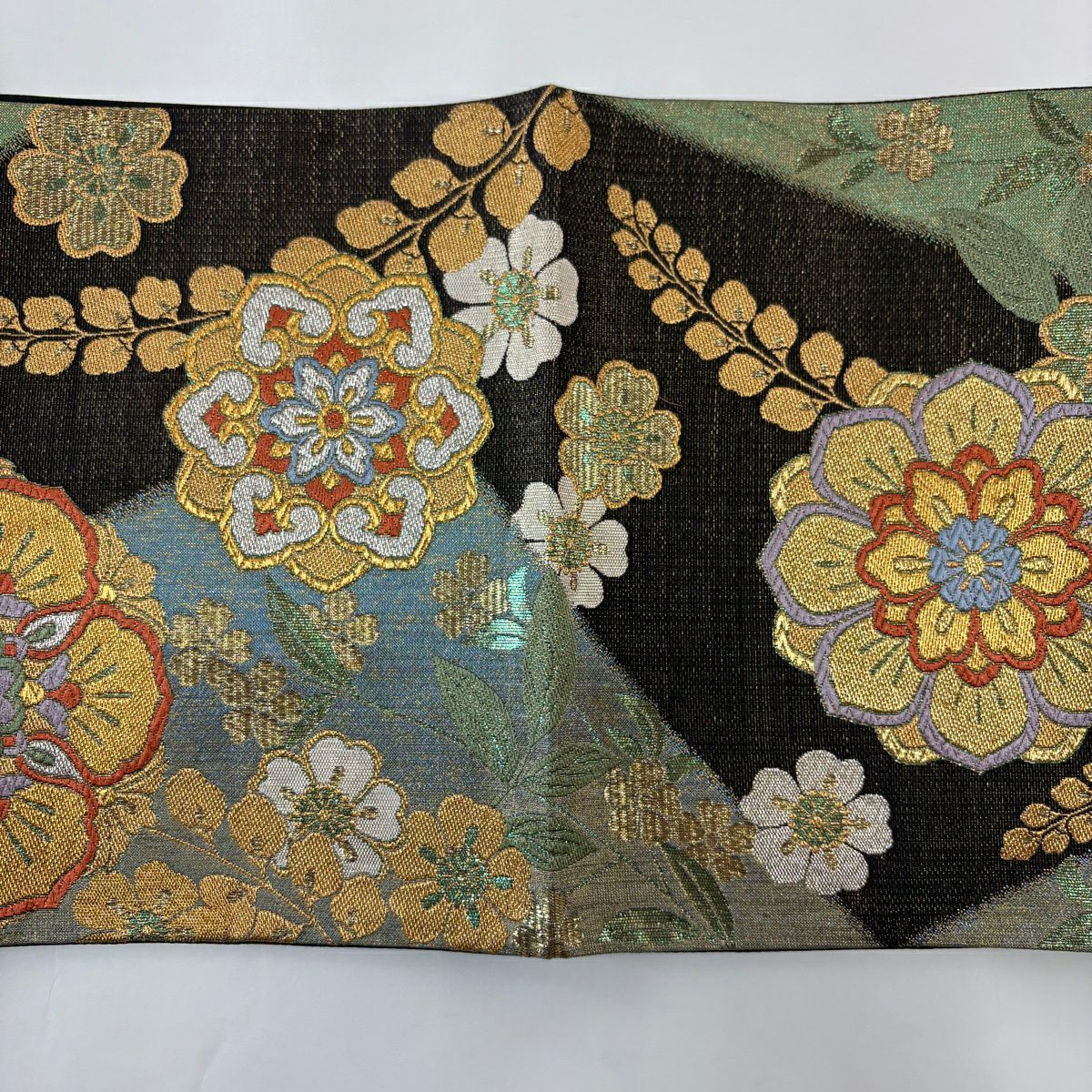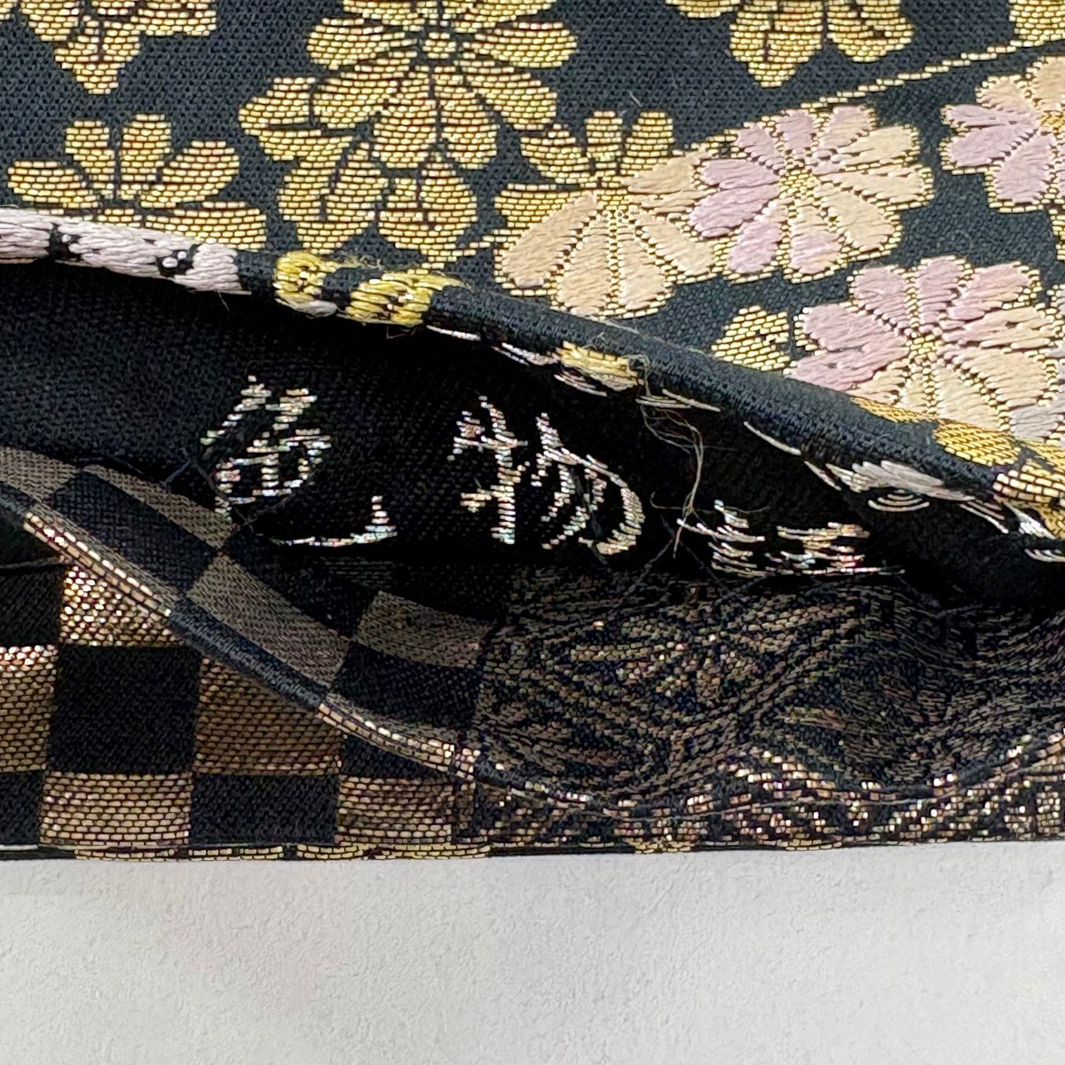 【美品】 袋帯 秀品 色物語 梅 桜 箔 唐織 黒 全通 正絹