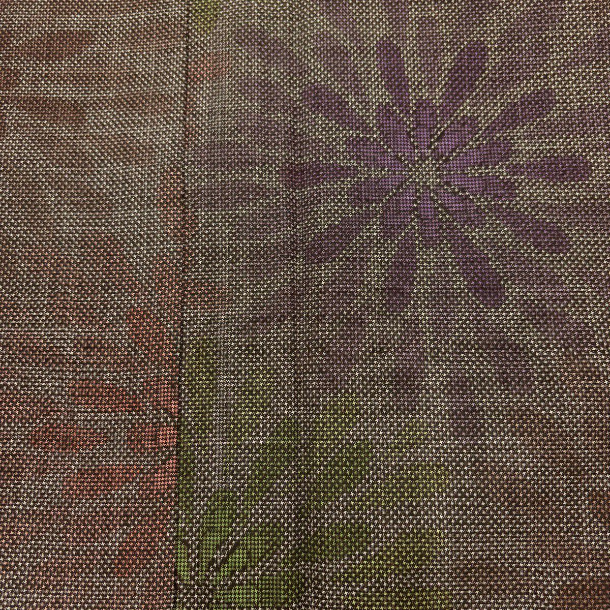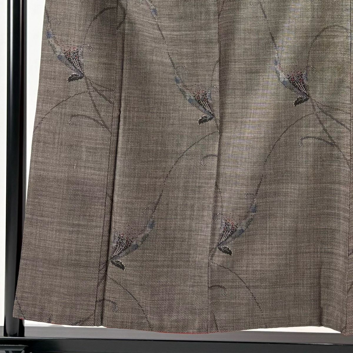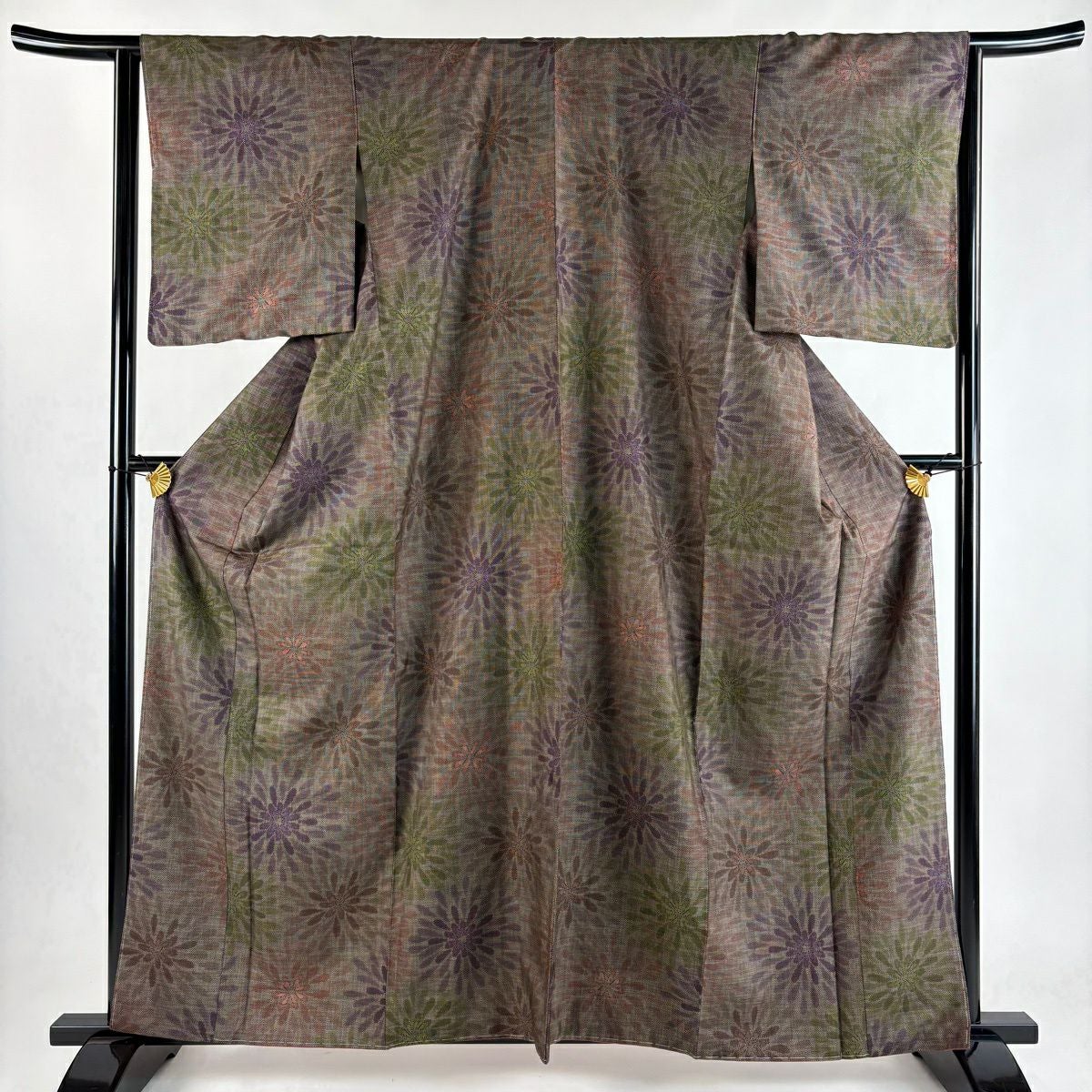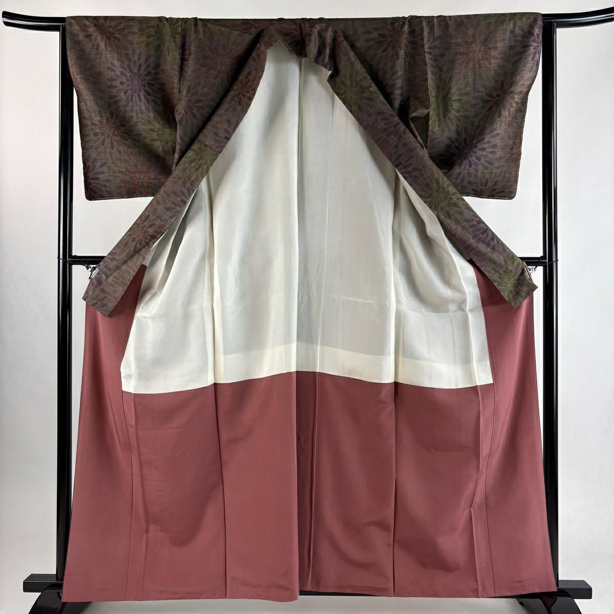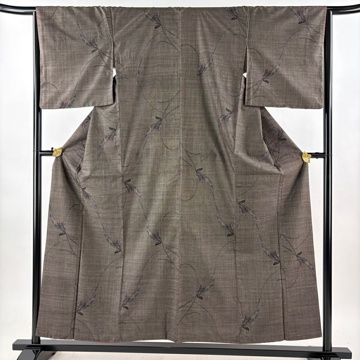 紬 身丈155cm 裄丈65cm M 袷 草花 焦茶色 正絹 秀品