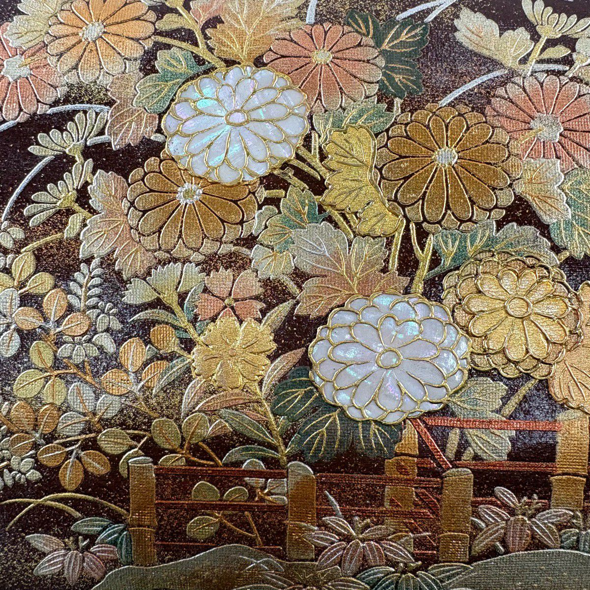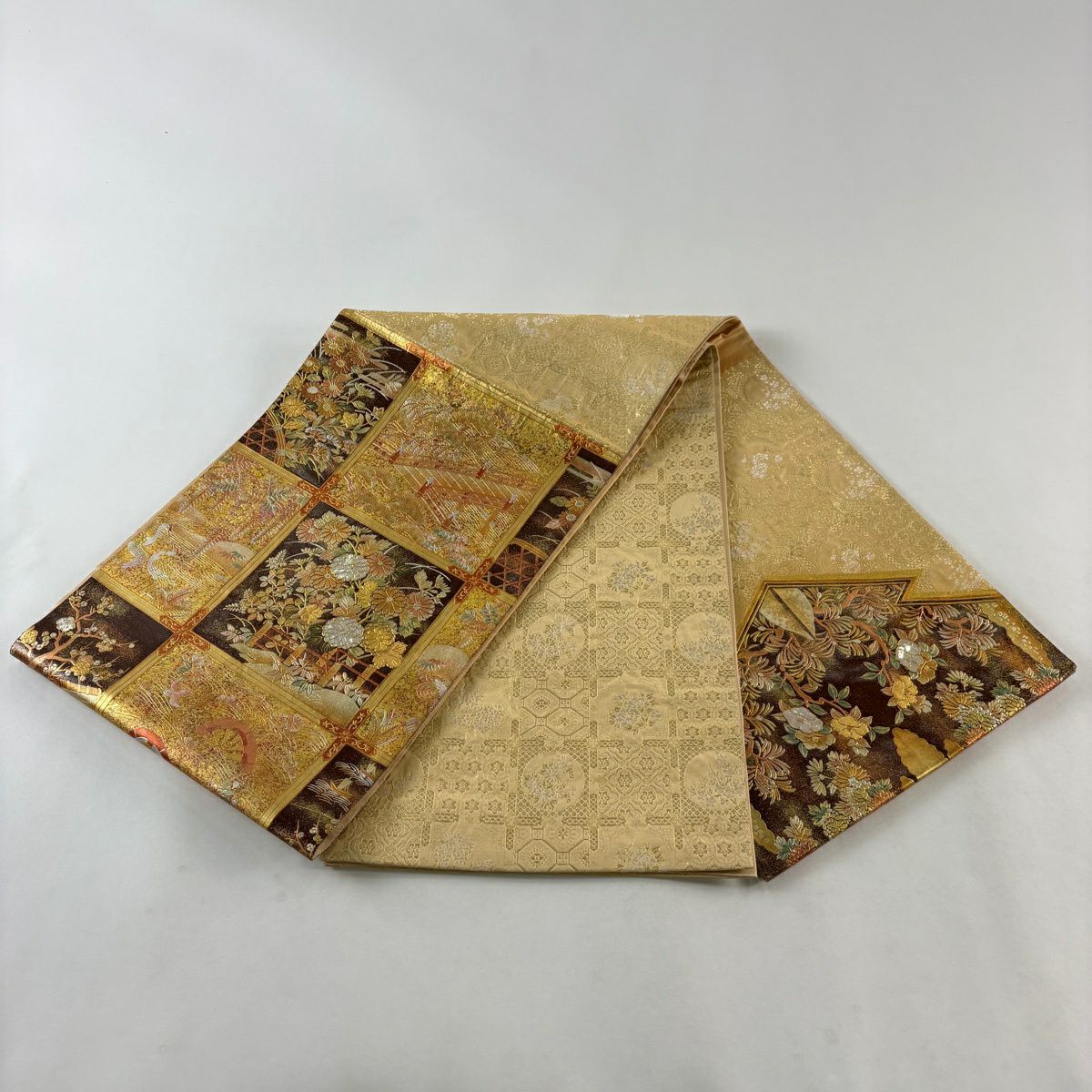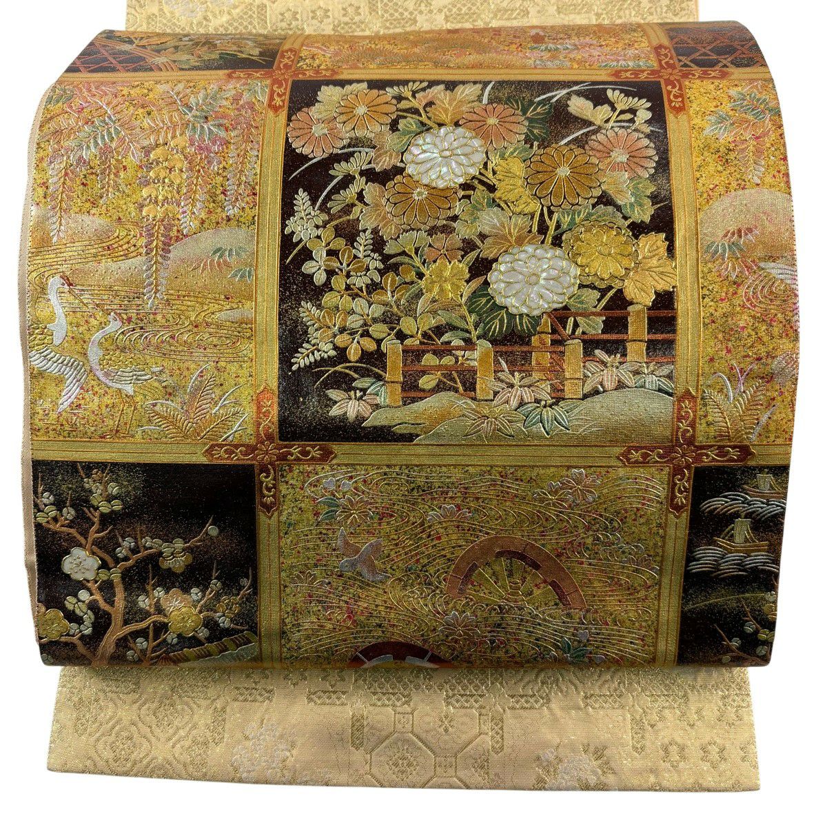 【美品】 袋帯 秀品 菊 橋 螺鈿 金銀彩 金色 お太鼓柄 正絹